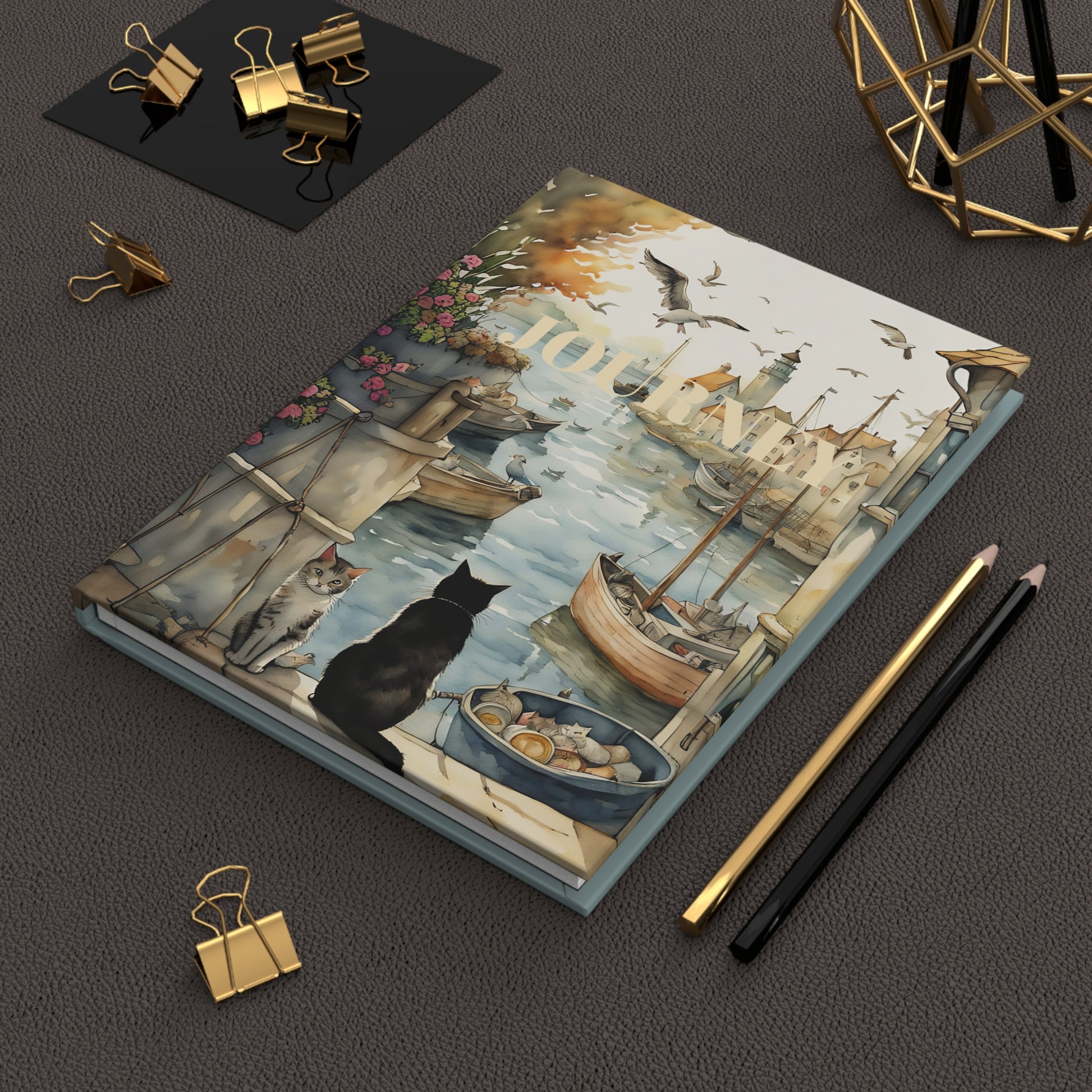 Harbour cats hard cover Journal hard Cover ,Notebook gift art Matte