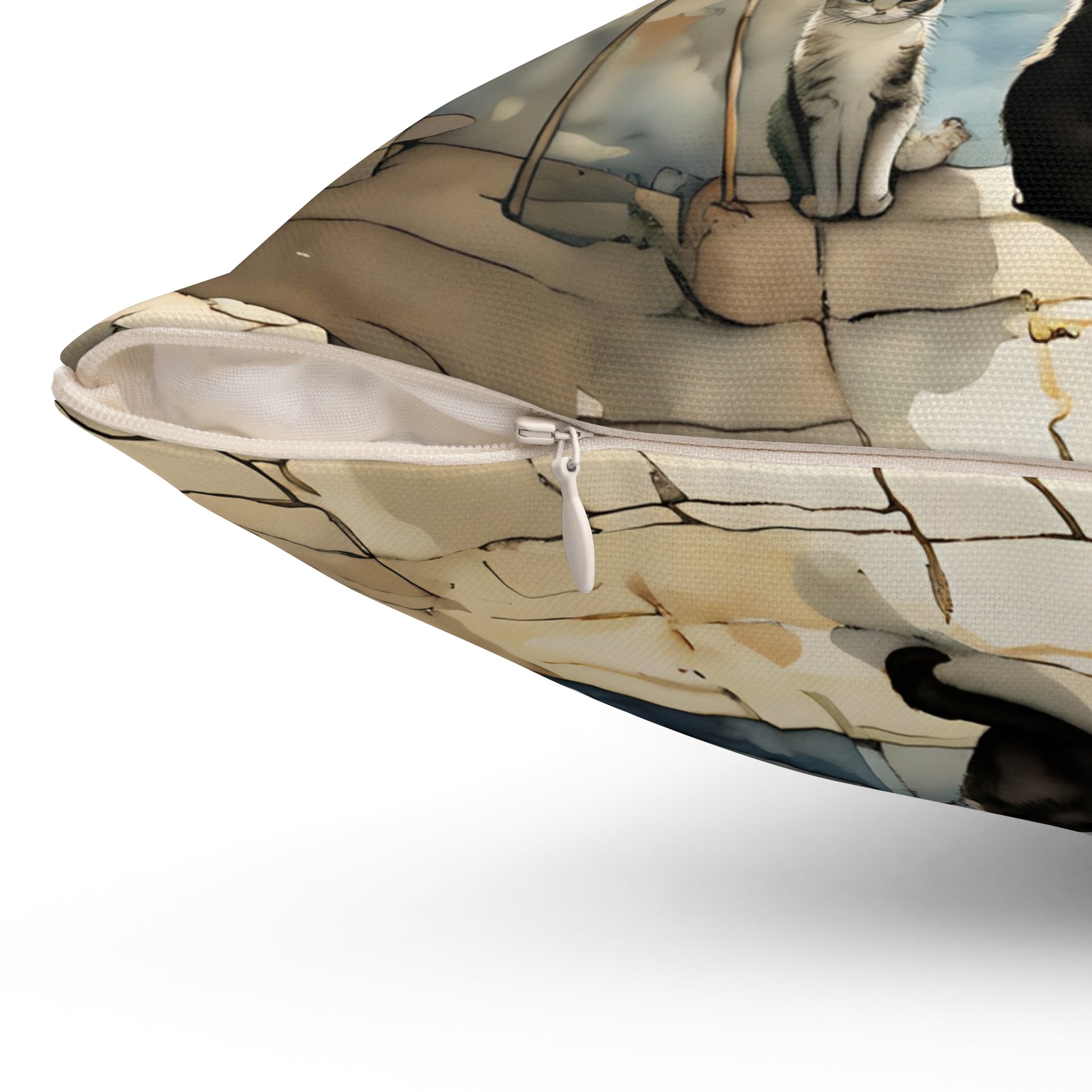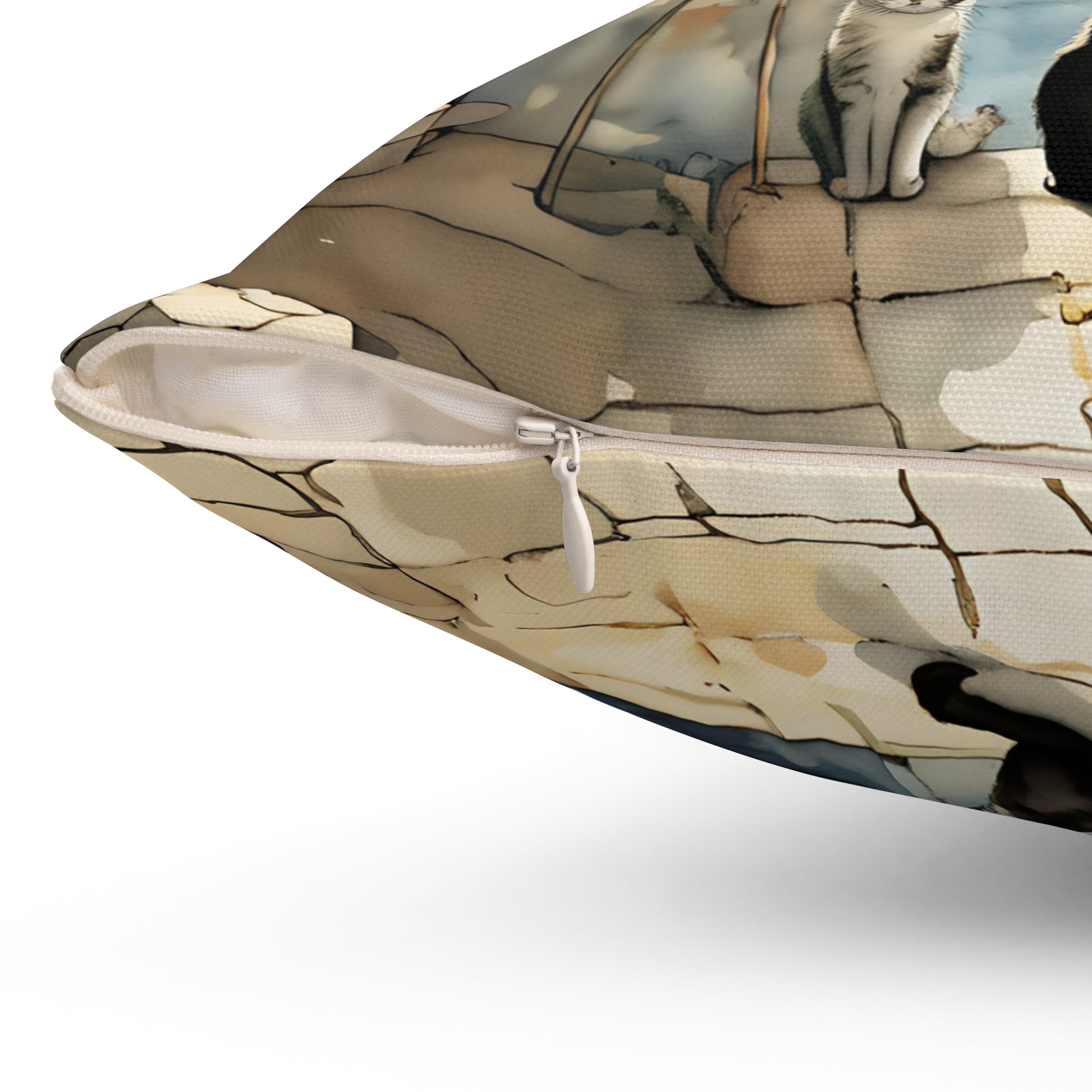 Harbour Cats Square Pillow - by Fairyhill Studio