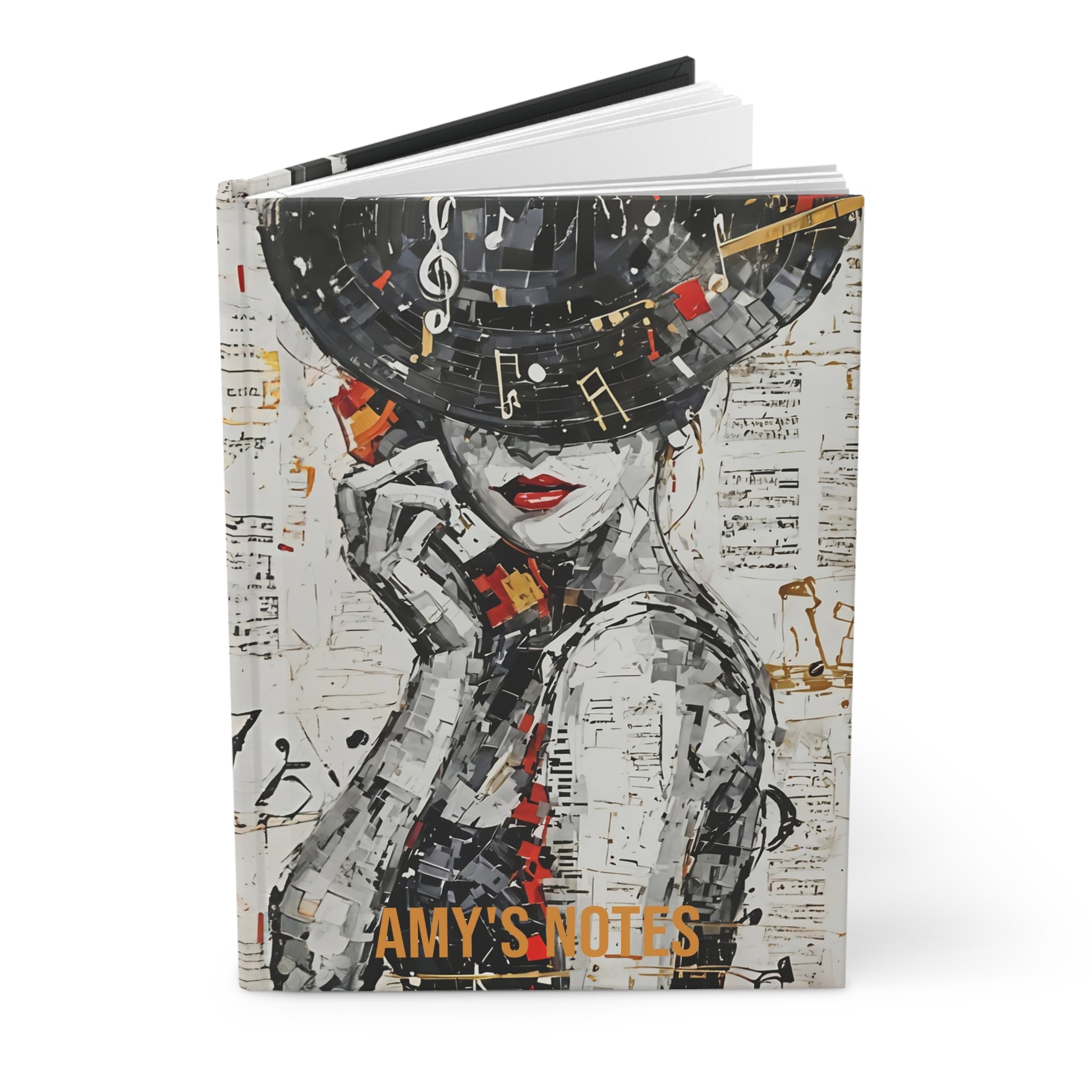 Hardcover Abstract woman with red Phone Art Journal hard Cover ,Notebook gift art Matte