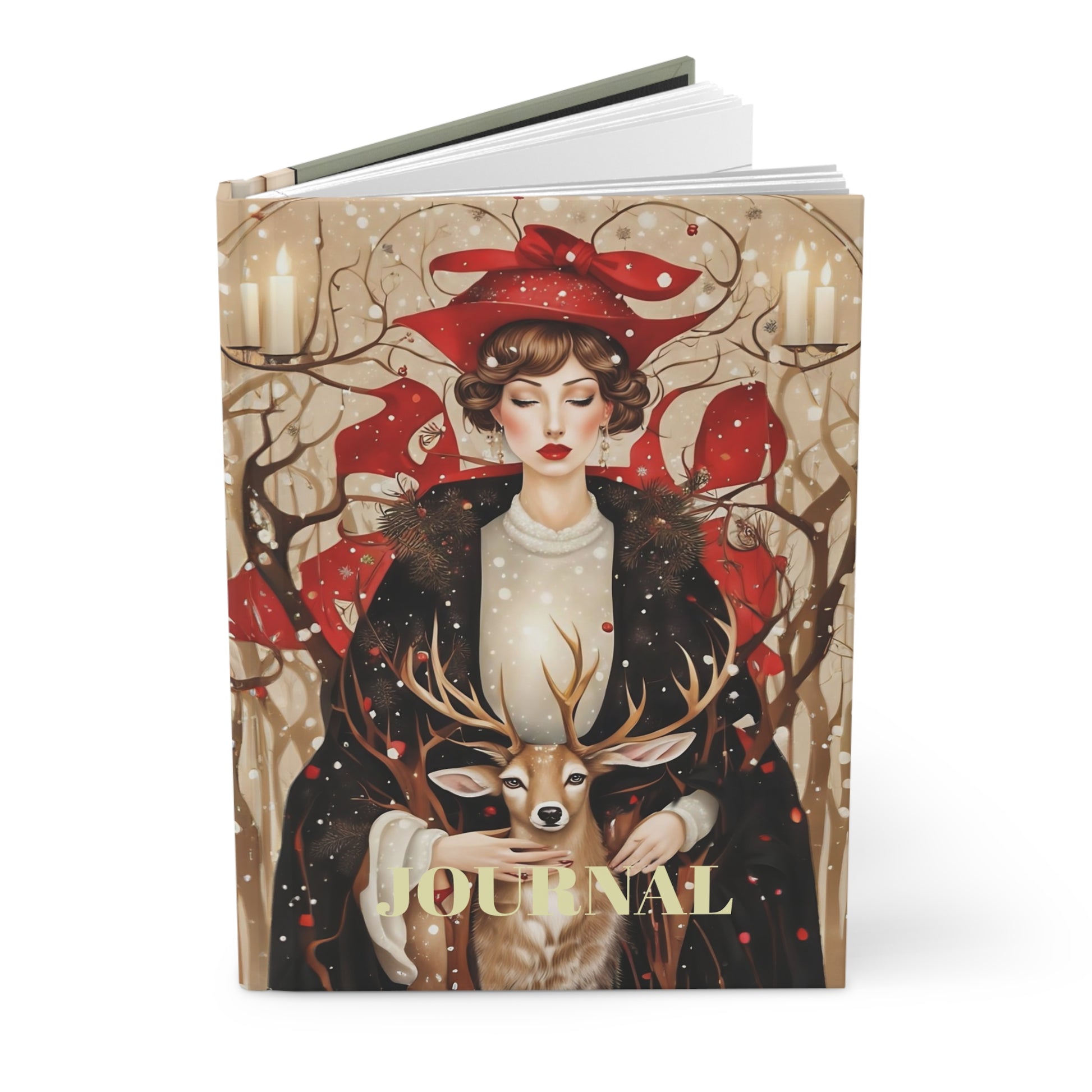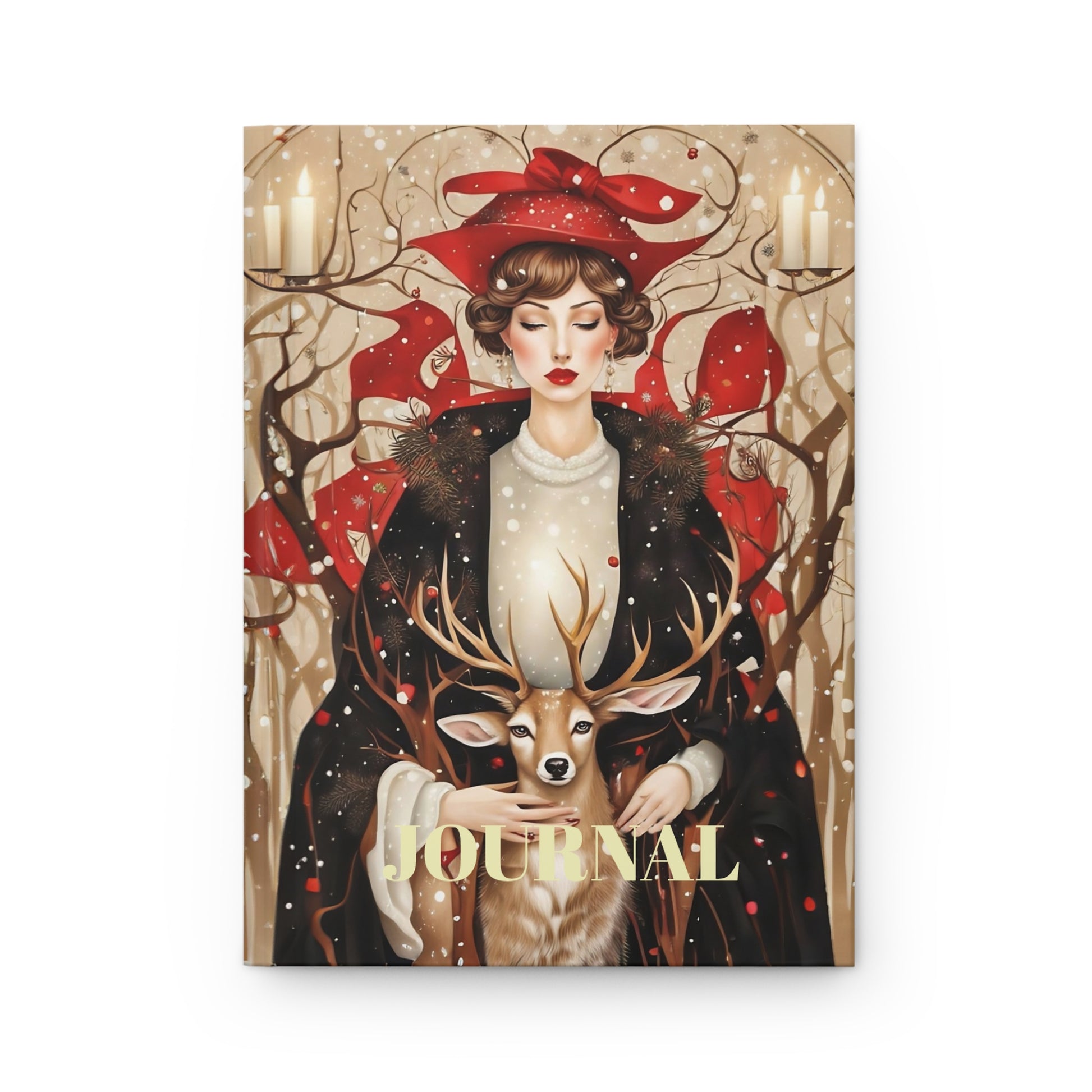 This Journal features a design of a young girl with a hat and dragonfly in front of a fairy tale cottage, giving off a whimsical and magical vibe. Perfect for journaling, sketching, or note-taking. Ideal for those who love fairy tales and nature. Great for gifting during birthdays, holidays, or as a special keepsake.