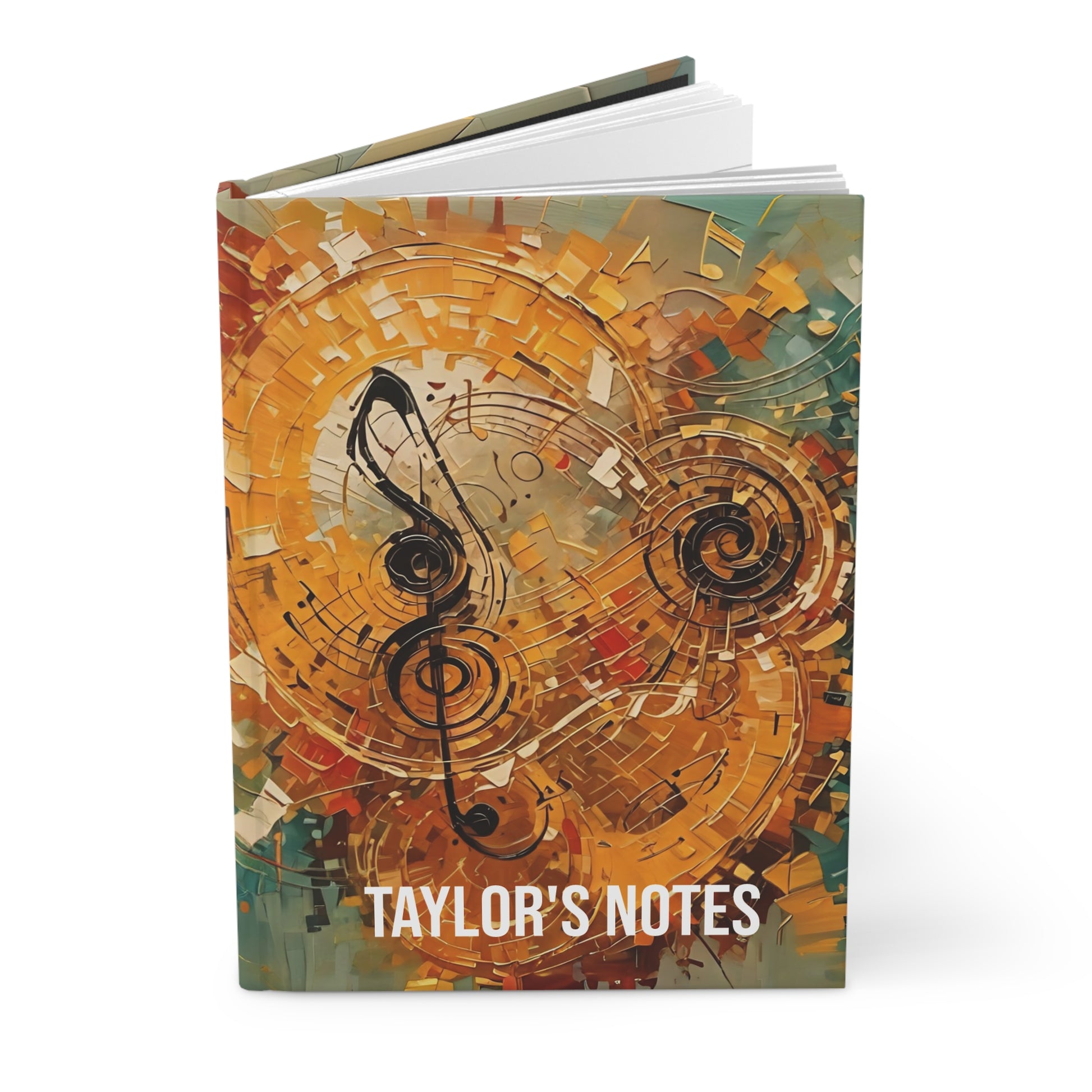 Vibrant and colorful abstract music notes design personalized hardcover journal. Perfect for music lovers and artists. Adds a creative touch to your daily note-taking or sketching. Ideal for gifting during birthdays, holidays, and special occasions.
