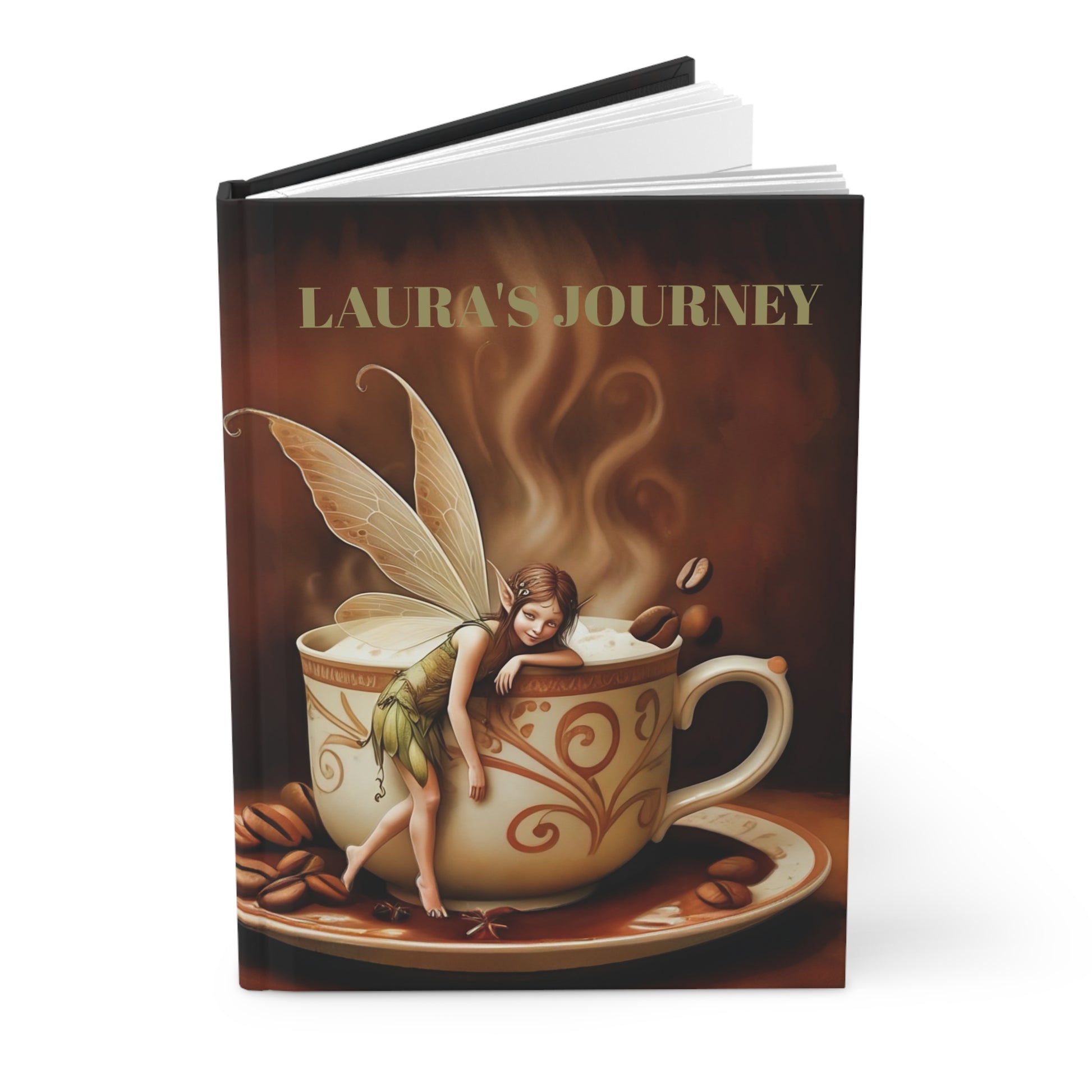 Hardcover Journal Matte Personalized with Morning Coffee Fairy Art by Fairyhill Studio