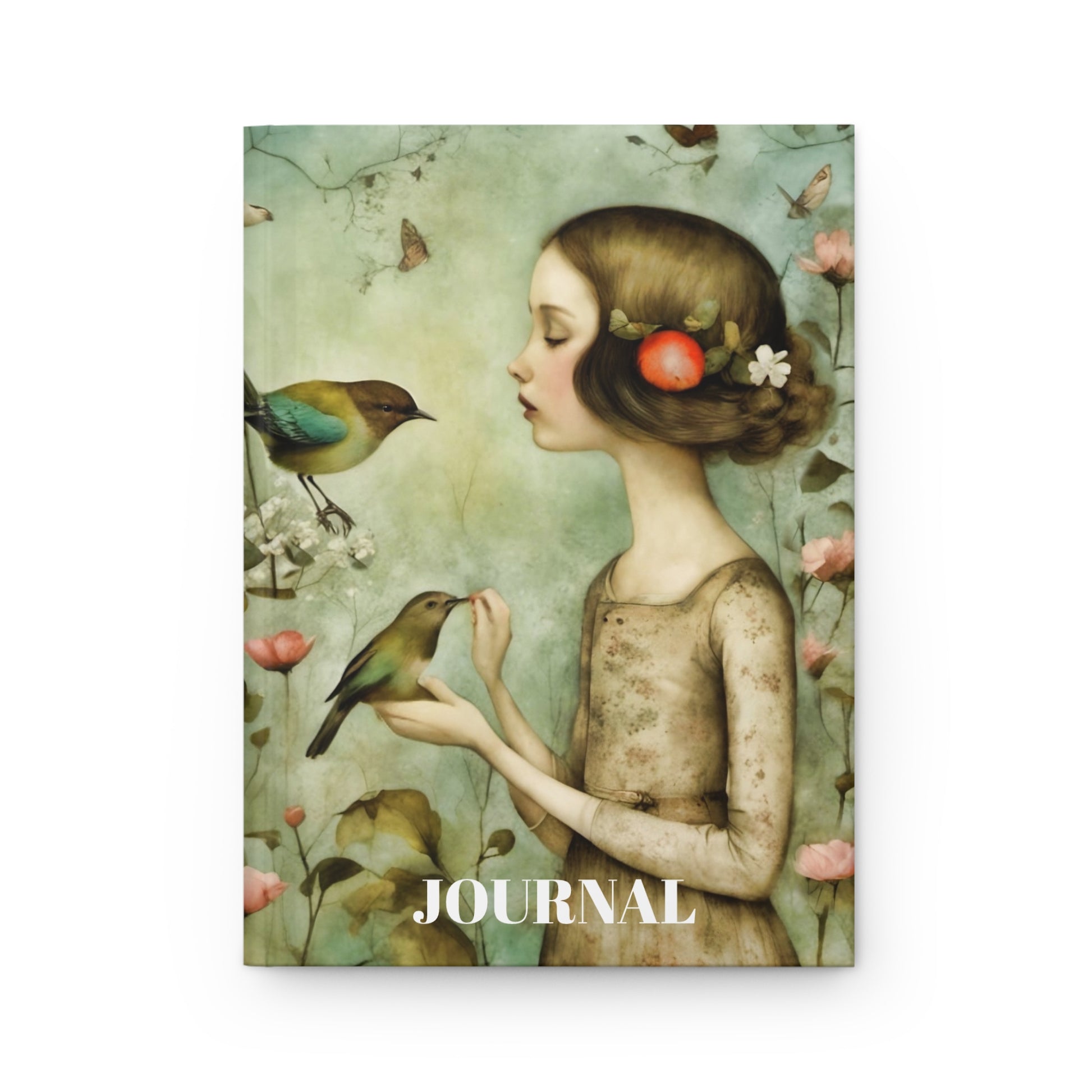 Hardcover Journal Matte - The Girl with the Song Birds Art Meditation Design
