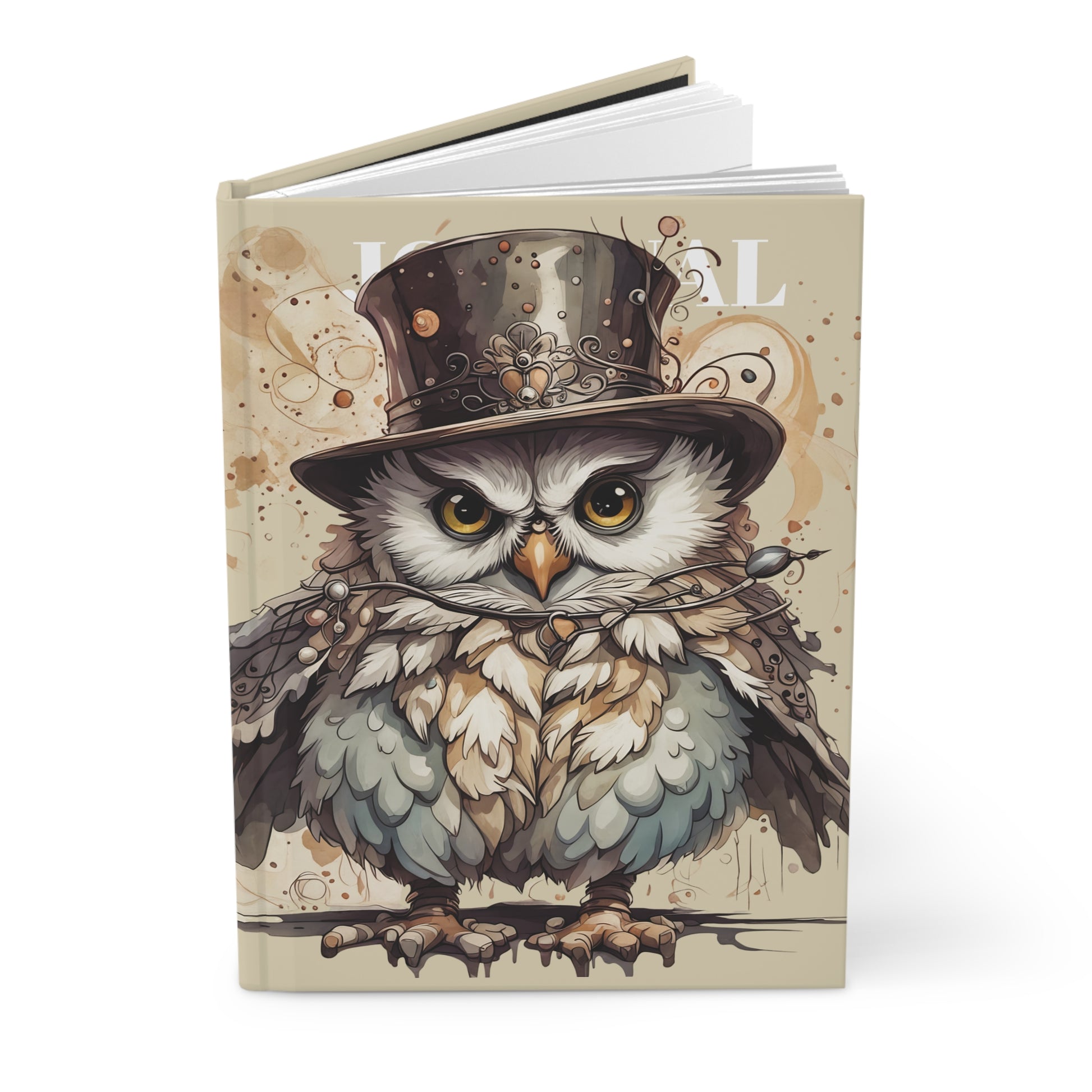 This Journal features a cute night owl art in vintage steampunk style wearing a top hat, giving off a cozy and whimsical vibe. Perfect for those who love unique and artistic journals, great for keeping track of thoughts, dreams, and ideas. Ideal for stationary lovers, artists, or writers looking for a touch of creativity in their everyday life. Relevant for Halloween, Christmas, or any occasion where a thoughtful gift is appreciated.