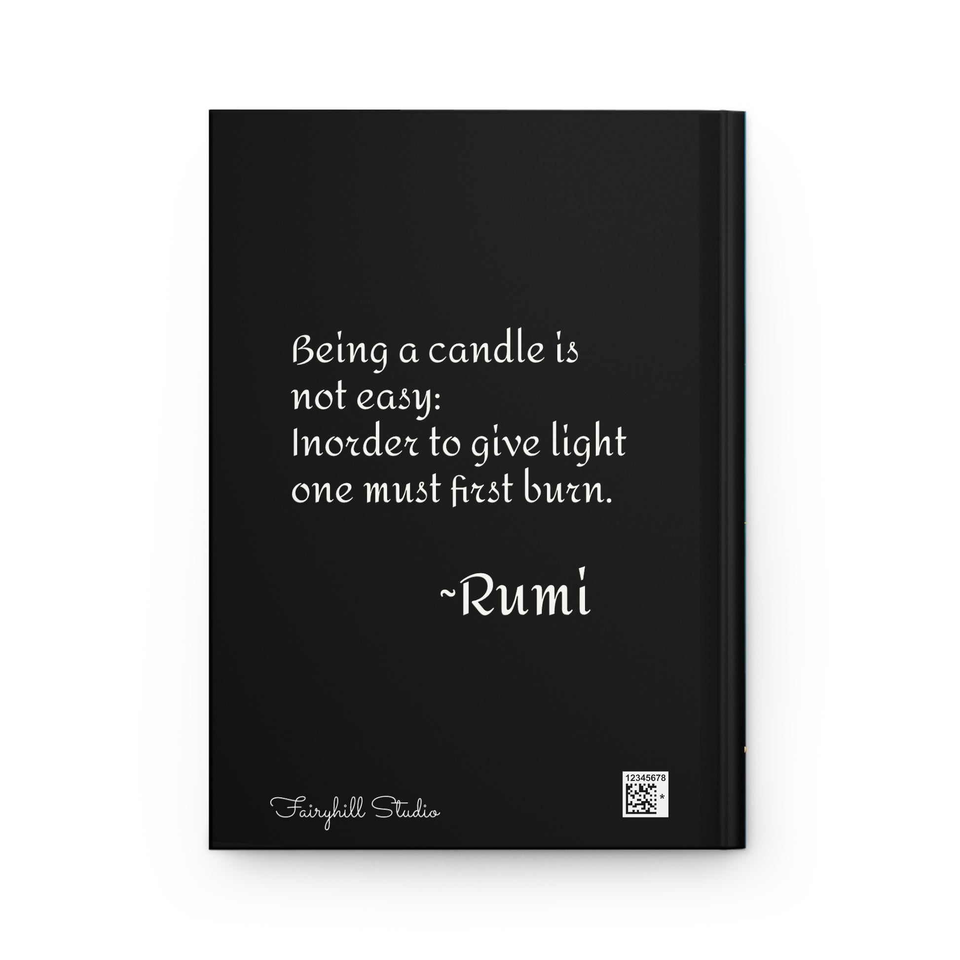 Hardcover Journal - Rumi Spiritual Quote 'Being a Candle Is Not Easy' Art by Fairyhill Studio