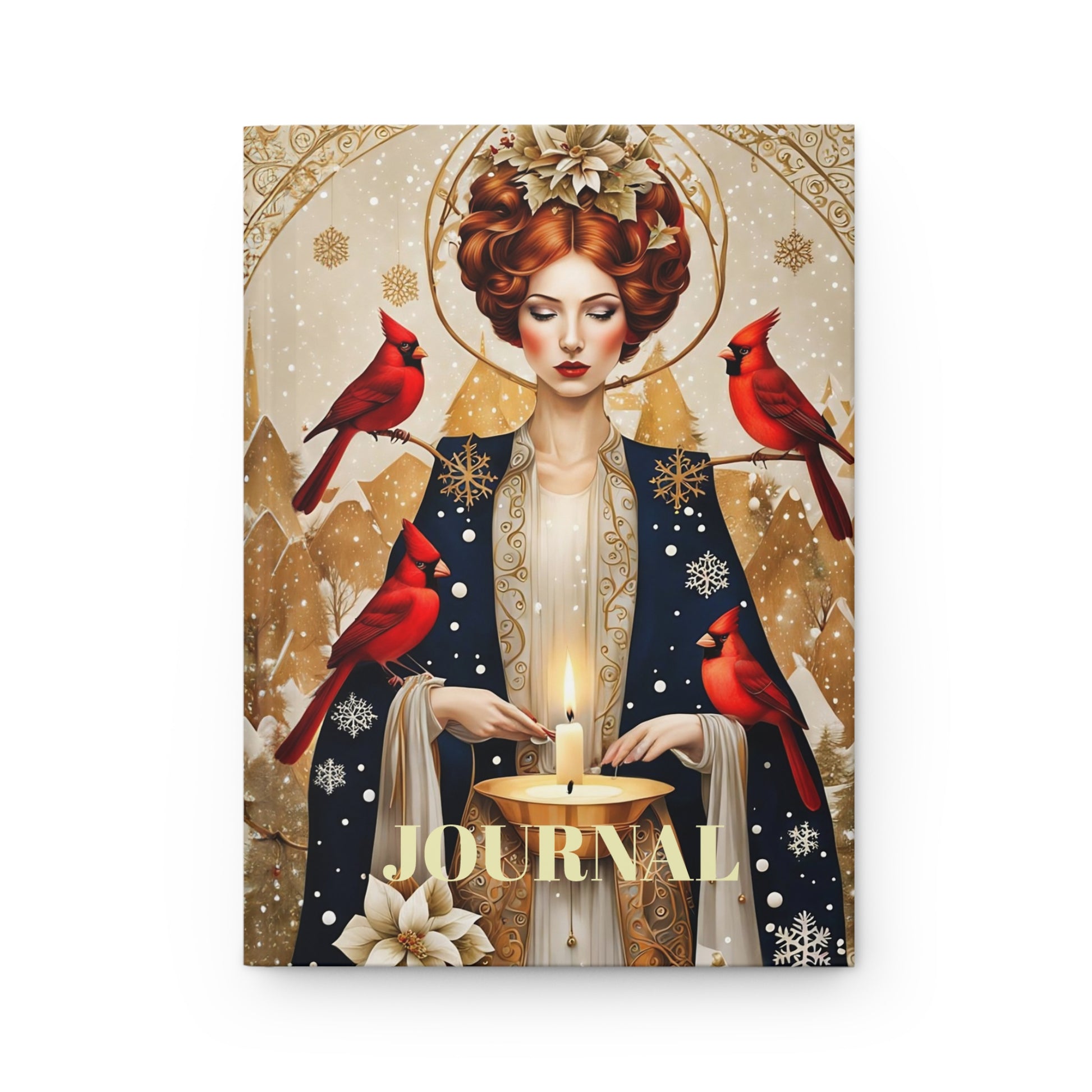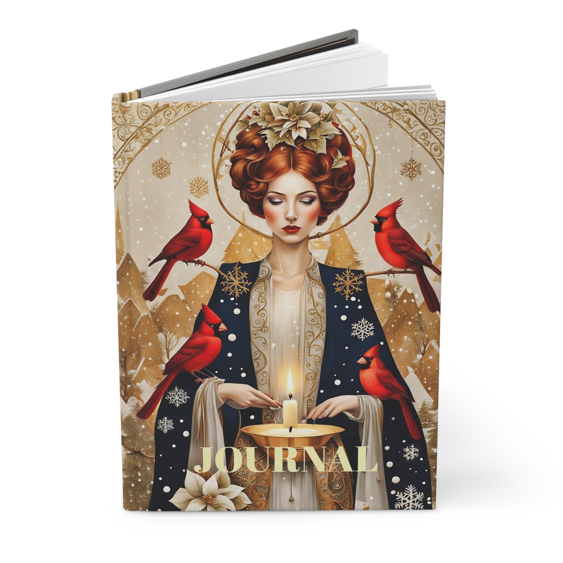 Hardcover Journal the girl with red winter cardinal birds