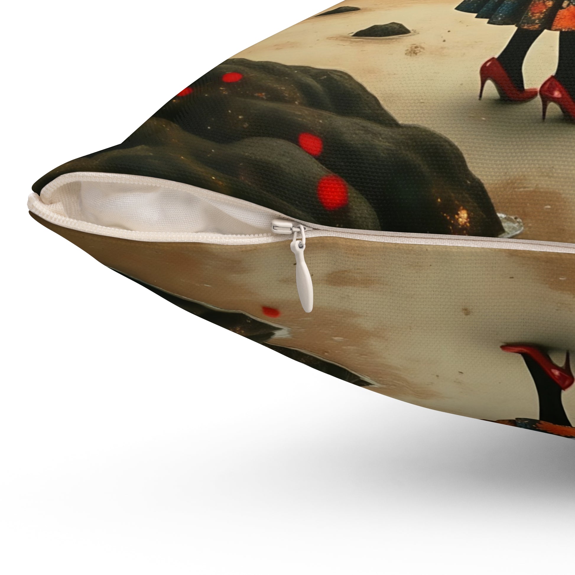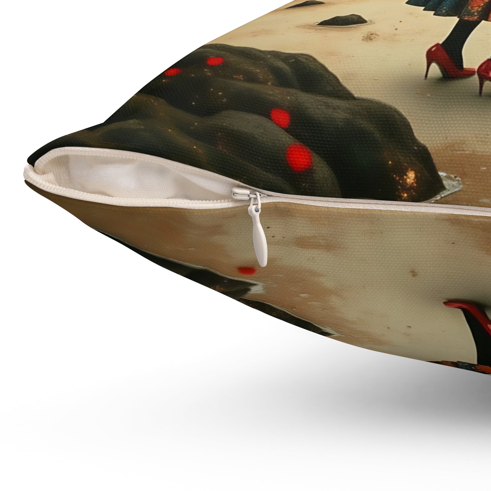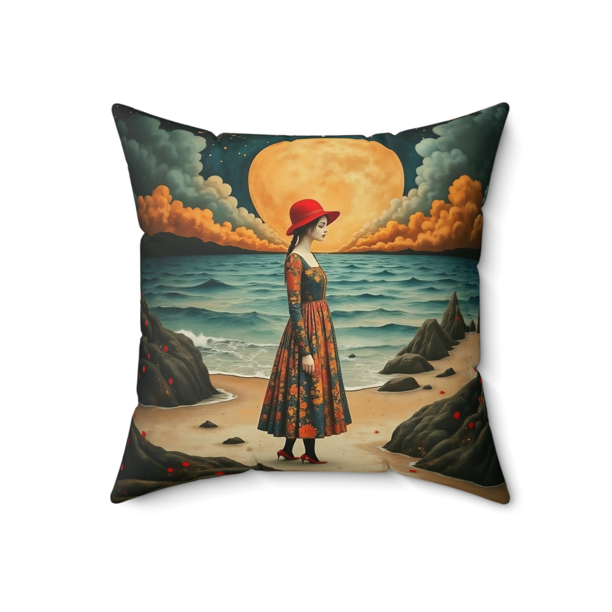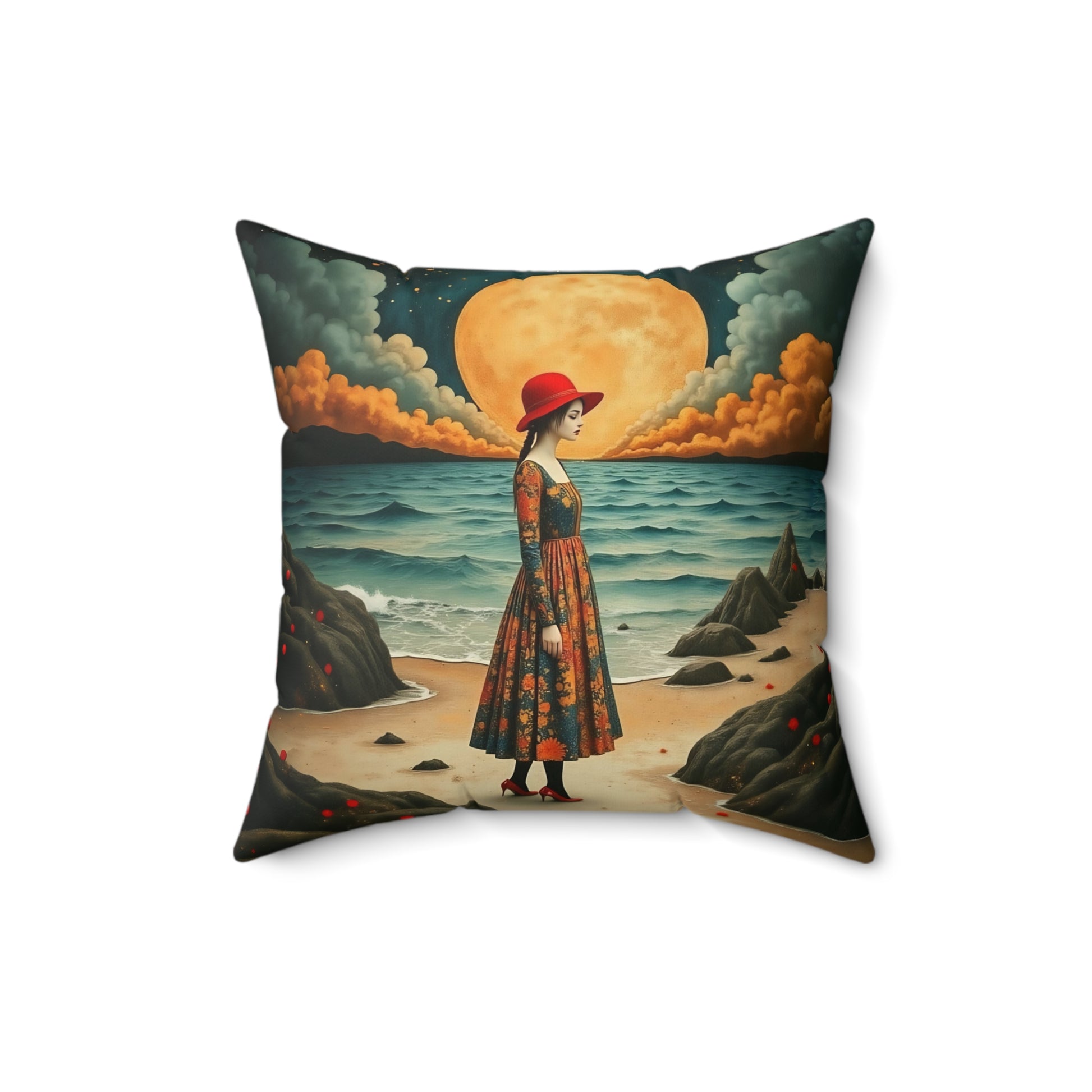 Moonlight girl with red hat Square Pillow - by Fairyhill Studio