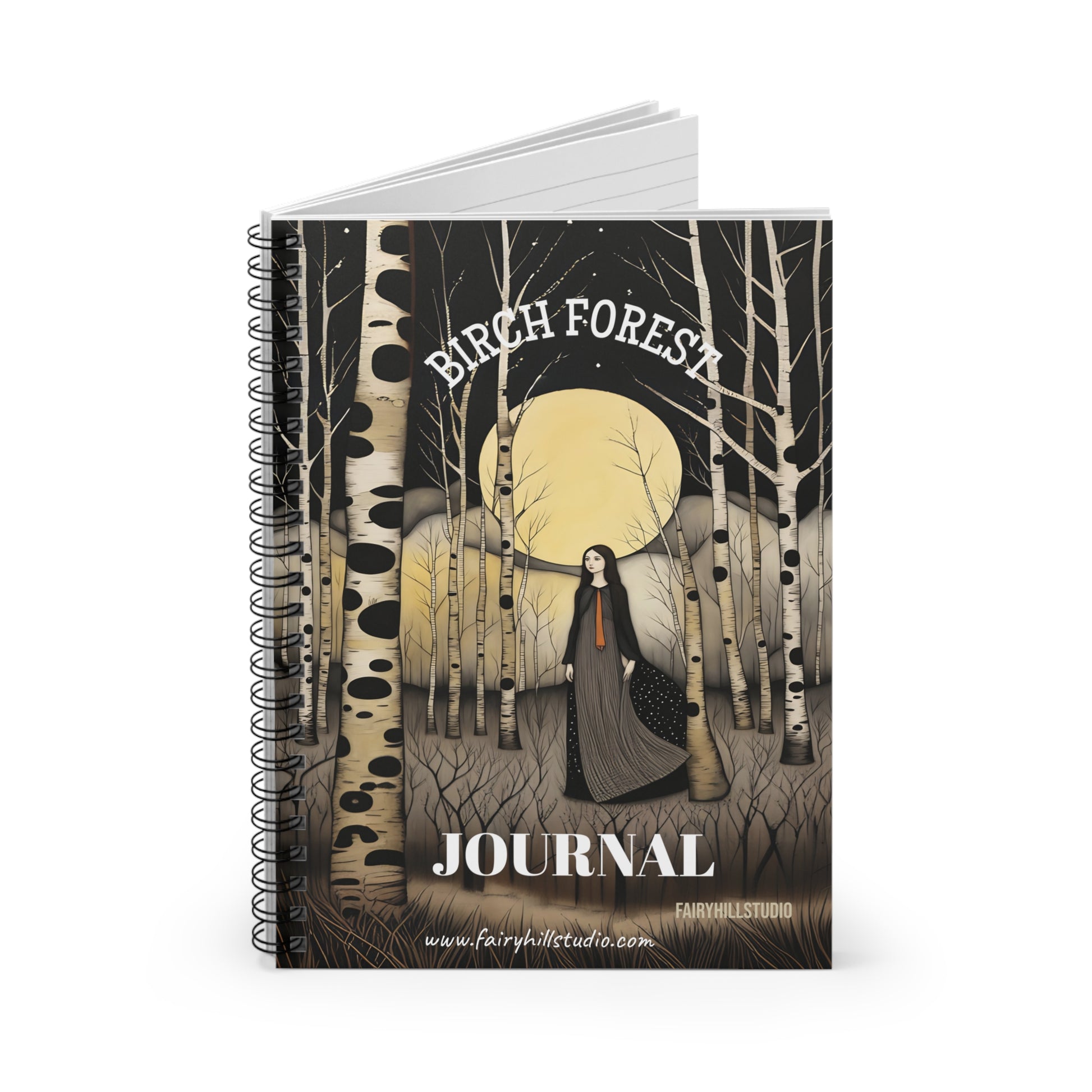 Midnight Birch forest Journal ,Shopping lists, school notes or poems - 118 page spiral notebook with ruled line paper is a perfect companion in everyday life. The durable printed cover makes the owner proud to carry it everywhere.