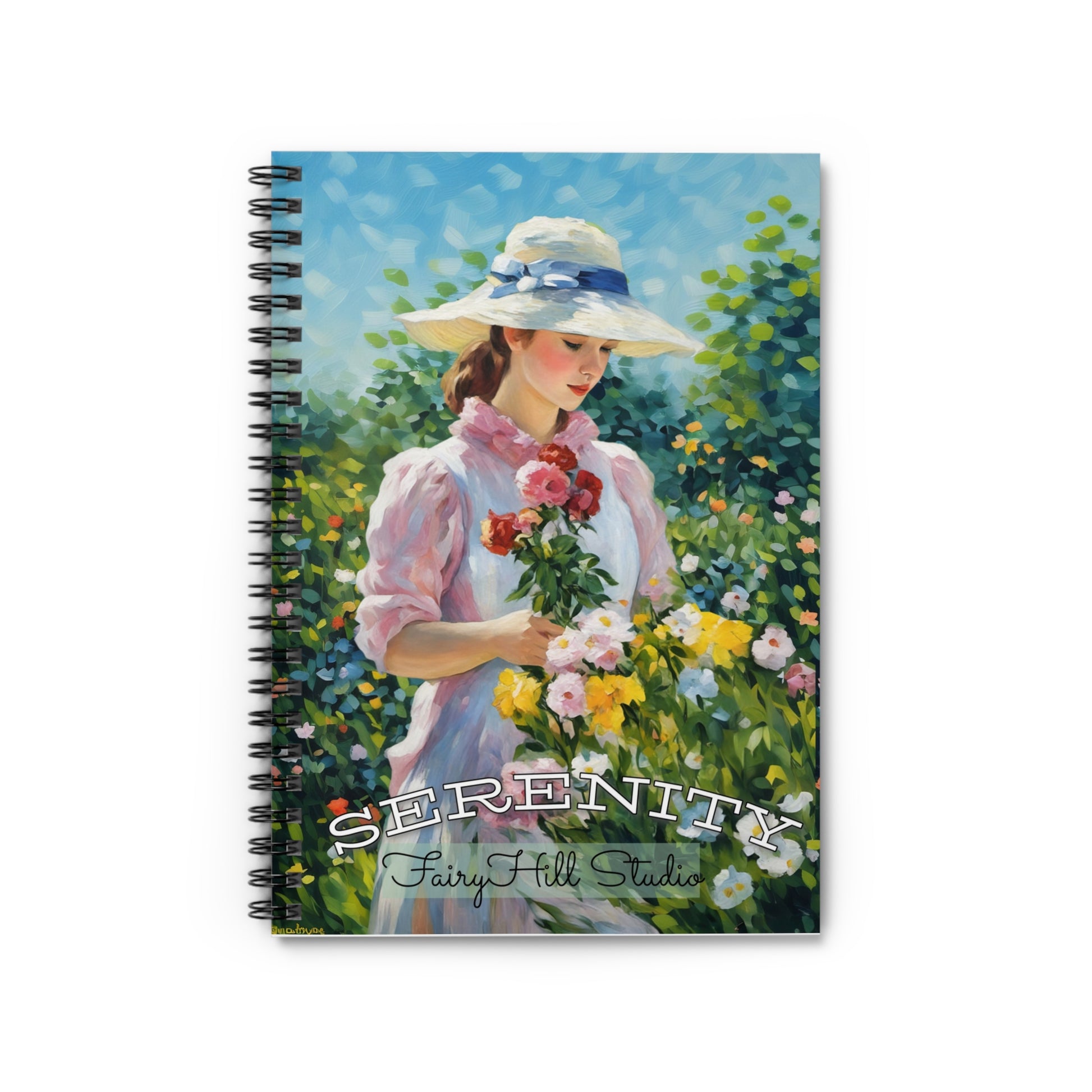 Beautiful journal featuring a painting of a girl art with a flower basket by Fairyhill studio. Perfect for Monet art lovers, this notebook gives a whimsical and artistic vibe to your writing. Ideal for those who love to write stories or keep a diary, this journal is a great gift for any occasion. Relevant to art lovers, writers, diary keepers, and those who appreciate beautiful design. Perfect for birthdays, holidays, and special occasions.
