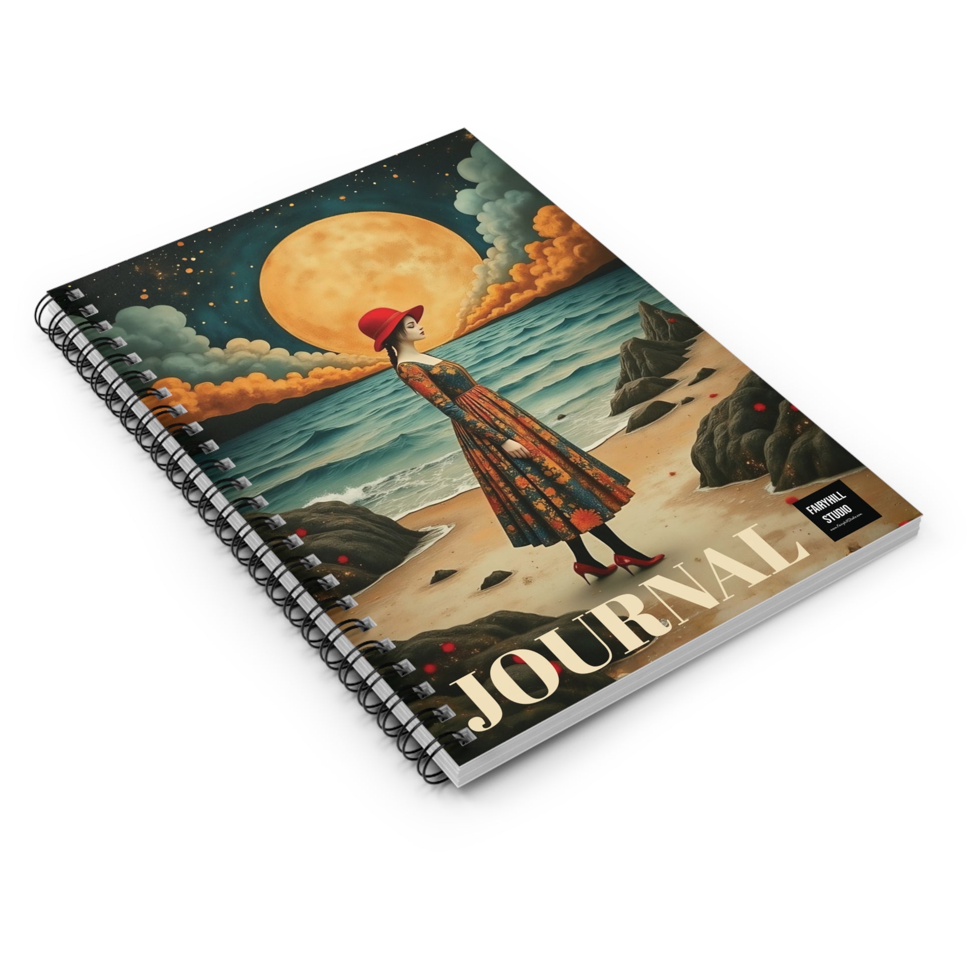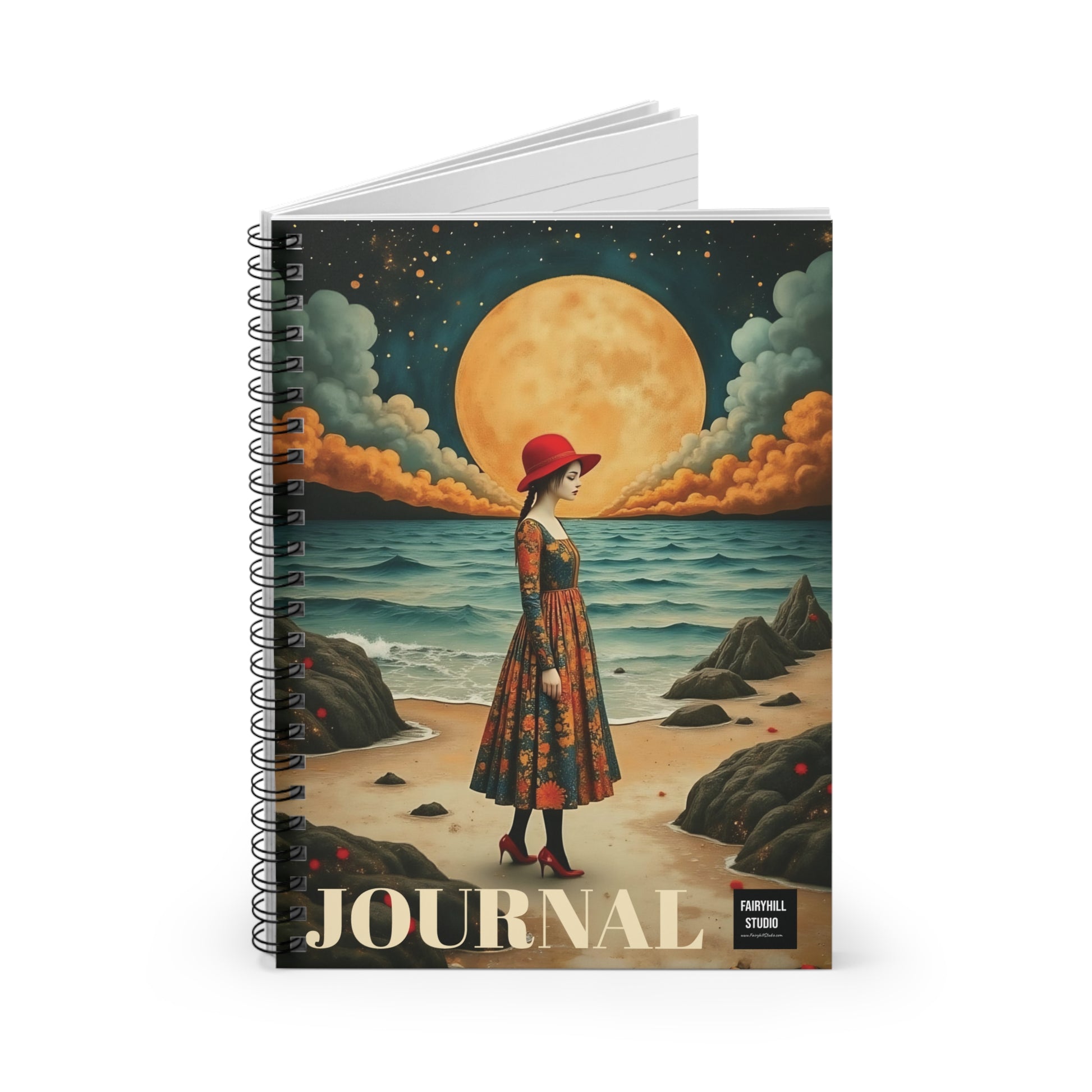 Moon Girl with red hatt Spiral Notebook fairyhill studio