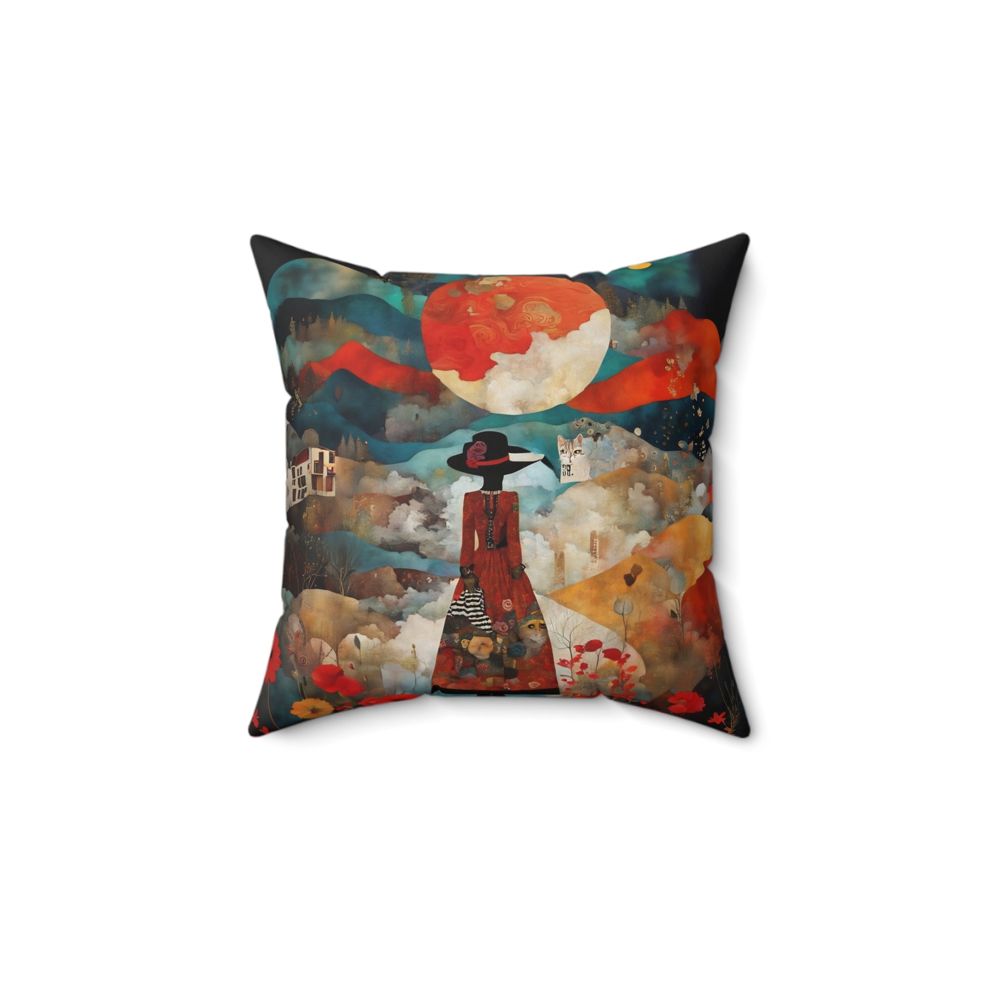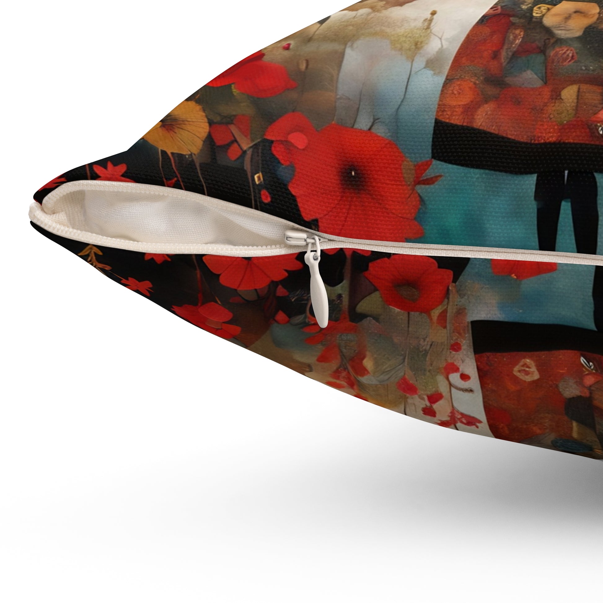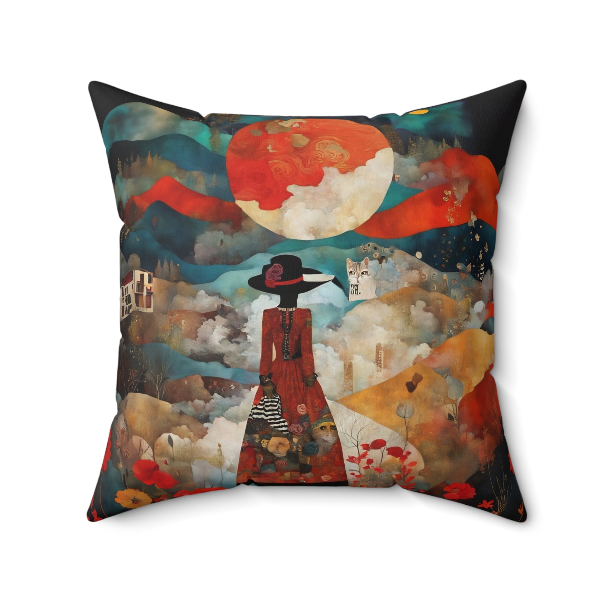 Moon struck/Red poppies Square Pillow - by Fairyhill Studio