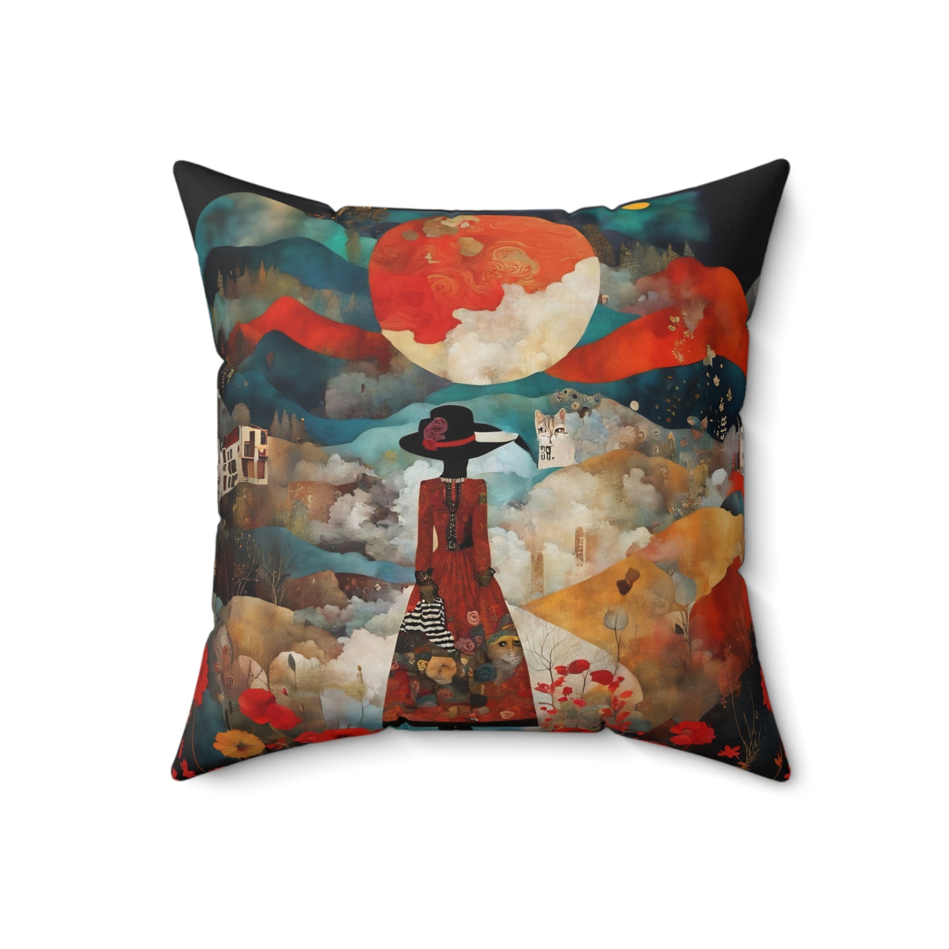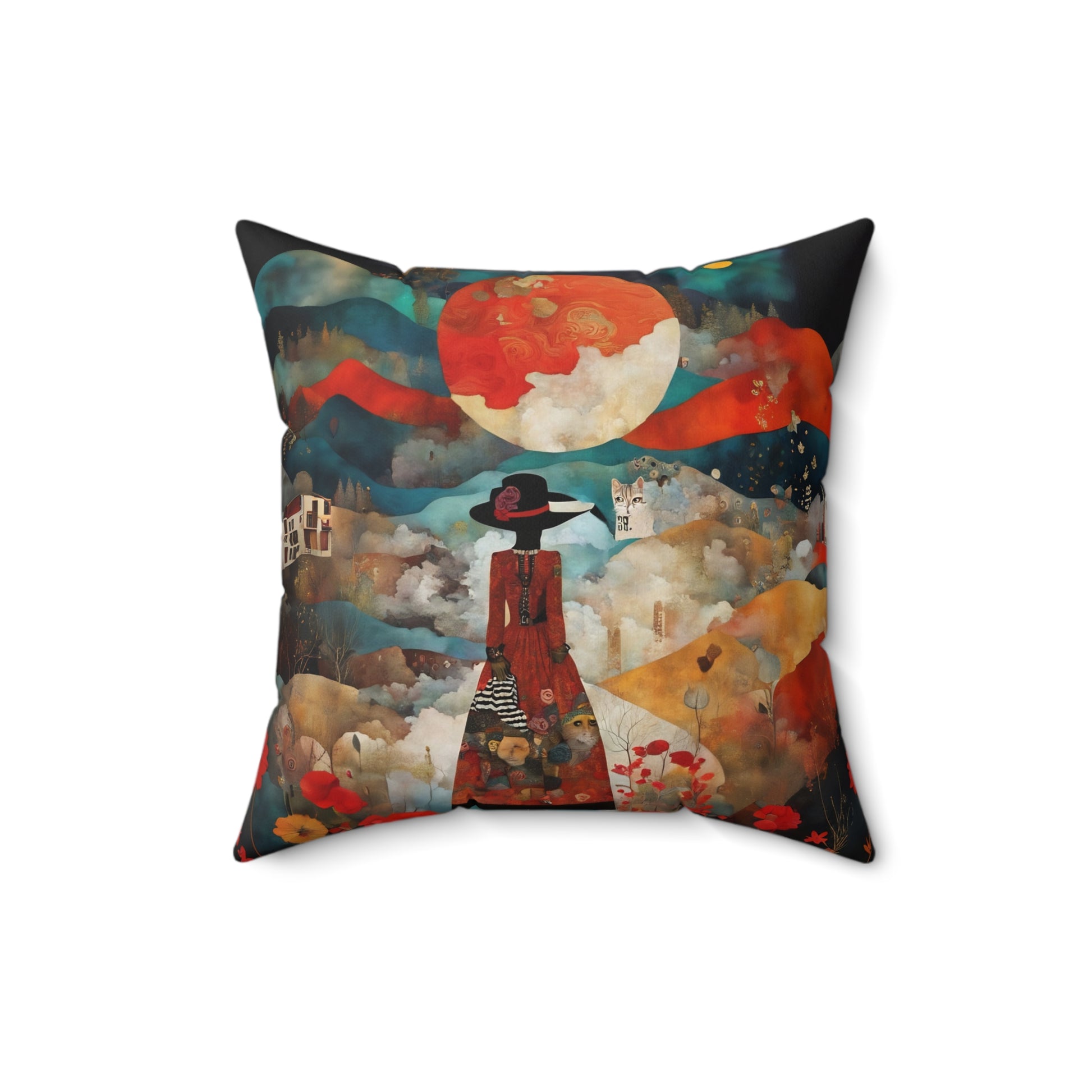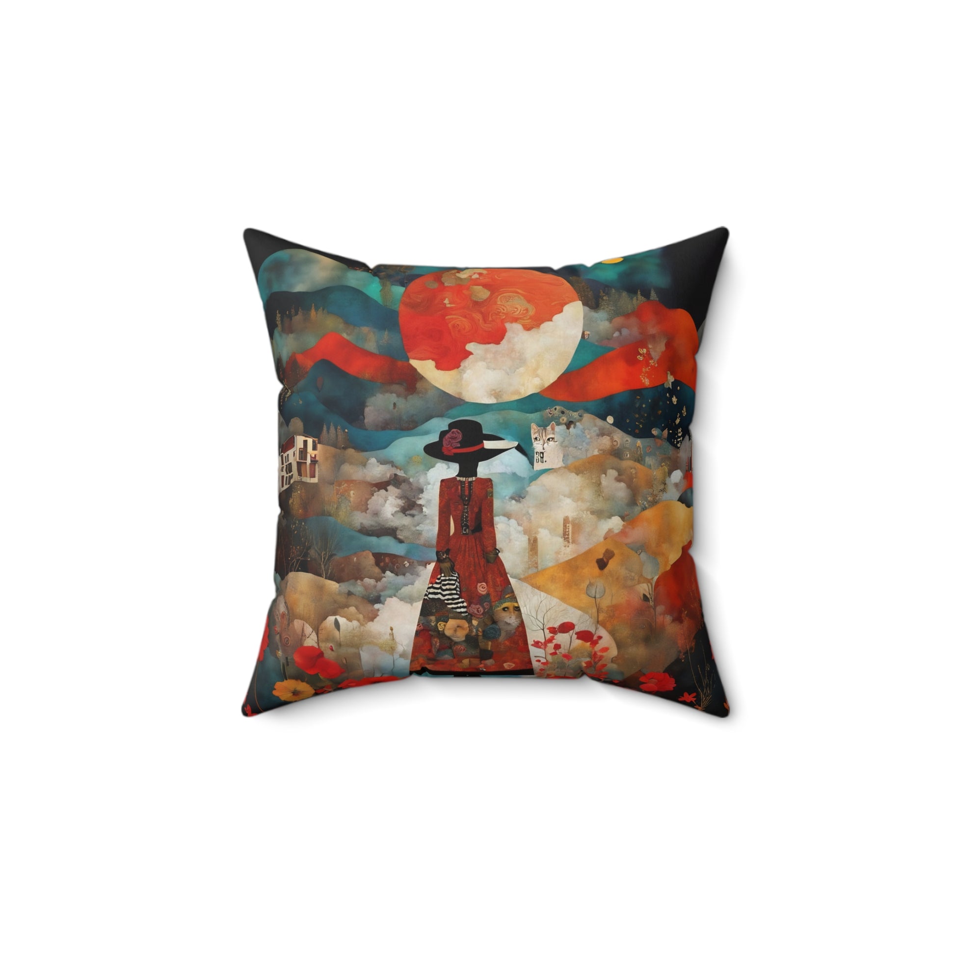 Moon struck/Red poppies Square Pillow - by Fairyhill Studio