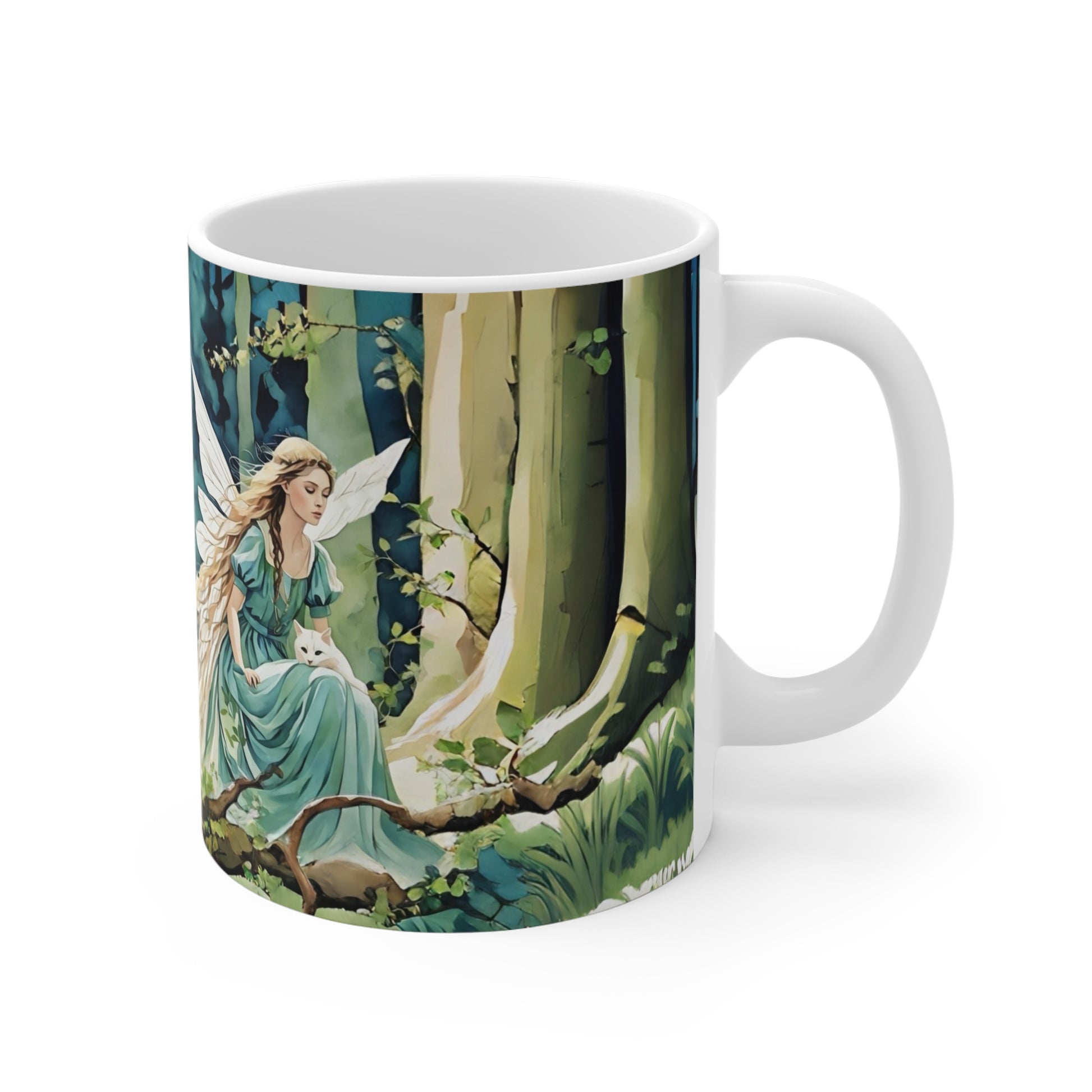 Mug: Angel Fairy and Cat Magical Forest Art by Fairyhill Studio