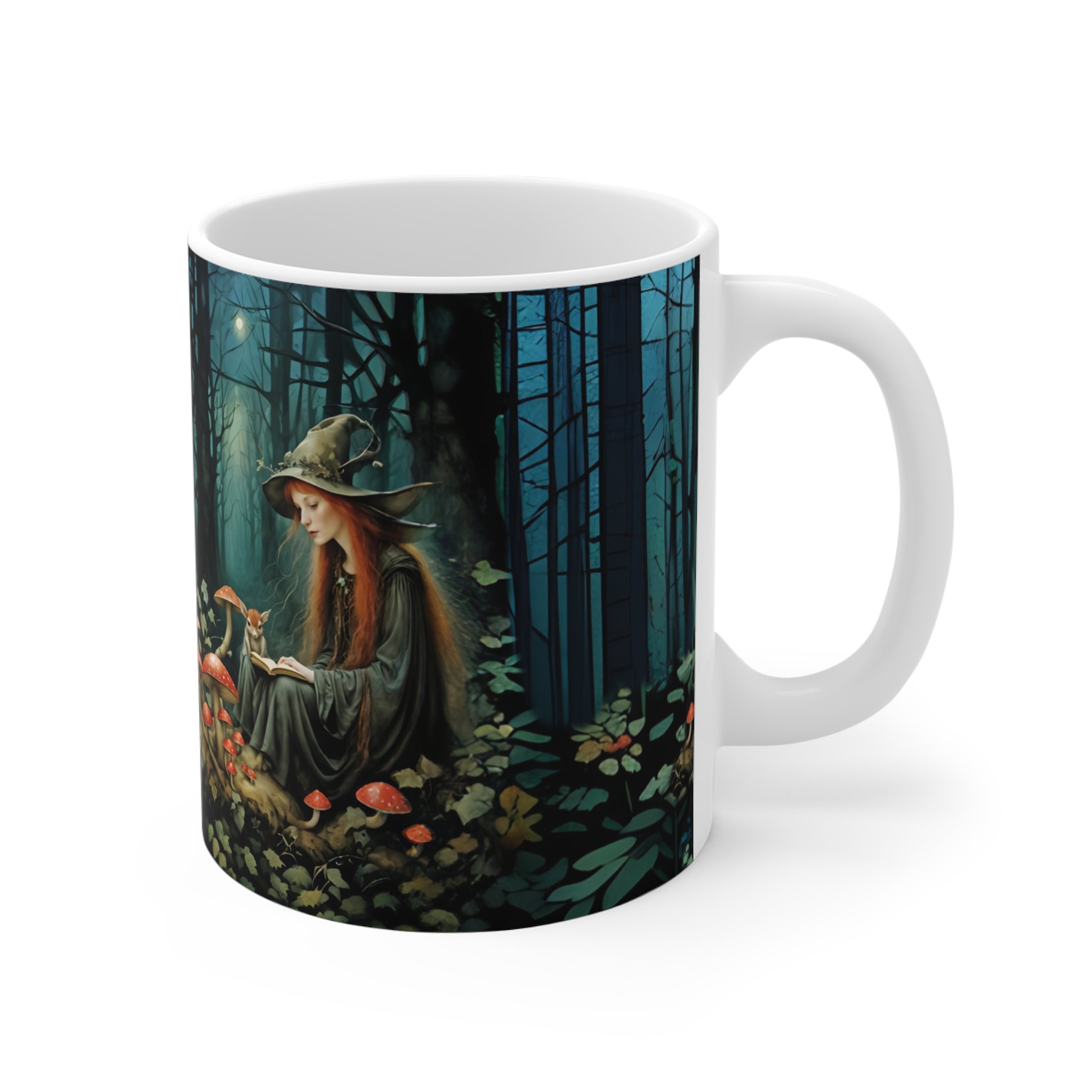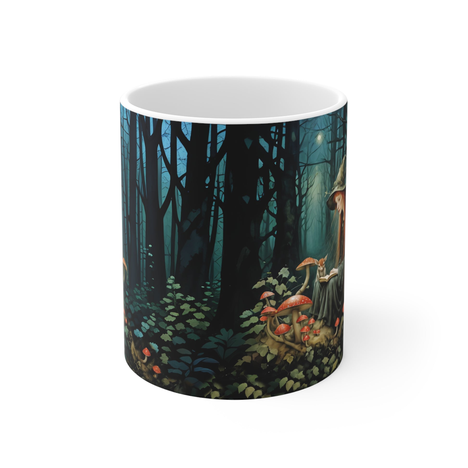This 11oz ceramic Mug features a charming design of a mushroom sitting in a forest with red mushrooms, illustrated by Fairyhill Studio. Perfect for nature lovers and those who enjoy whimsical artwork, this mug adds a touch of magic to your morning coffee or tea routine. Ideal for gifting during Christmas, birthdays, and other special occasions.