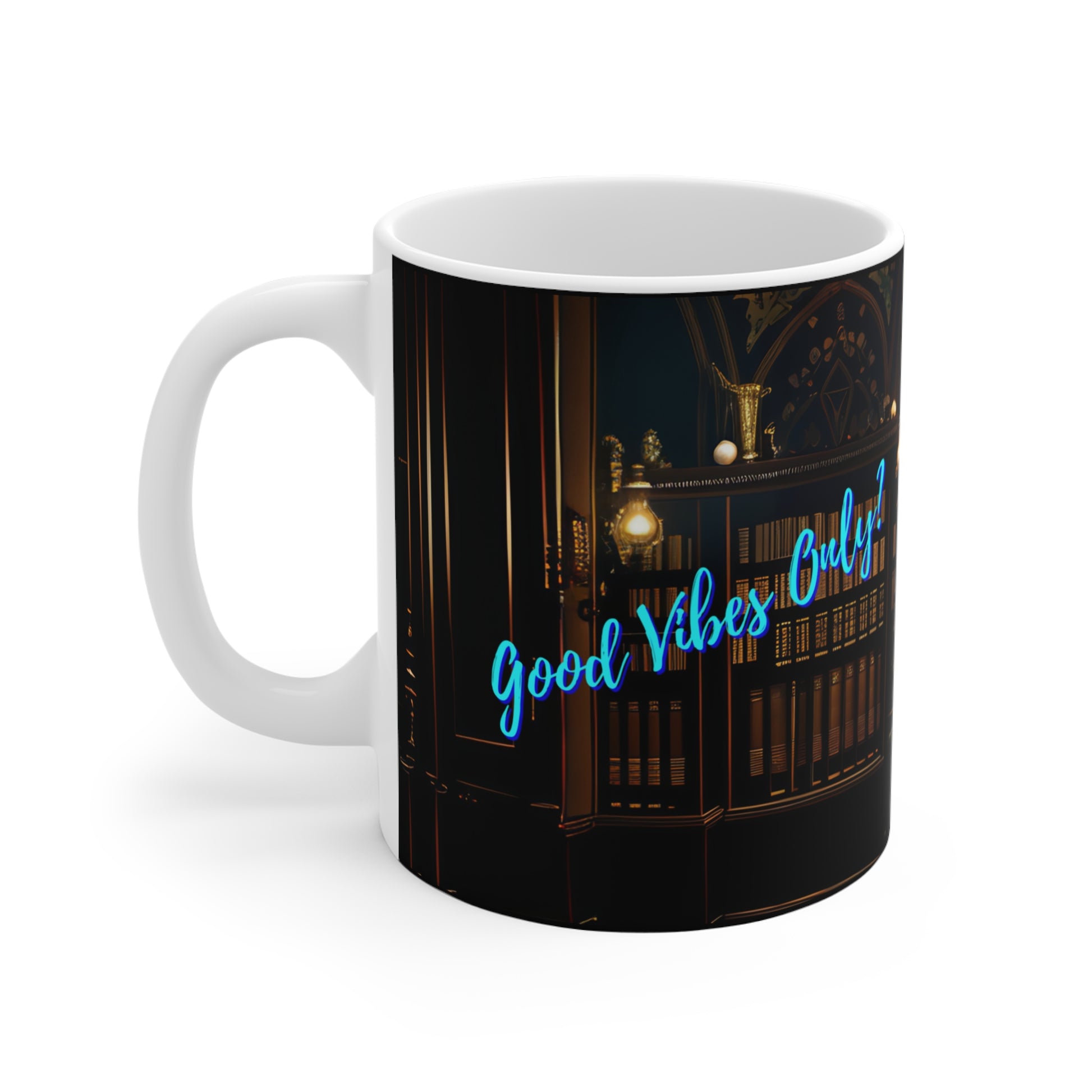 Mug - Good Vibes Only Art by Fairyhill Studio - Mad Hatter Character in Library