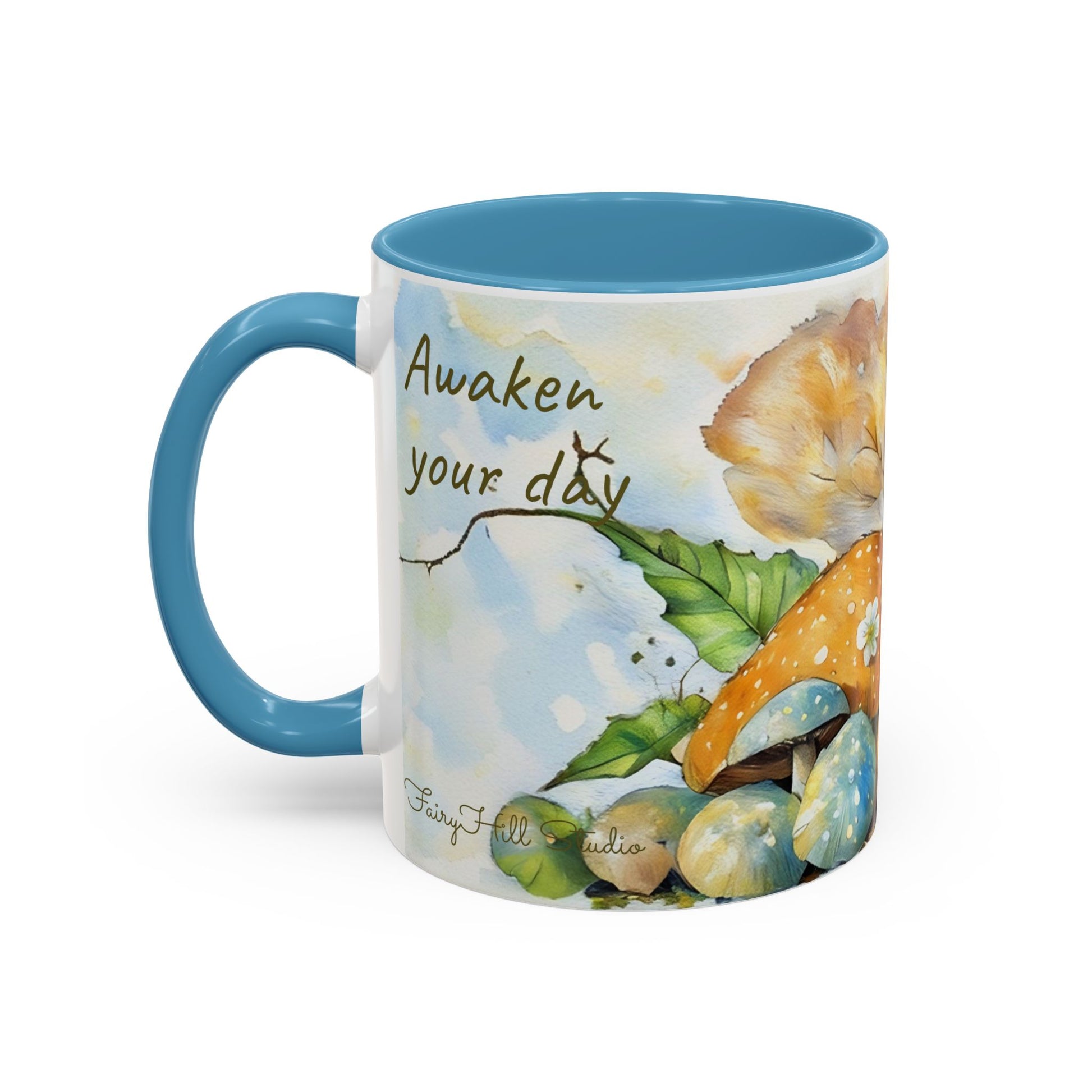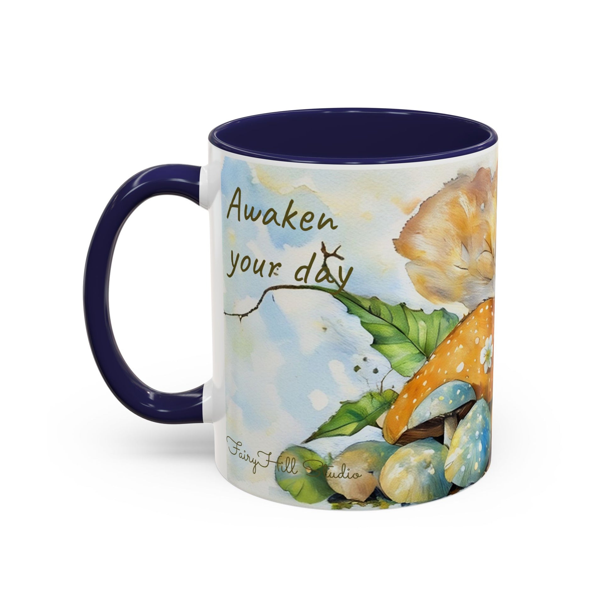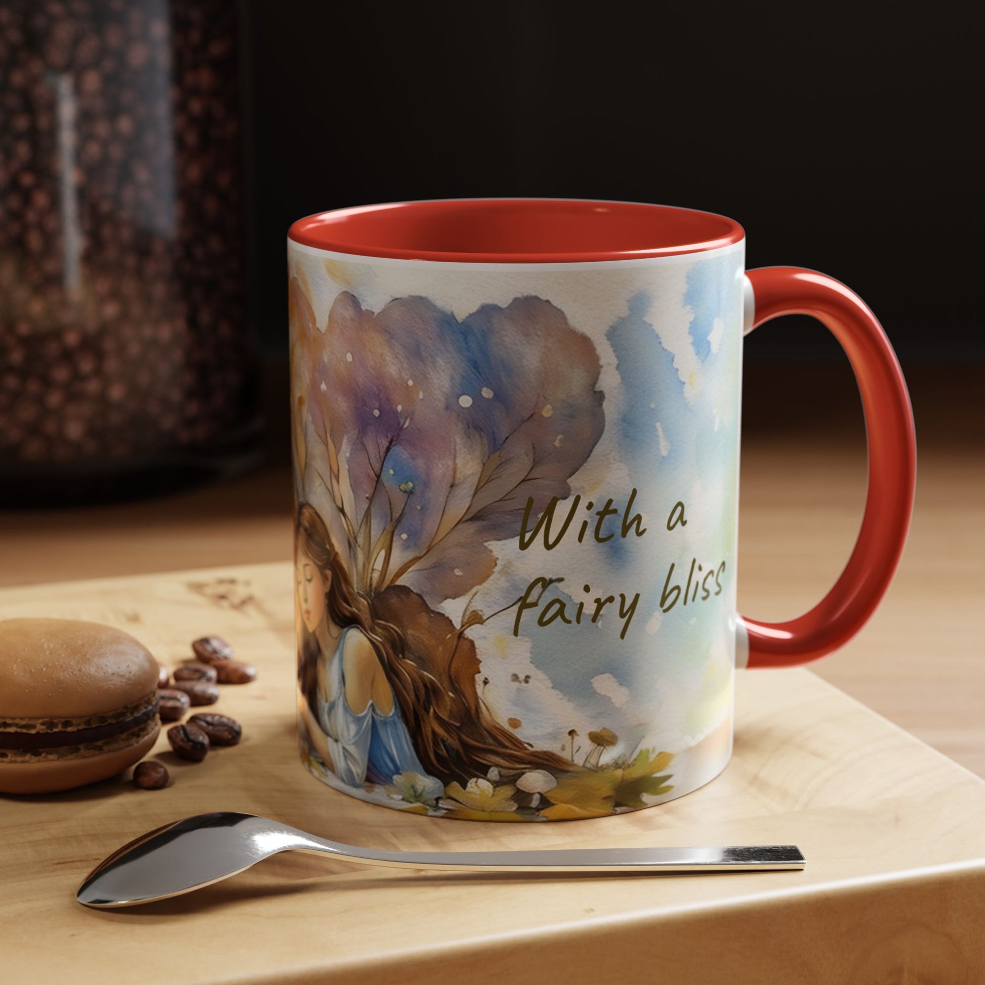 Fairy/Angel nature-Themed Coffee Mug - 11 & 15oz Accent Mug for Fairy/Nature flower/Coffee Lovers featuring an angel blessing colorful flowers watercolor art by Fairyhill studio. This whimsical mug brings a touch of magic and nature into your daily coffee routine. Perfect for fairy and nature enthusiasts, this mug is ideal for cozy mornings or evening tea sessions. Great for gifting during birthdays, holidays, or as a small token of appreciation.