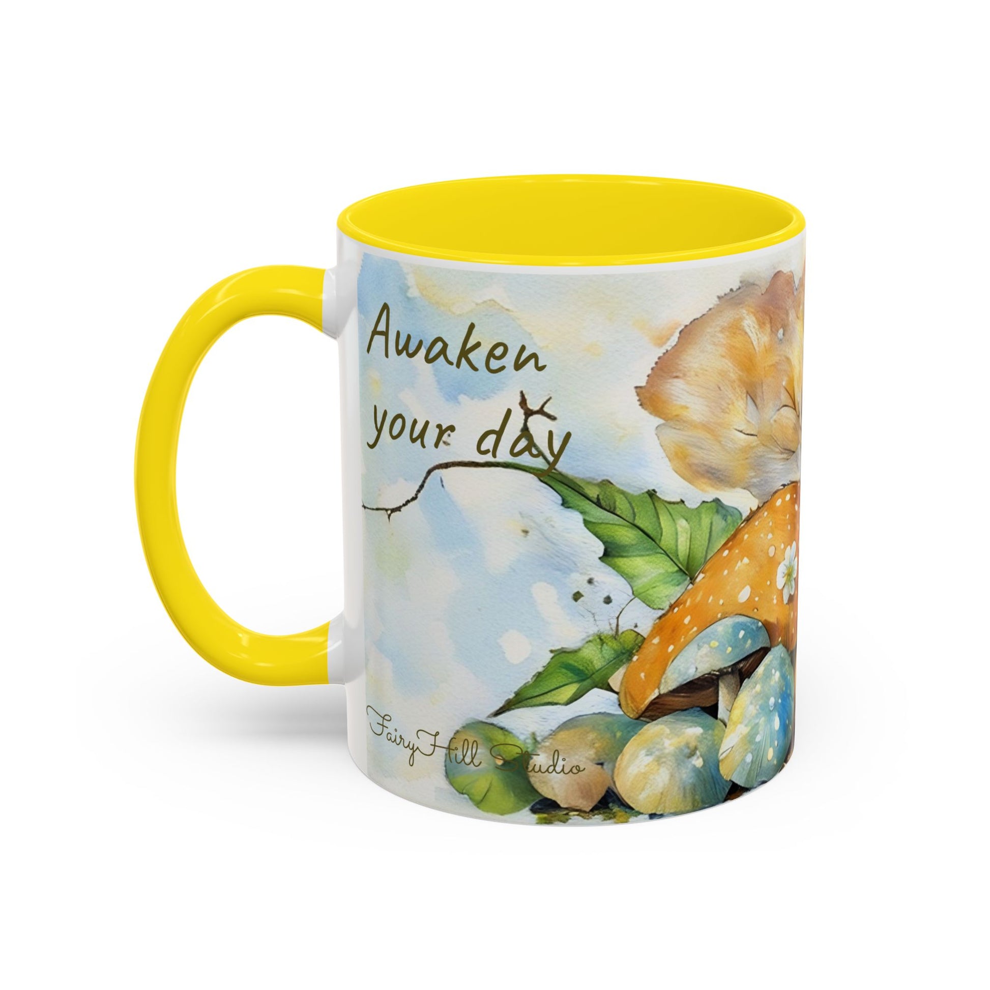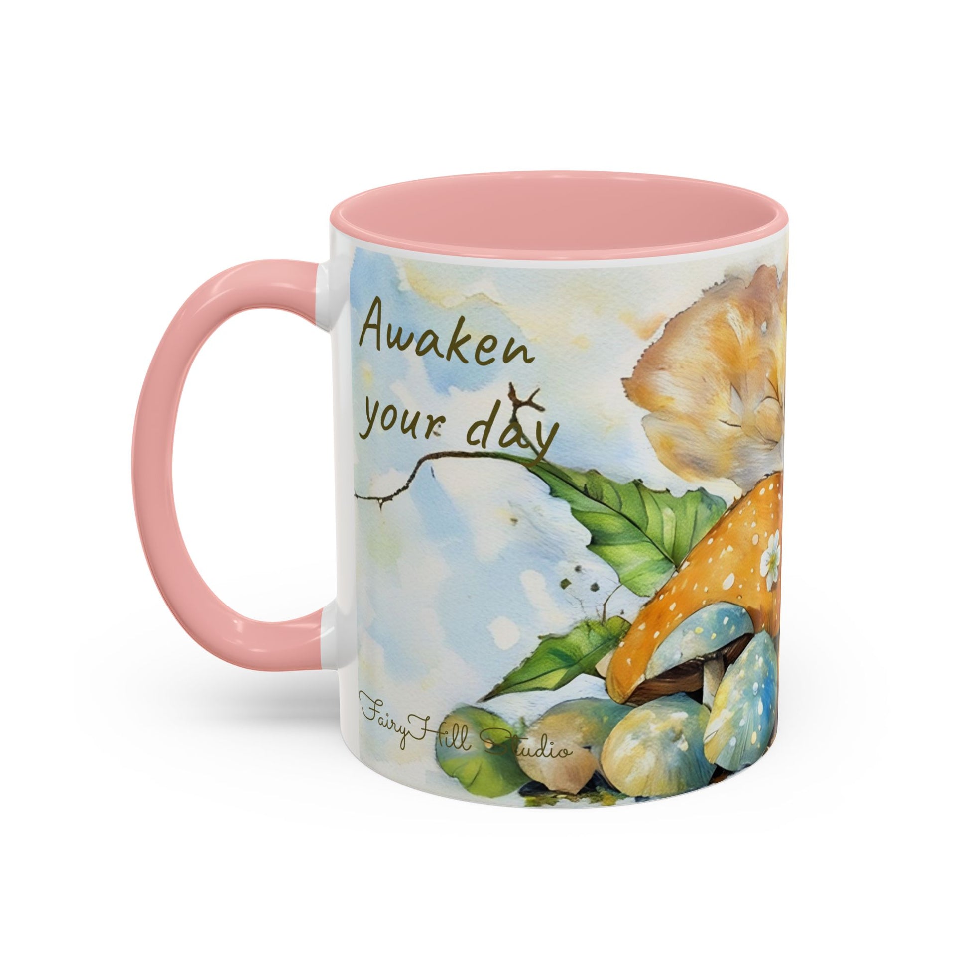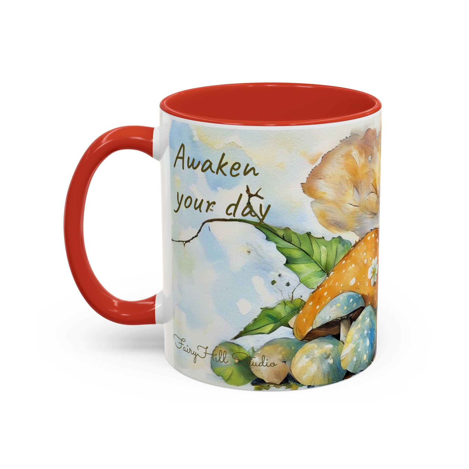 Fairy/Angel nature-Themed Coffee Mug - 11 & 15oz Accent Mug for Fairy/Nature flower/Coffee Lovers featuring an angel blessing colorful flowers watercolor art by Fairyhill studio. This whimsical mug brings a touch of magic and nature into your daily coffee routine. Perfect for fairy and nature enthusiasts, this mug is ideal for cozy mornings or evening tea sessions. Great for gifting during birthdays, holidays, or as a small token of appreciation.