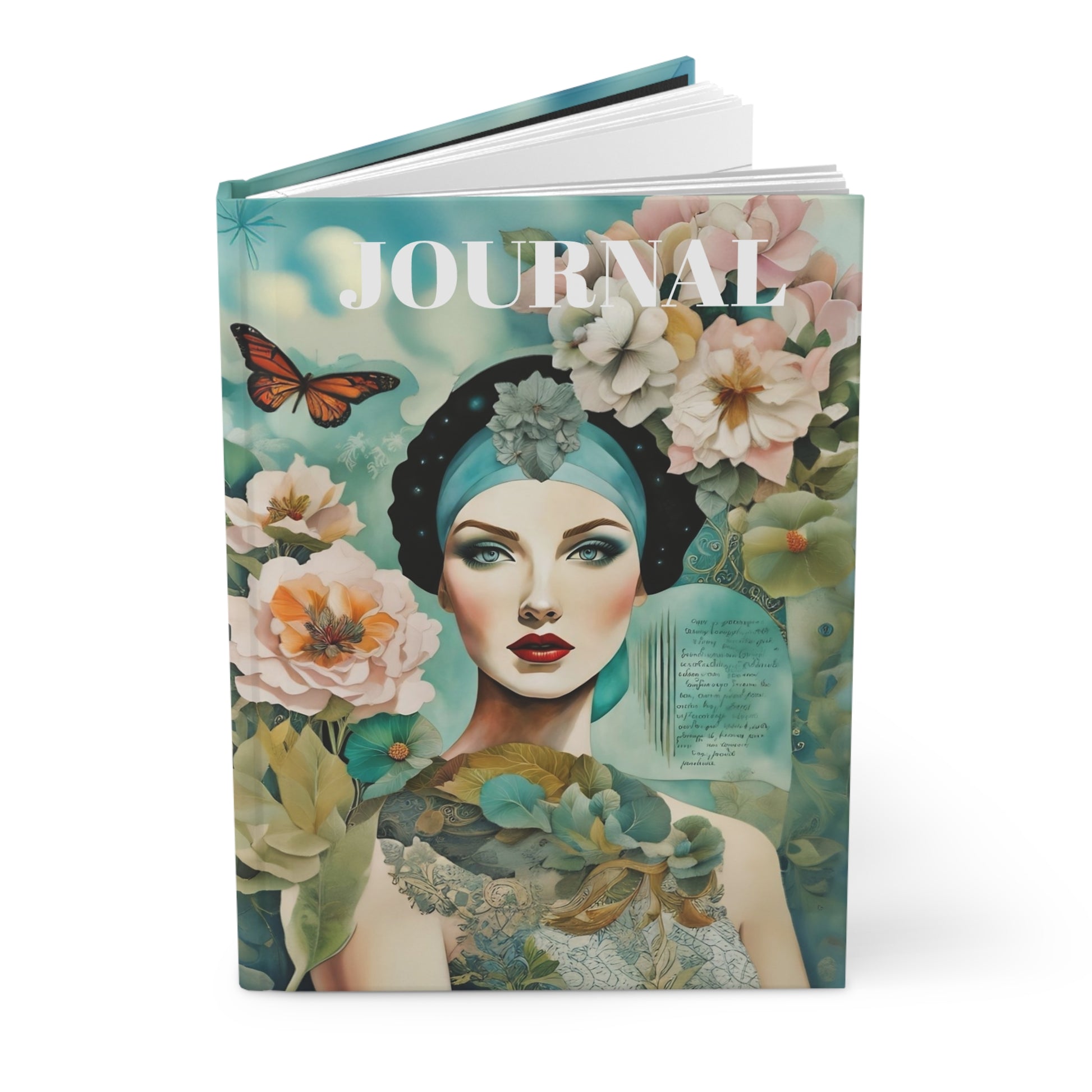 A Vintage Hollywood Beauty Journal in Collage art style with flowers, giving a classy and artistic vibe. Perfect for writers, artists, and anyone who loves a touch of vintage glamour. Ideal for gifting on birthdays, holidays, or special occasions.