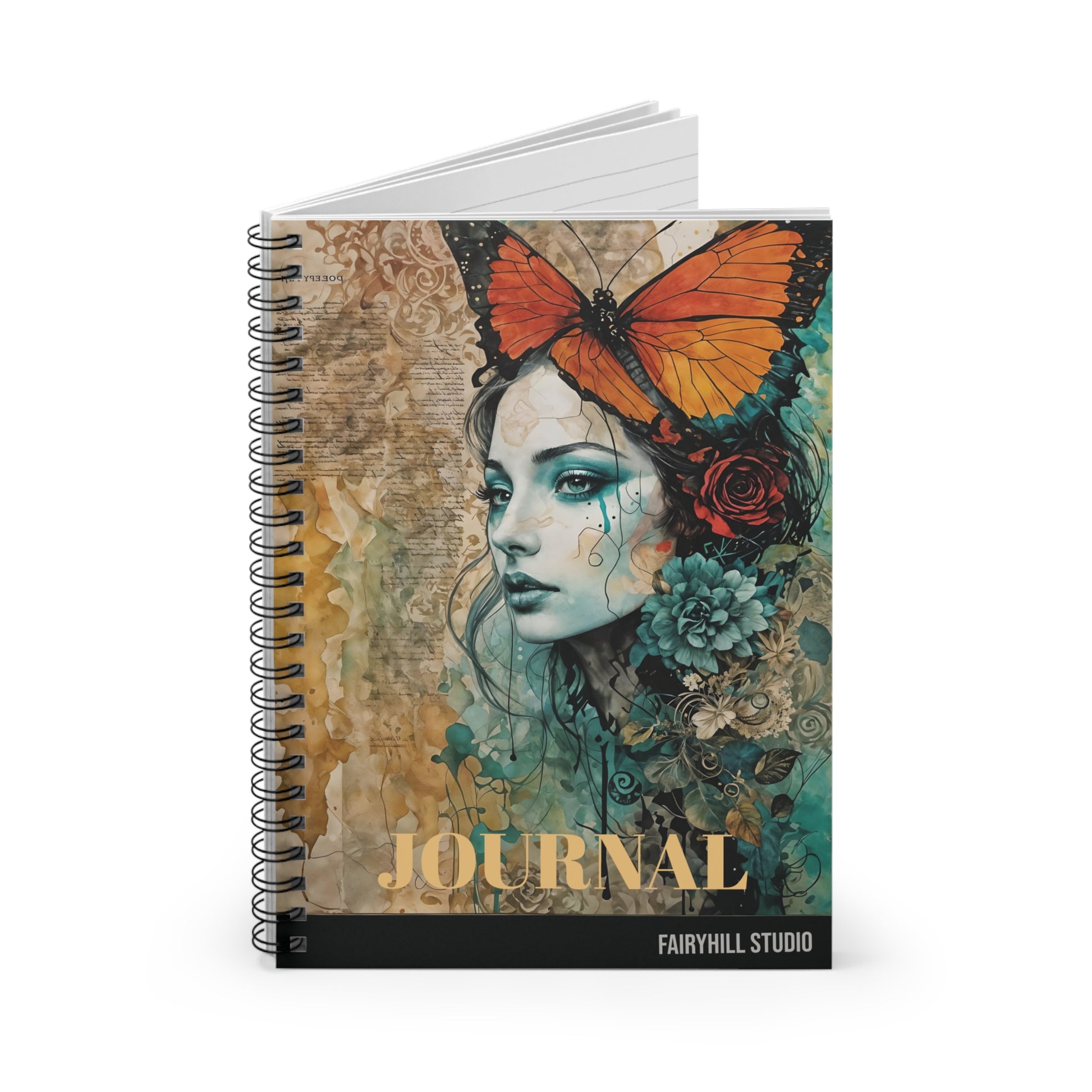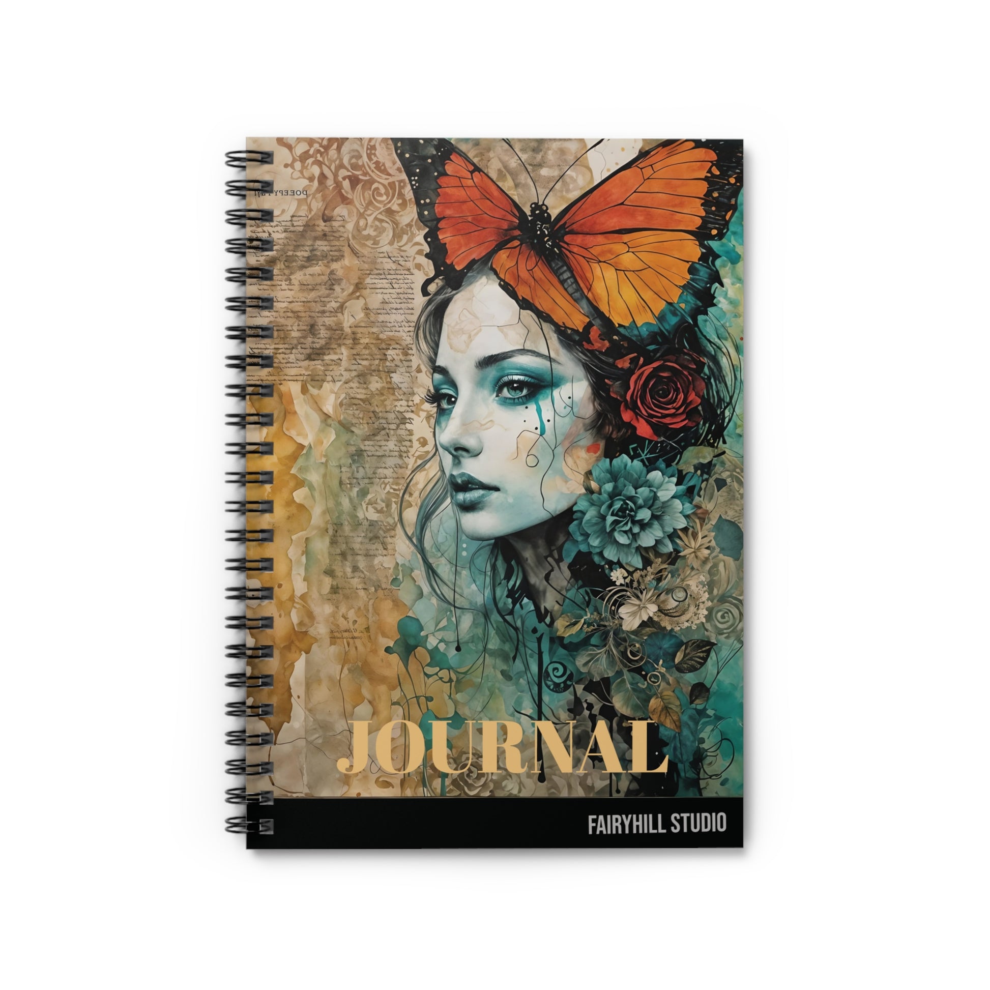 Personalized Journal Gift perfect for Her. This Spiral Notebook with ruled lines features a girl with a Butterfly design, giving a whimsical and elegant vibe. Ideal for journaling, note-taking, or doodling. Relevant for birthday gifts, Mother's Day, back-to-school, or any special occasion.