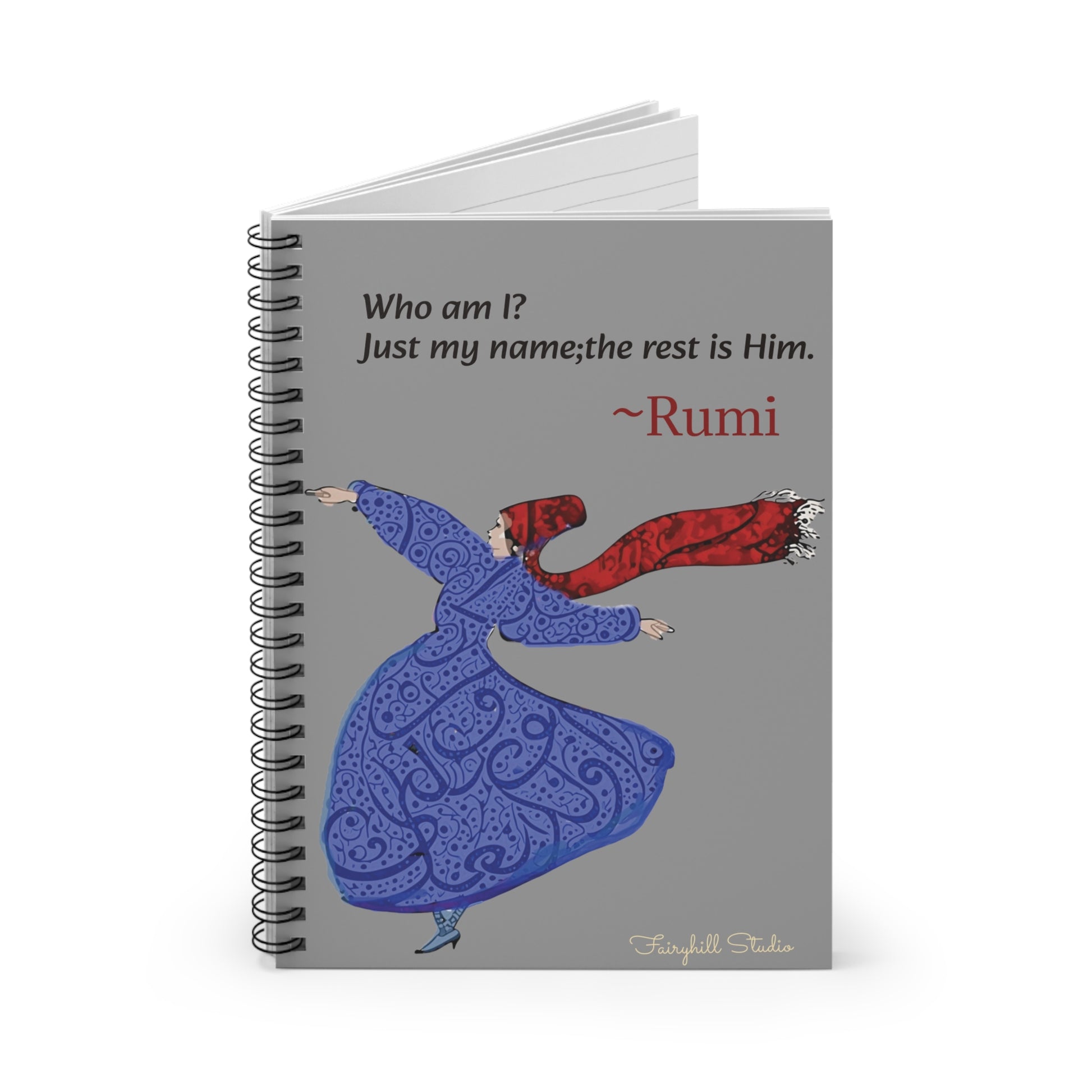 Ruled Line Spiral Notebook - Personalized Inspirational Rumi Quote by Fairyhill Studio. This notebook exudes elegance with its personalized inspirational quote and sturdy metal spiral binding. Ideal for writers, students, and anyone in need of inspiration. Perfect for back-to-school, birthdays, and as a thoughtful gift for loved ones.