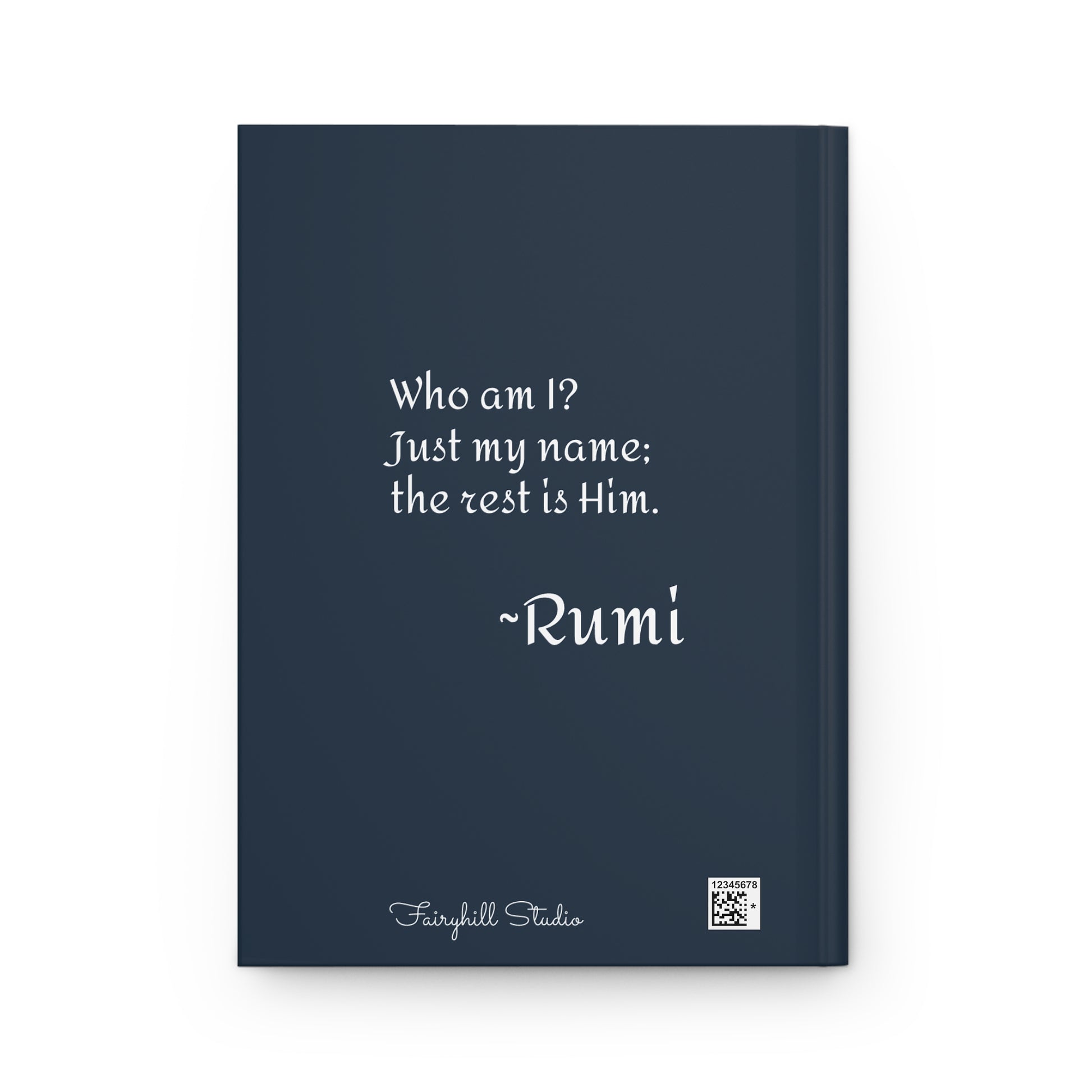 Rumi Spiritual Quote " Who am I? Just my name;the rest is Him".Hardcover Journal Art by Fairyhill Studio