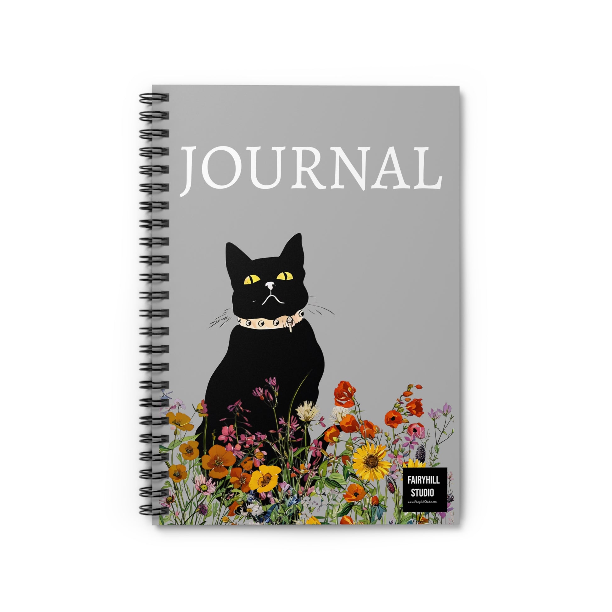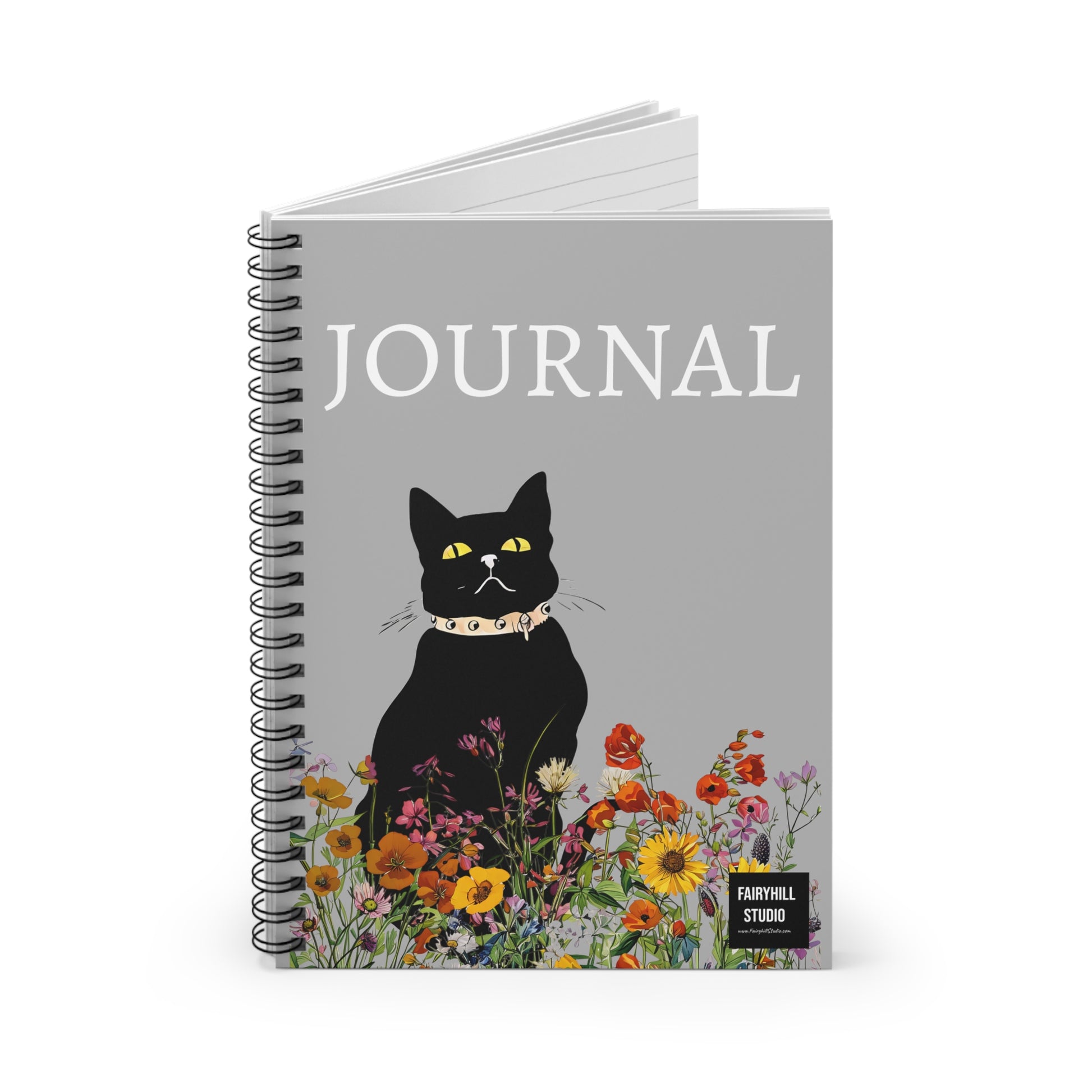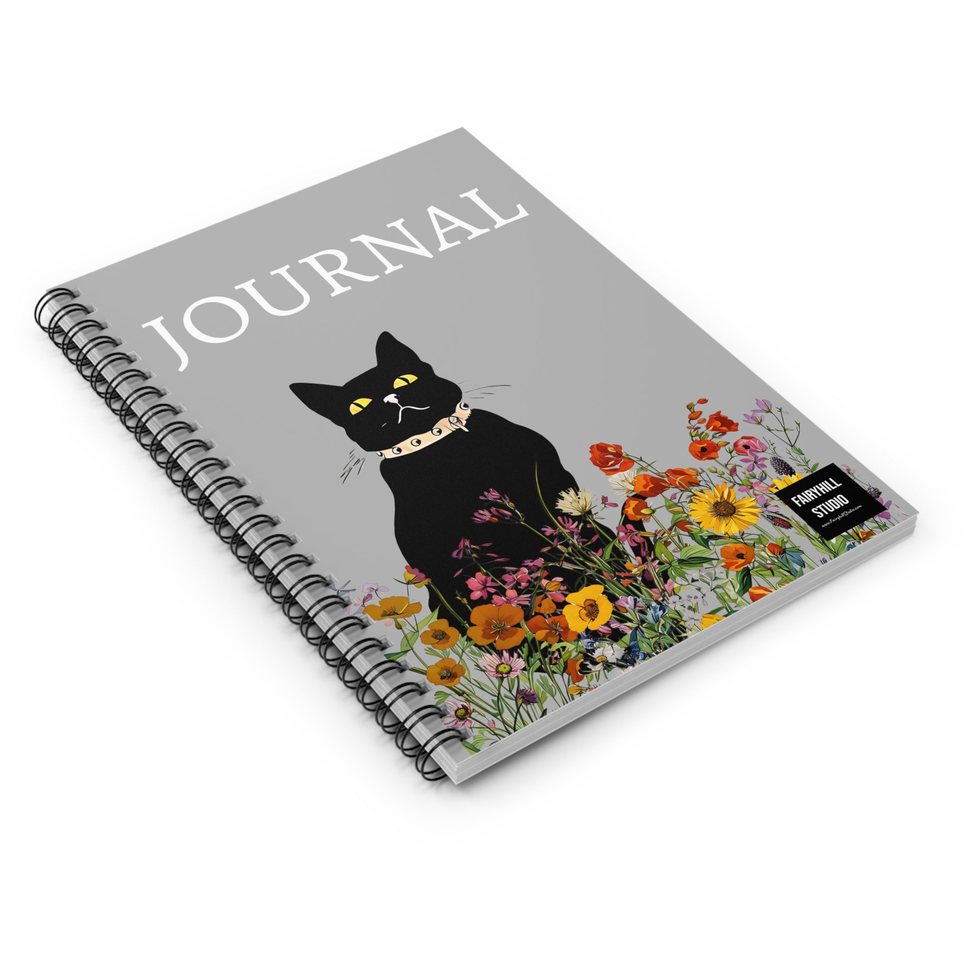 Spiral Notebook - Black Cat in Spring Flowers Art Journal, Personalized