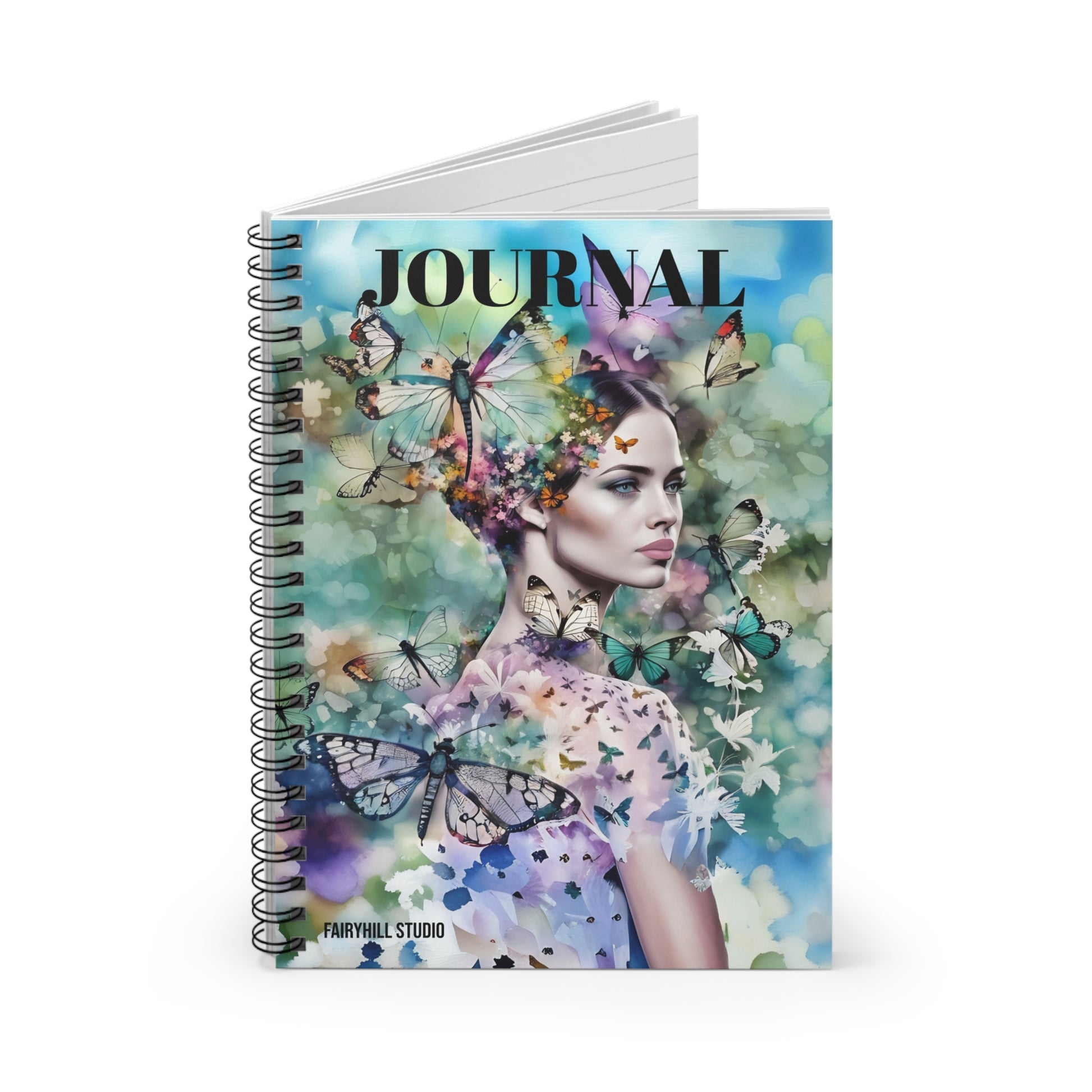 A beautifully designed notebook featuring a Water Fairy sitting on a rock in the middle of a lake, depicted in a watercolor art. This notebook is perfect for anyone who loves fantasy and nature-inspired designs. It can be a great addition to a student's school supplies or a writer's creative journal. Perfect for those who appreciate intricate artwork and magical vibes. Ideal for gifting on birthdays, holidays, or as a special occasion present.