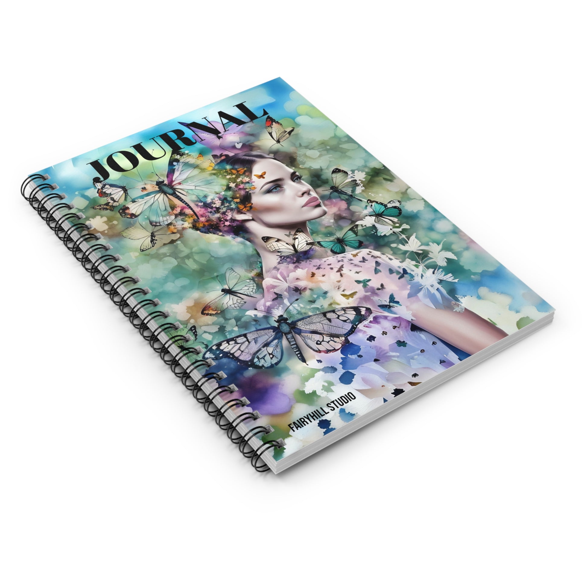 A beautifully designed notebook featuring a Water Fairy sitting on a rock in the middle of a lake, depicted in a watercolor art. This notebook is perfect for anyone who loves fantasy and nature-inspired designs. It can be a great addition to a student's school supplies or a writer's creative journal. Perfect for those who appreciate intricate artwork and magical vibes. Ideal for gifting on birthdays, holidays, or as a special occasion present.