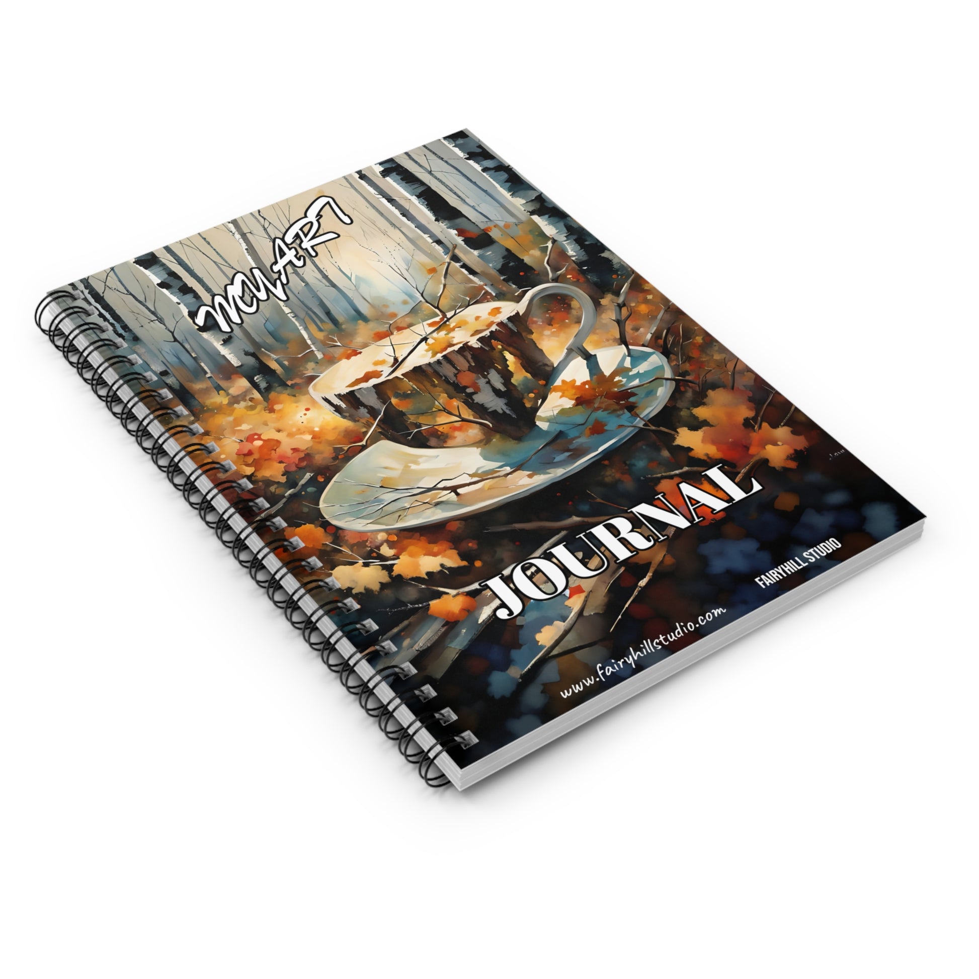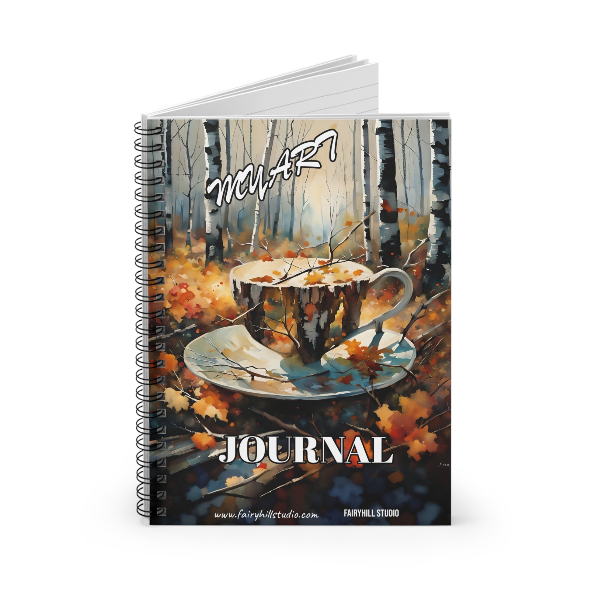 Fairy Hill Studio Coffee in Fall my art Journal, featuring a coffee cup in fall leaves art by Fairy Hill Studio. Perfect for coffee lovers and those who enjoy fall vibes. Ideal for journaling, note-taking, and sketching. Relevant for back to school, fall season, and coffee lovers.