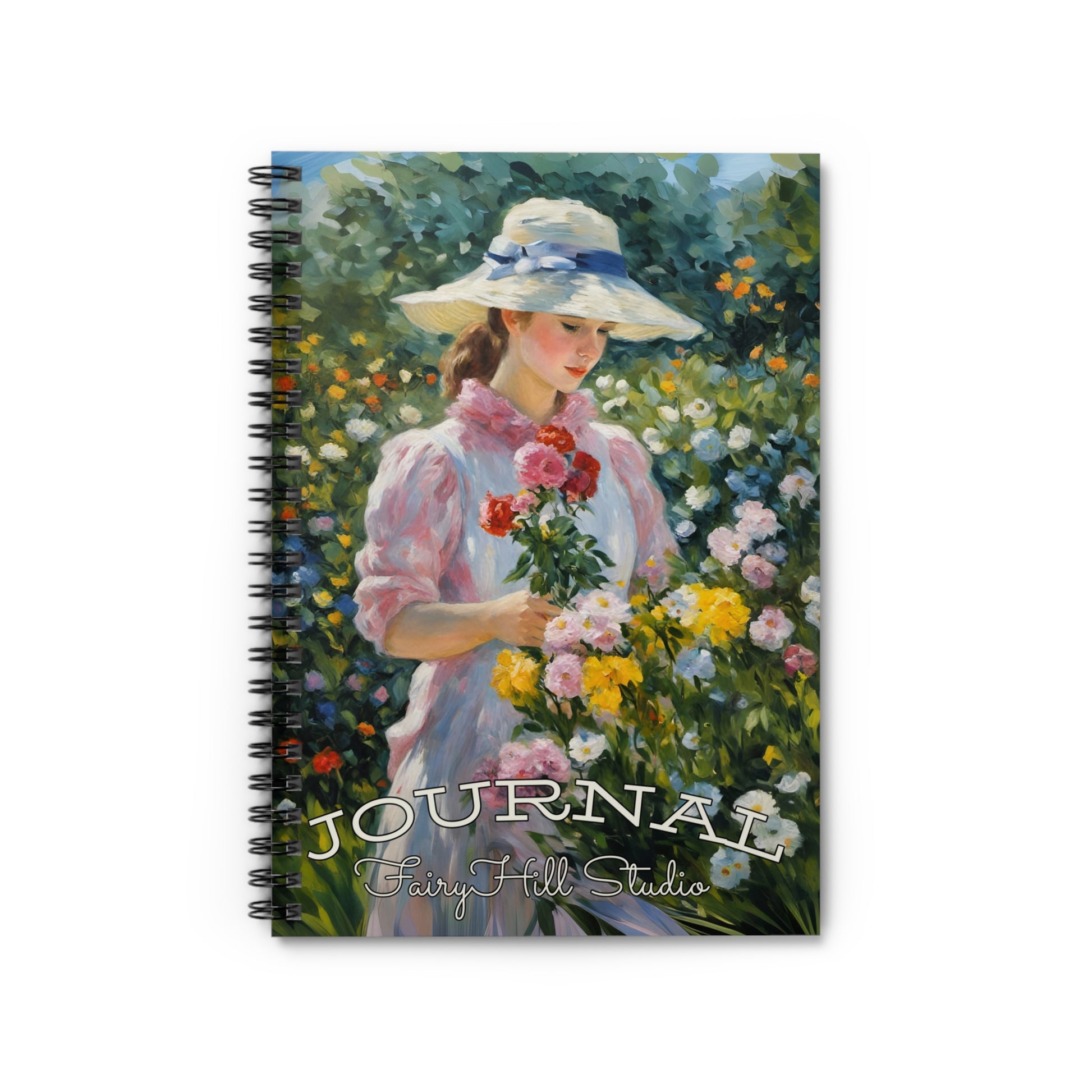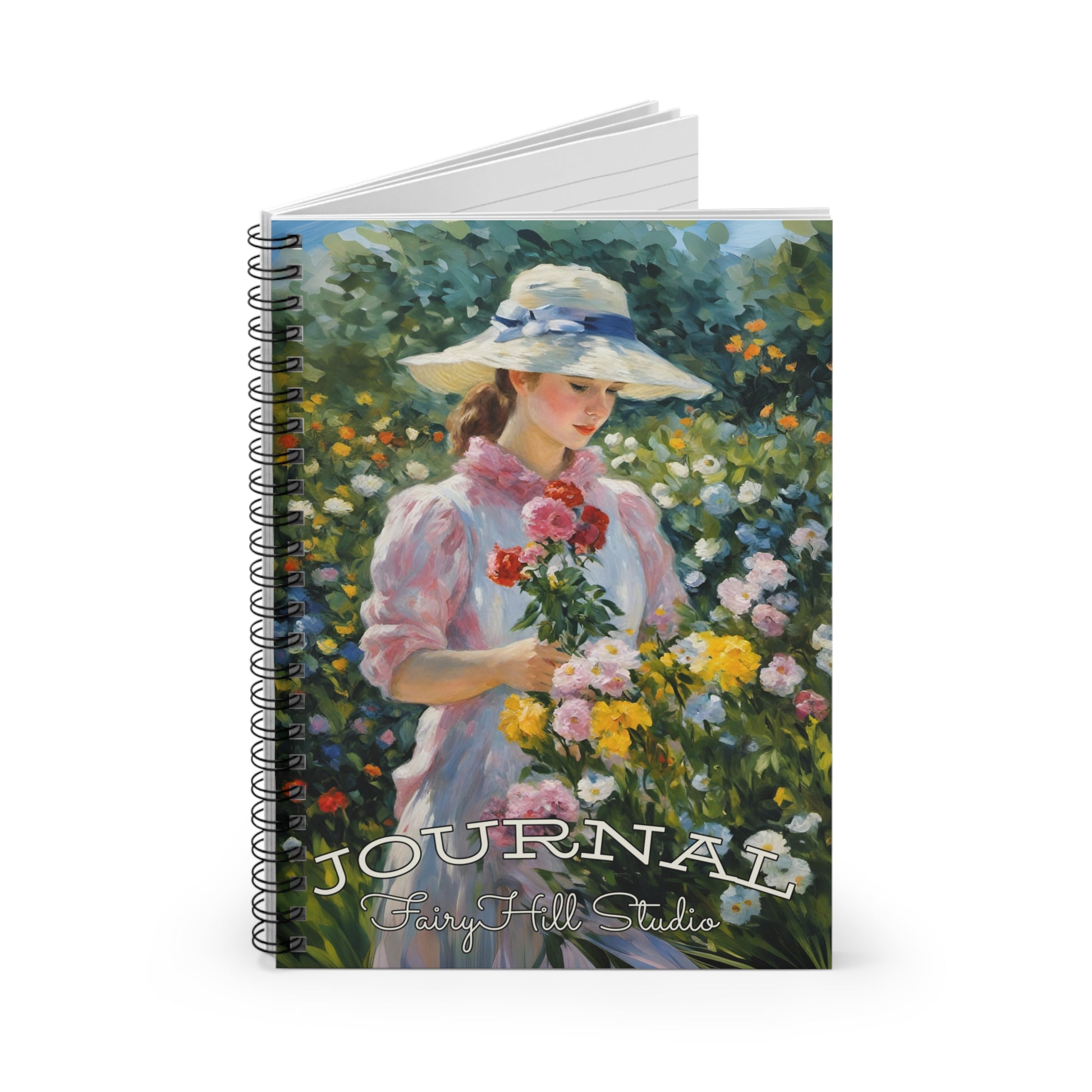 Spiral Notebook - Monet Style Art Girl with Flower Basket