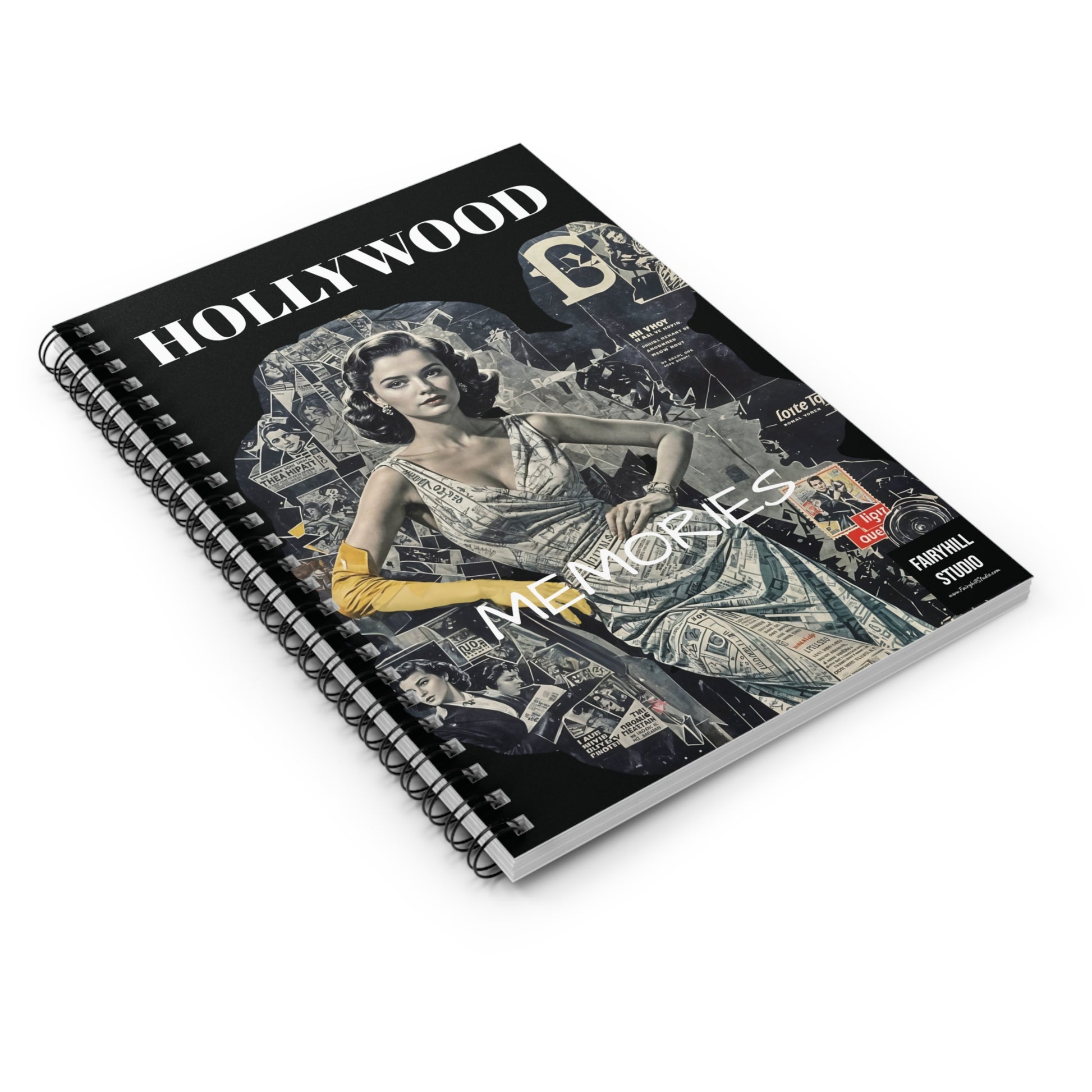 Vintage-inspired Old Hollywood movie star Spiral Notebook with ruled line art by Fairyhill studio. Perfect for writers and journalers who appreciate a touch of glam. Ideal for gifting on birthdays, holidays, or as a stylish accessory for work or school.