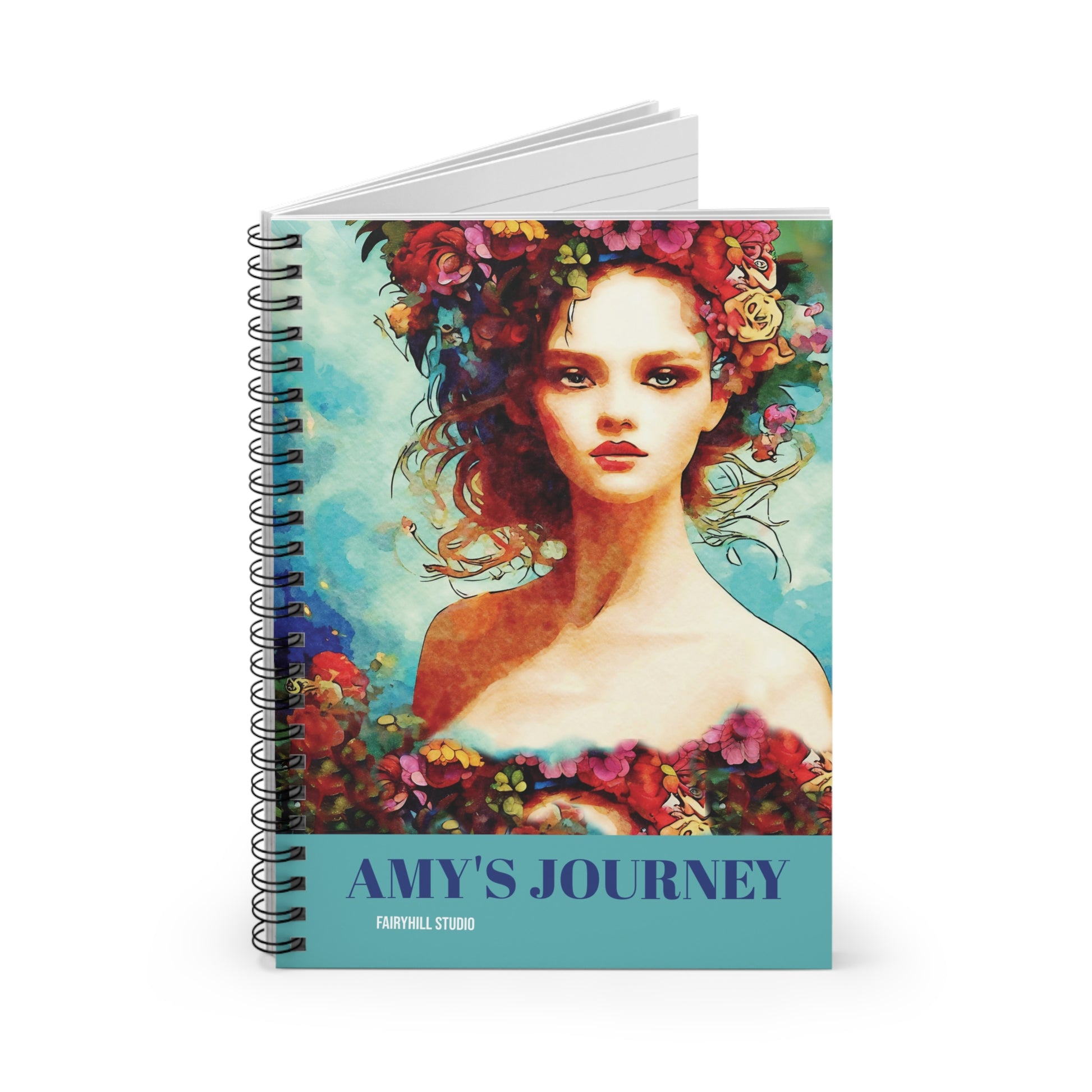 Customized Notebook with Summer vibes art featuring a lovely girl with blue aqua summer colors. Perfect for jotting down notes, journaling, or sketching. Ideal for students, artists, or anyone looking to add a touch of summer to their everyday writing. Relevant for back-to-school shopping, birthdays, and summer-themed events.