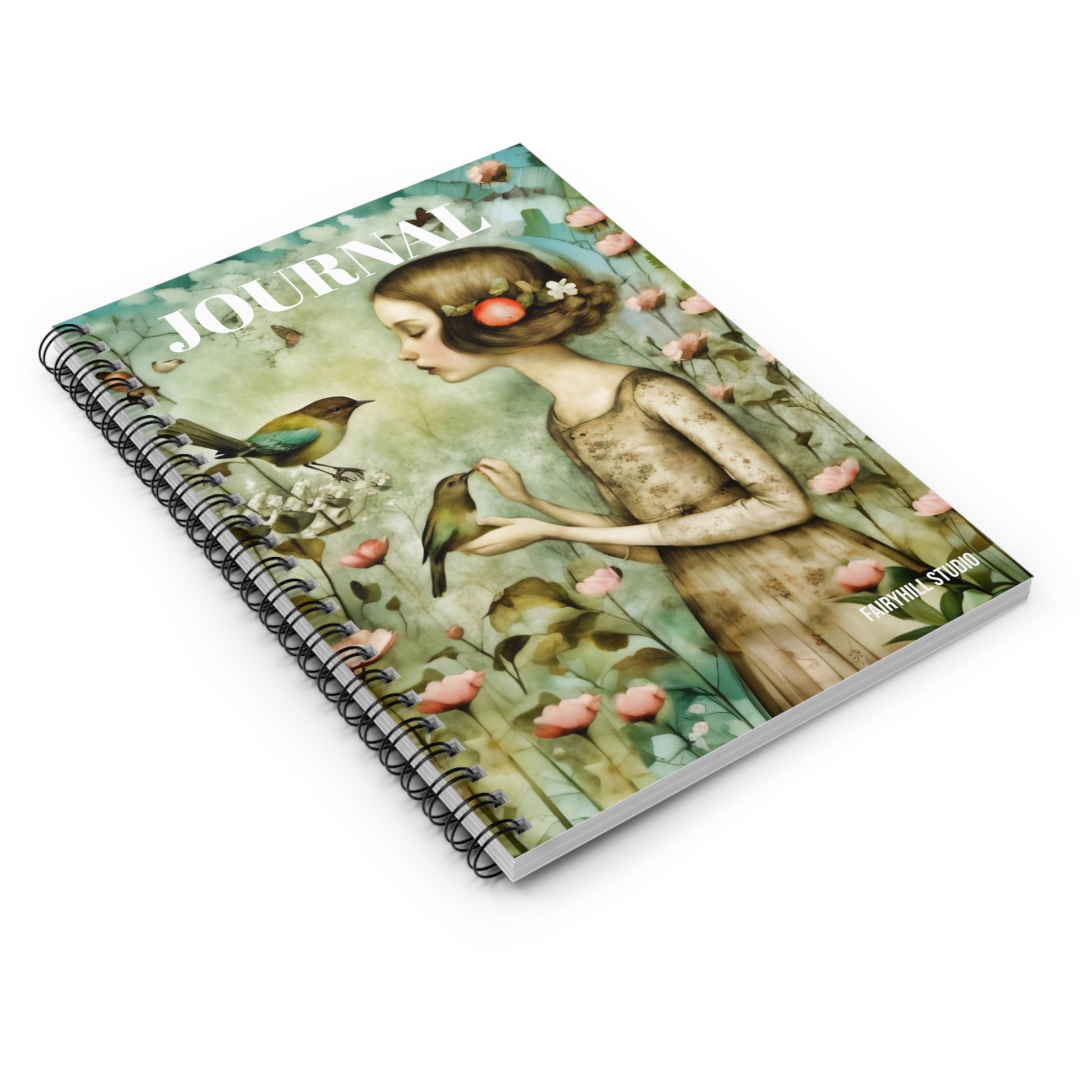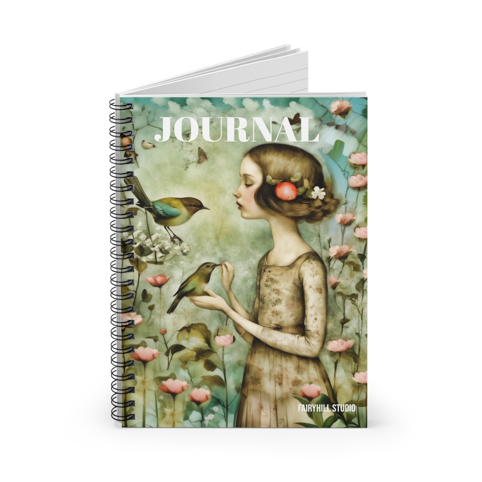 This beautiful notebook features a girl with songbirds, creating a serene and meditative atmosphere. Perfect for jotting down thoughts, ideas, and to-do lists. Ideal for nature lovers, artists, and those who enjoy journaling. Great for gifting on occasions like birthdays, Mother's Day, or as a back-to-school essential.
