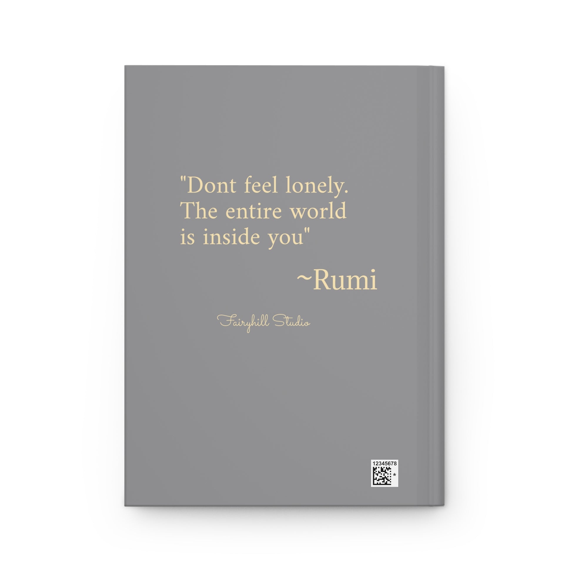 Hardcover spiritual Rumi quote Journal Matte featuring art by Fairyhill Studio, giving a serene and inspirational vibe to your writing. Perfect for journaling, note-taking, or sketching. Ideal for those who seek motivation and positivity in their daily life. Relevant for gift-giving during birthdays, holidays, and special occasions.