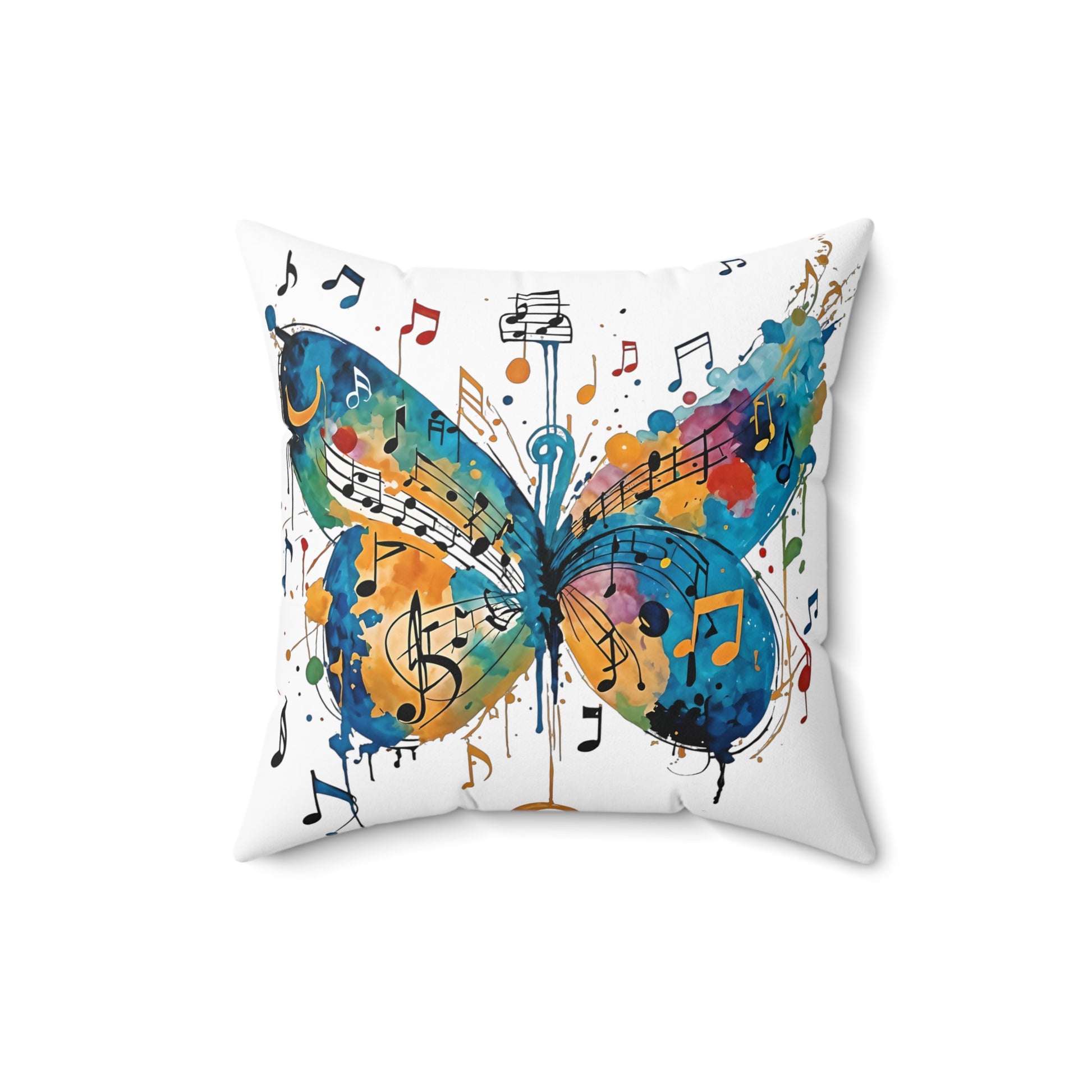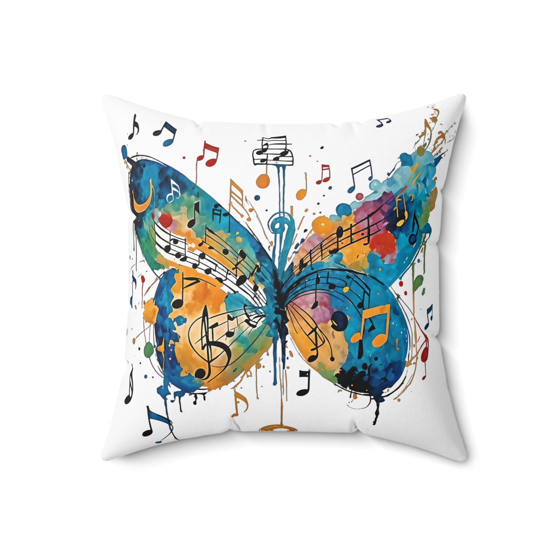 Colorful butterfly art on a Spun Polyester Square Pillow by Fairyhill Studio. This pillow gives a whimsical and artistic vibe to any living space, perfect for nature lovers and those who appreciate unique designs. Ideal for adding a pop of color and personality to a sofa, chair, or bed. Great gift for birthdays, Mother's Day, or housewarming.