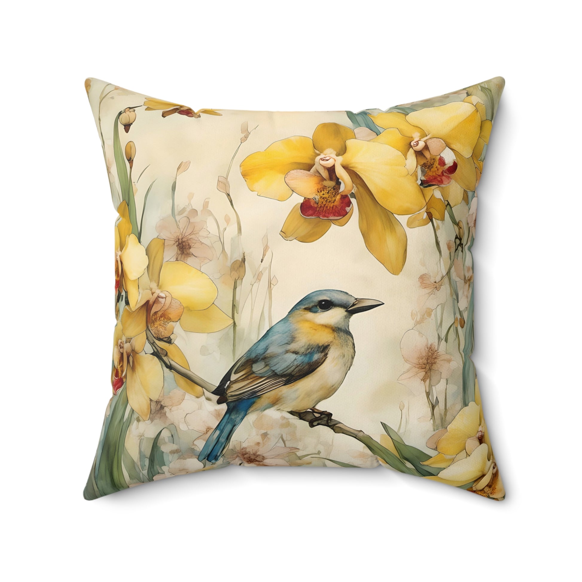 Spun Polyester Square yellow bird Pillow