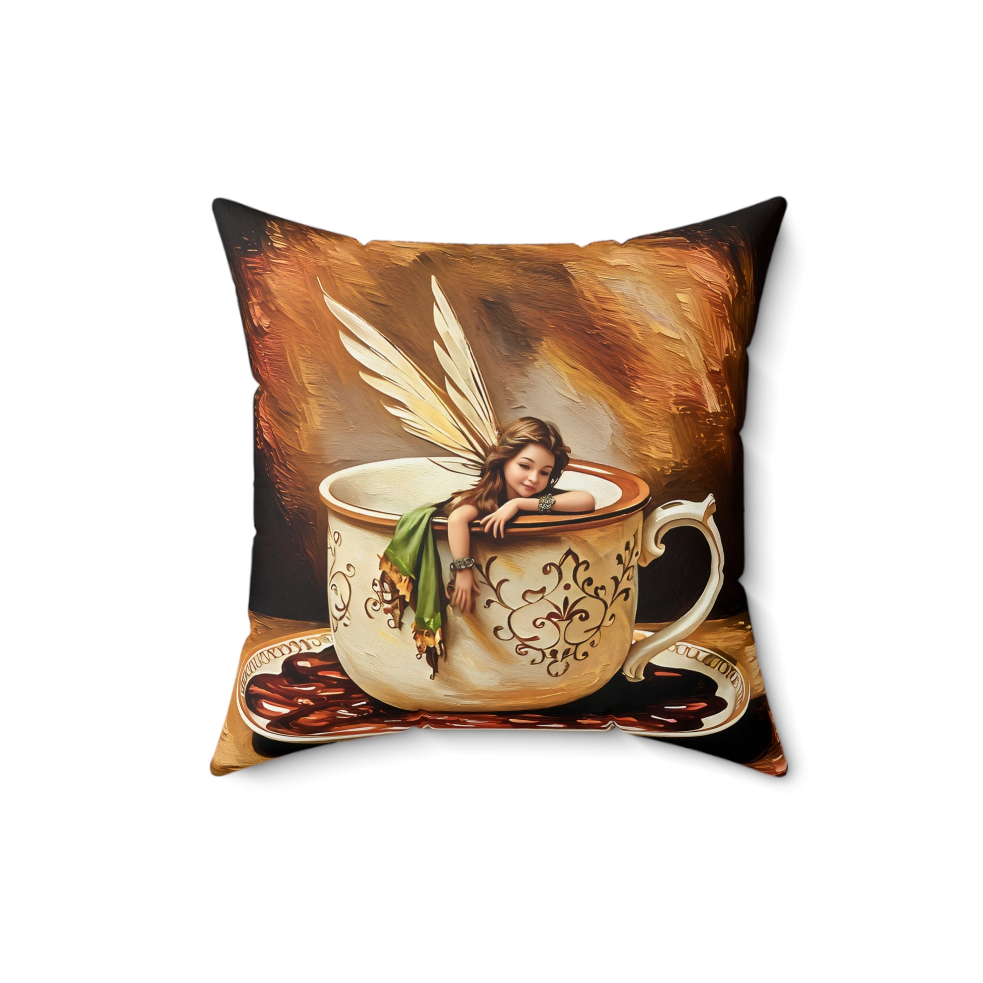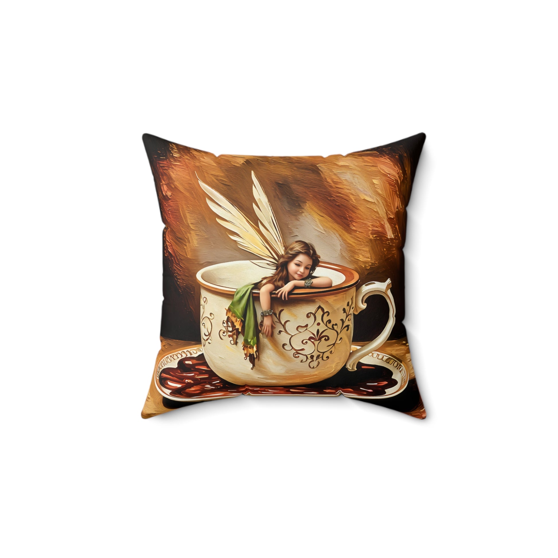 Square Pillow - Coffee Cup Fairy Spun Polyester Pillow for Coffee and Hot Chocolate Lovers