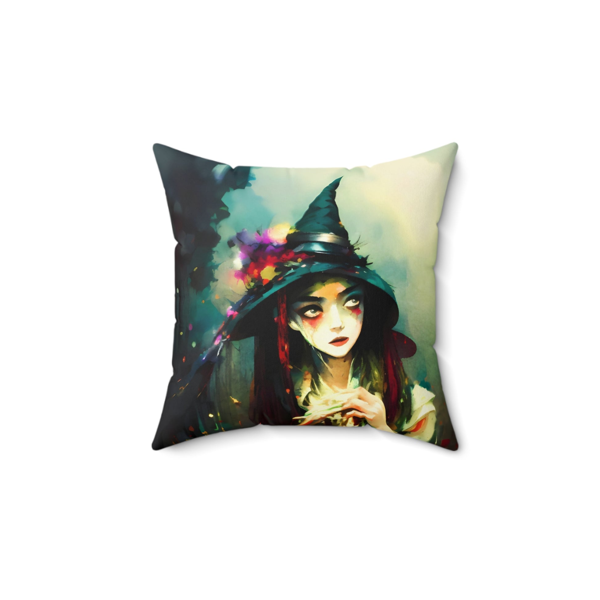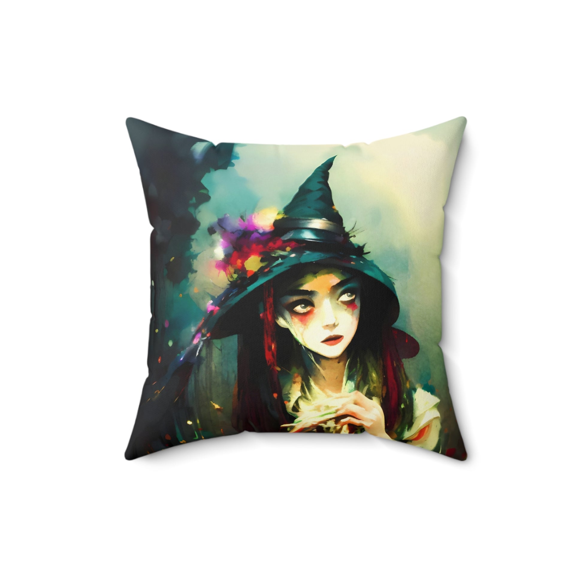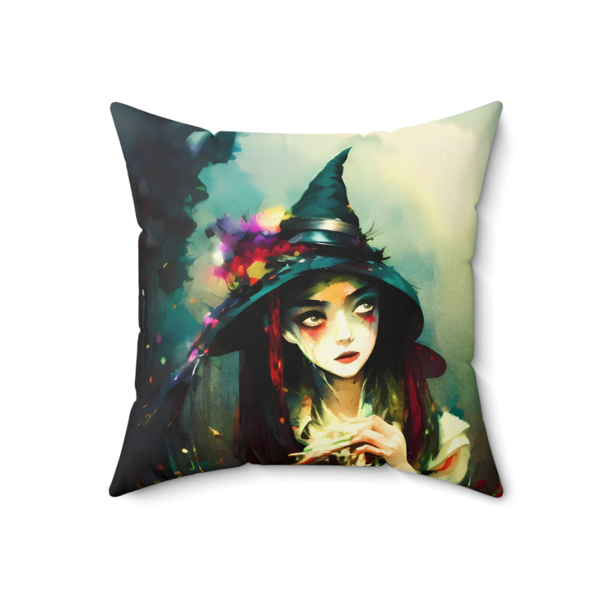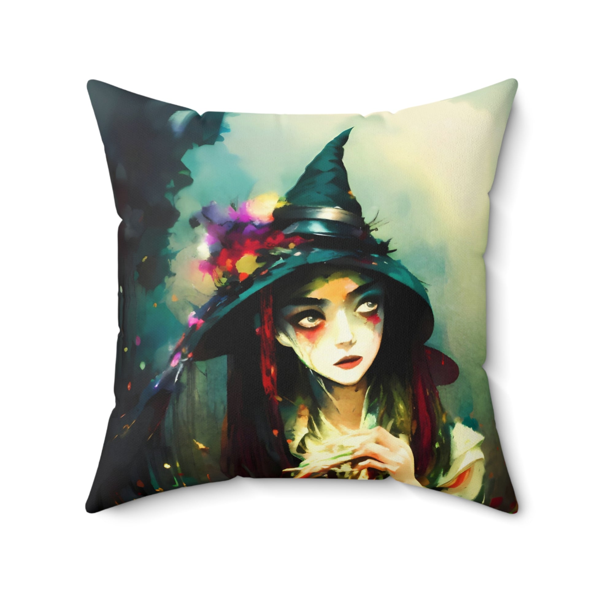 Square Pillow - Colorful Halloween Witch Pillow by Fairyhill Studio