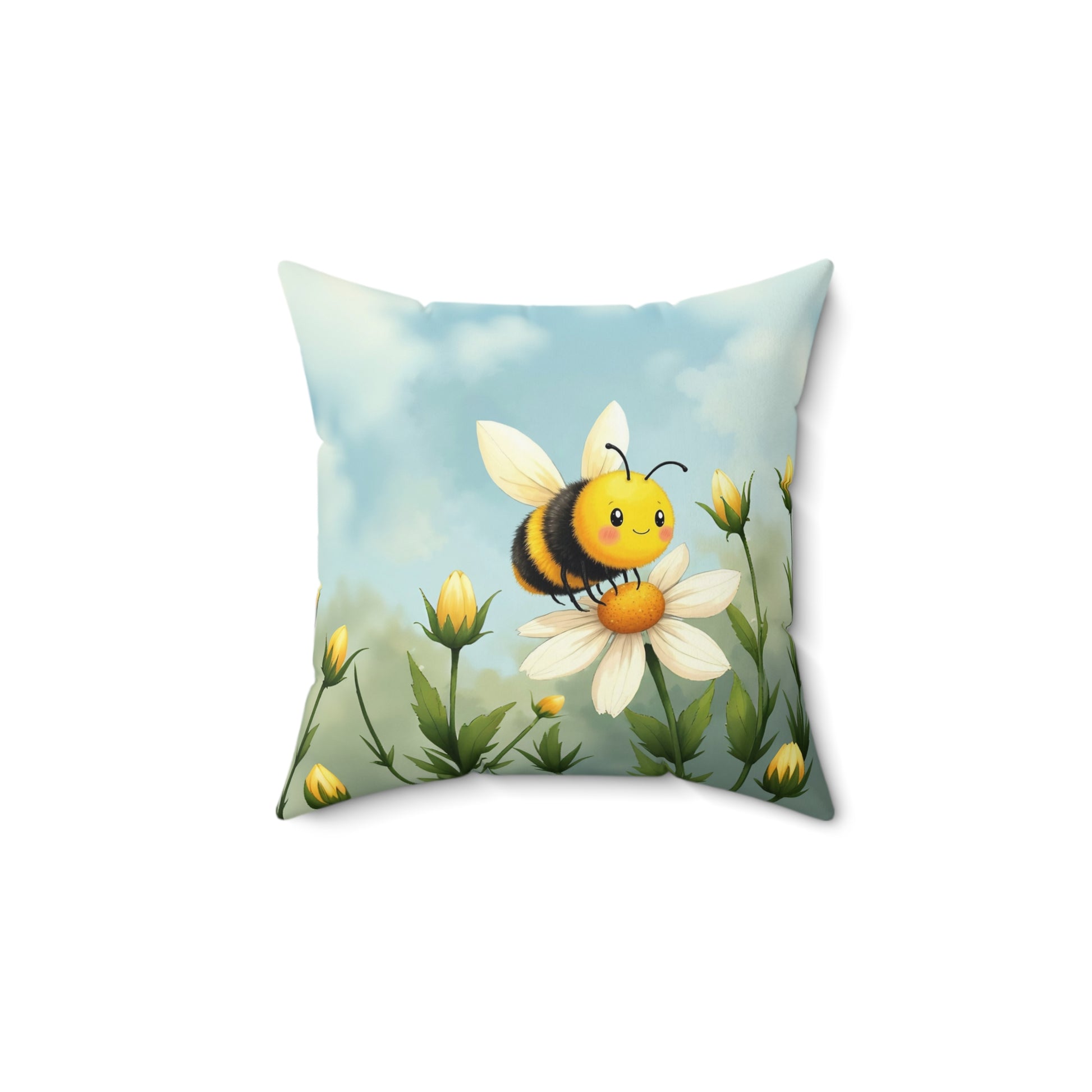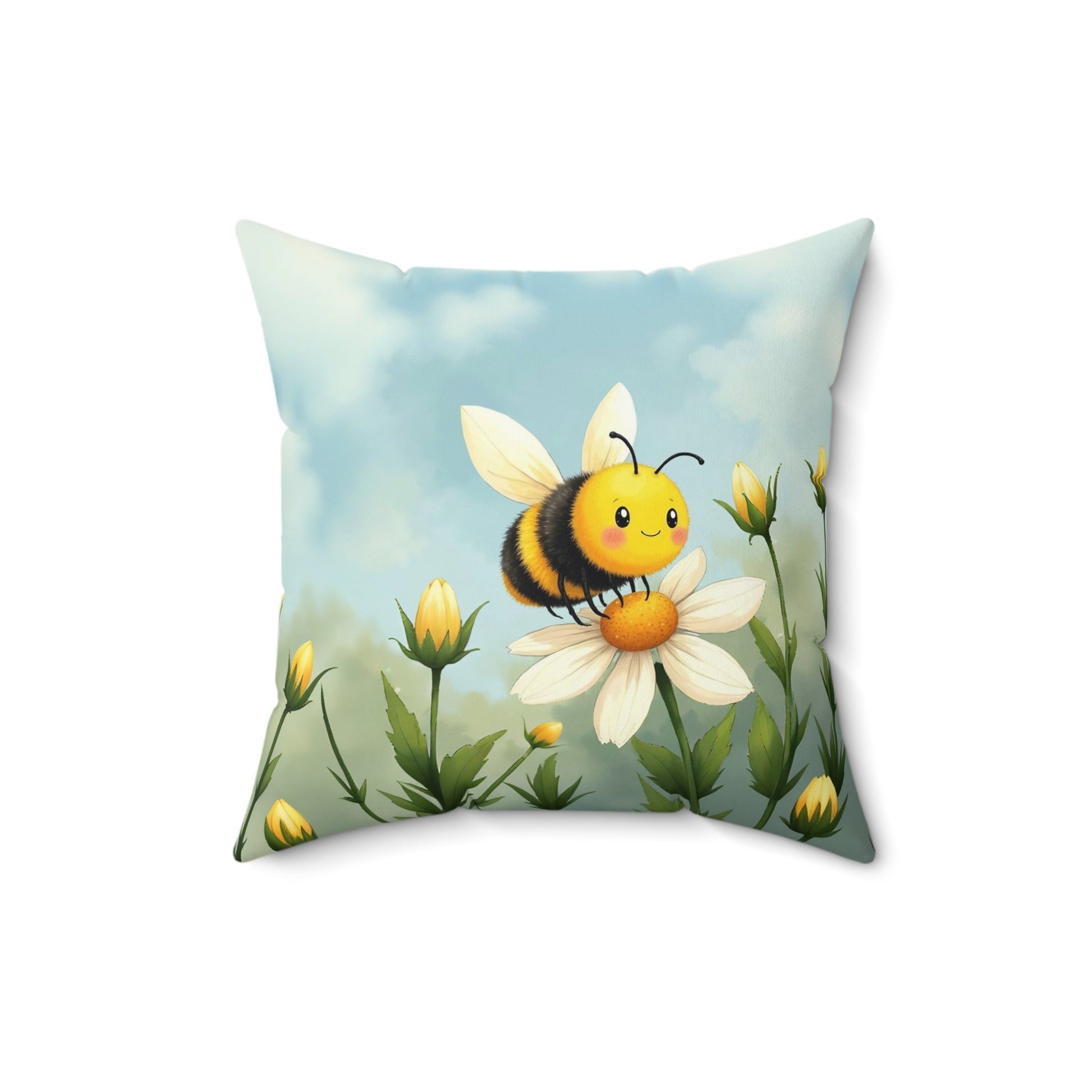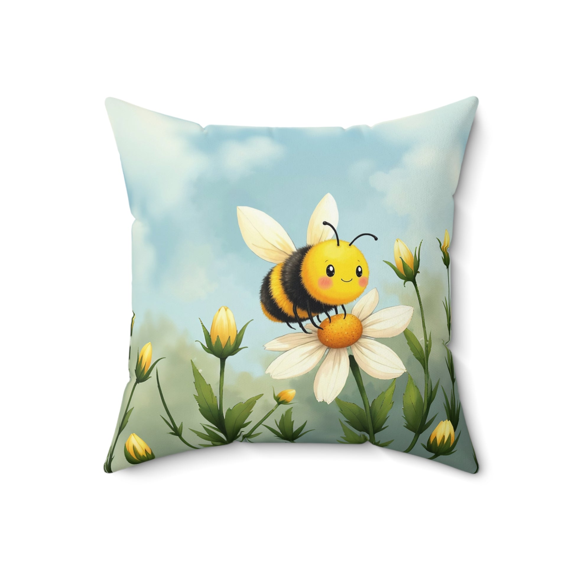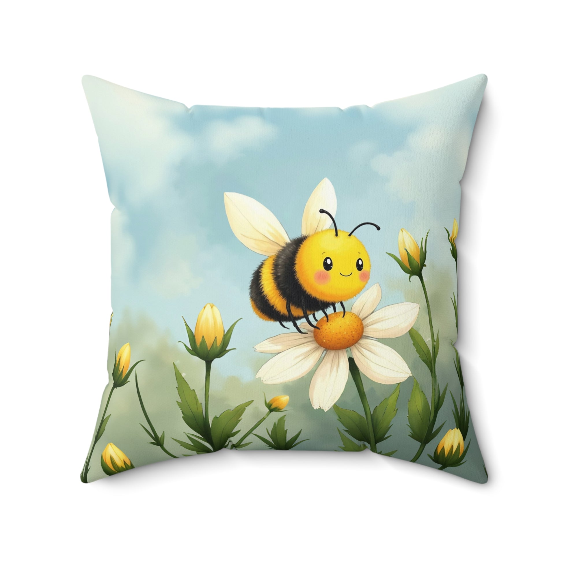 Square Pillow - Cute Honey Bee in Flower Garden by Fairyhill Studio
