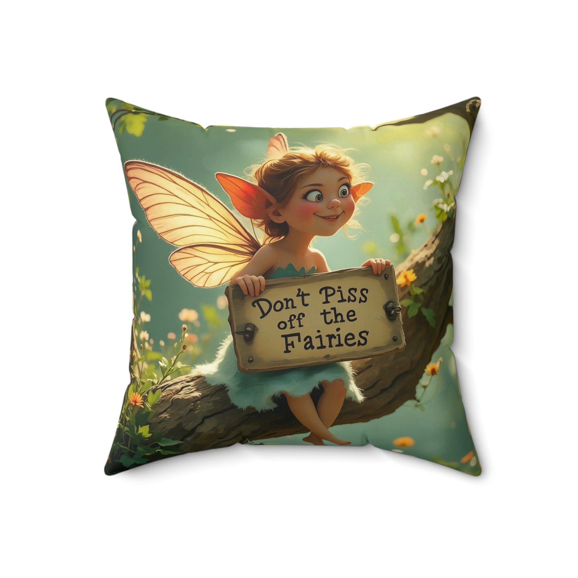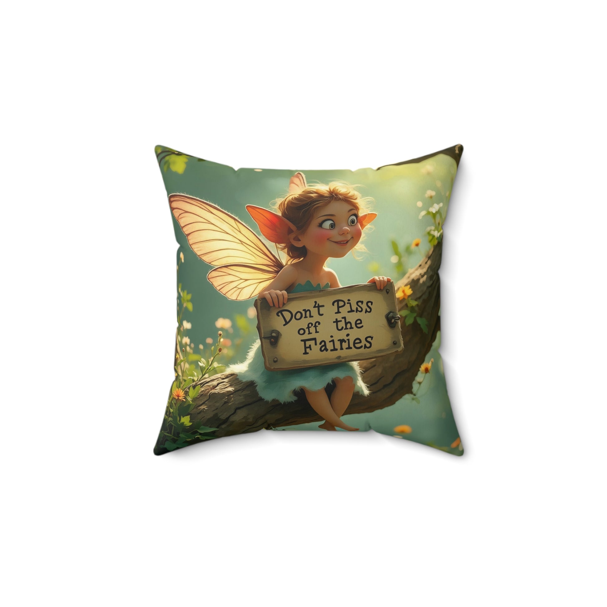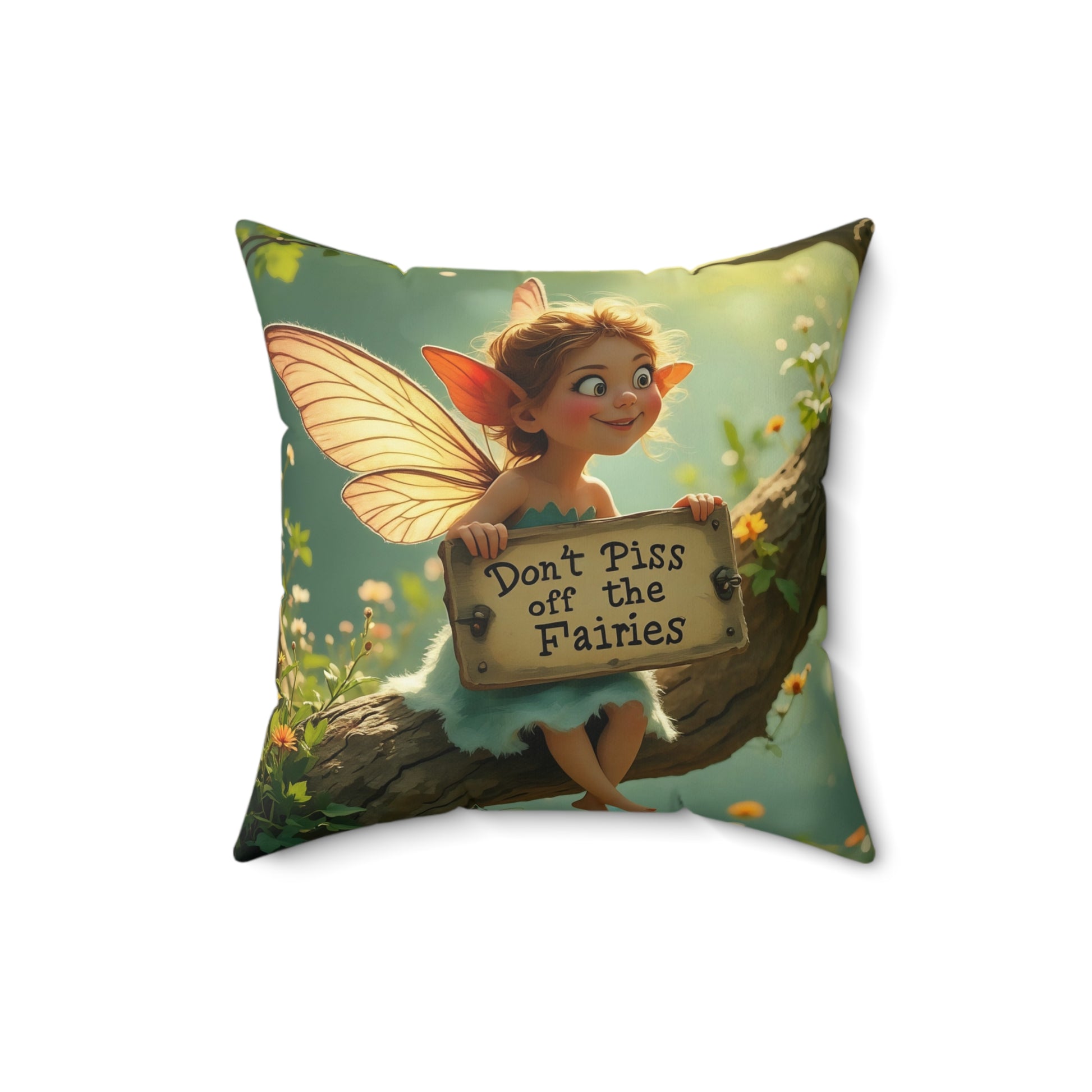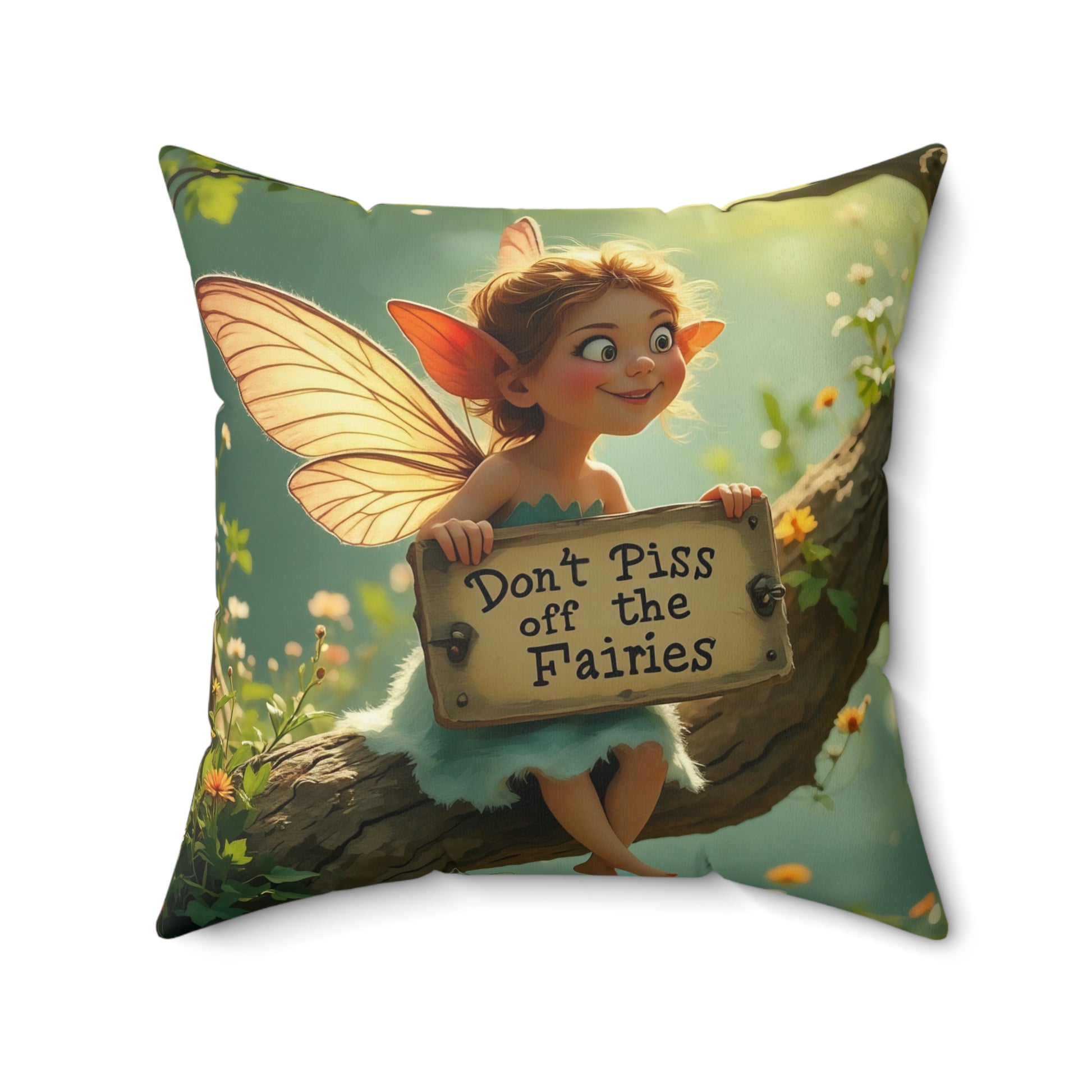Square Pillow - "Don't Piss Off the Fairies" Fairy Art Quote by Fairyhill Studio