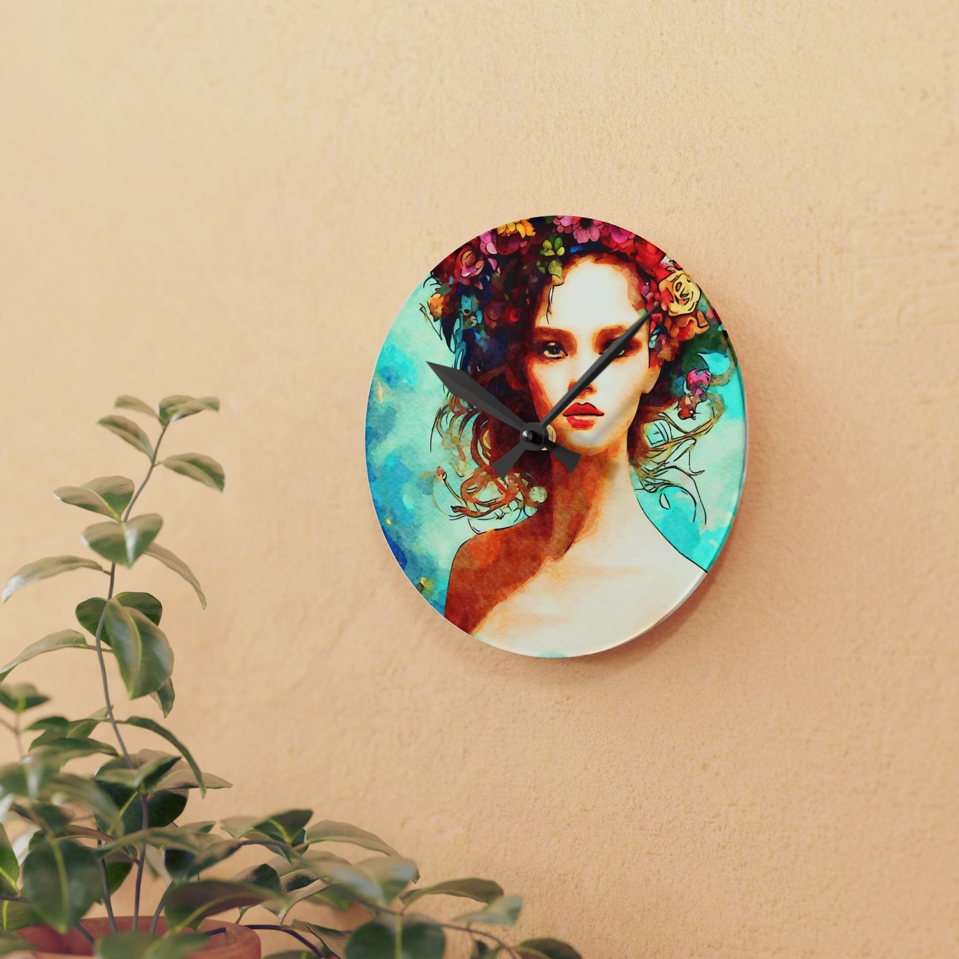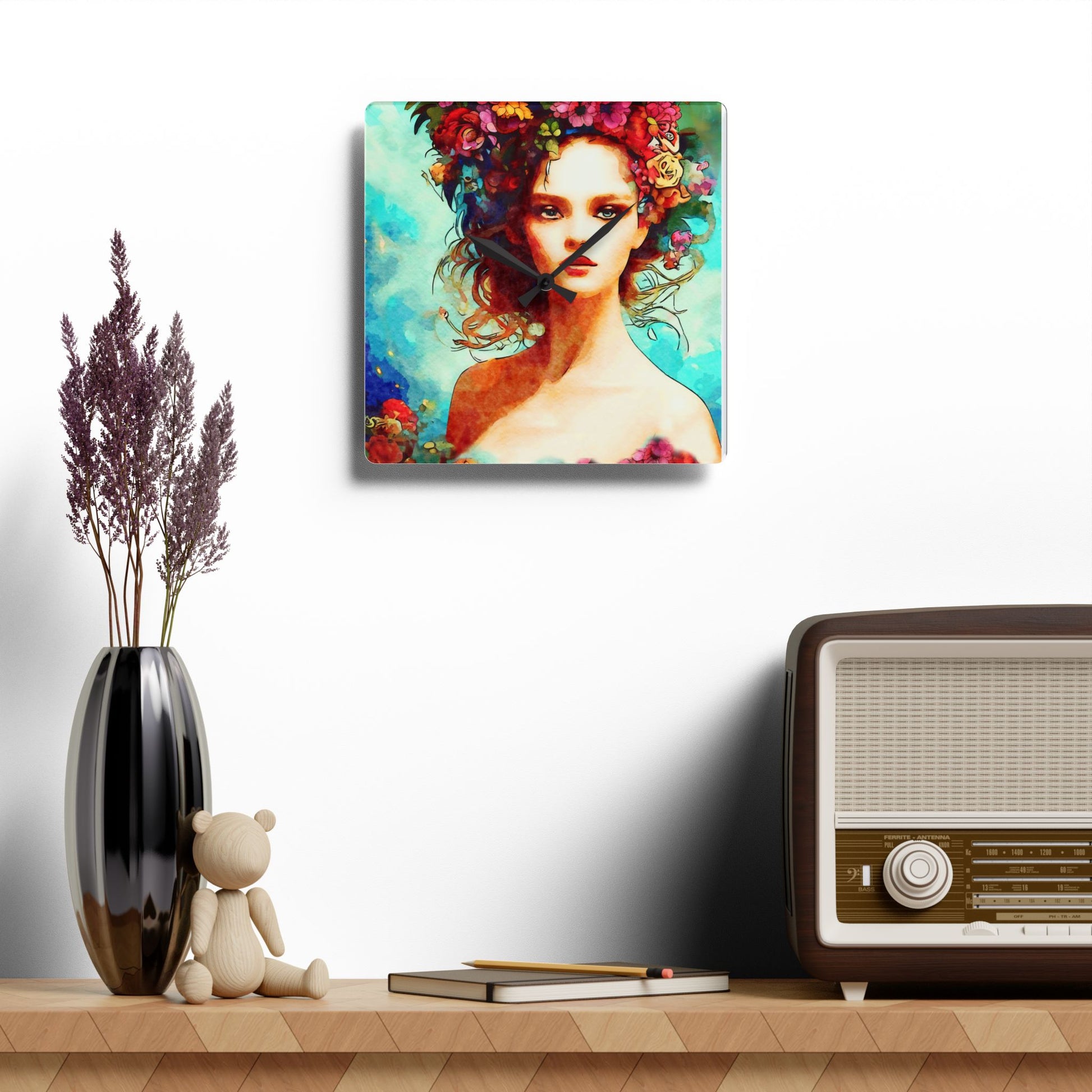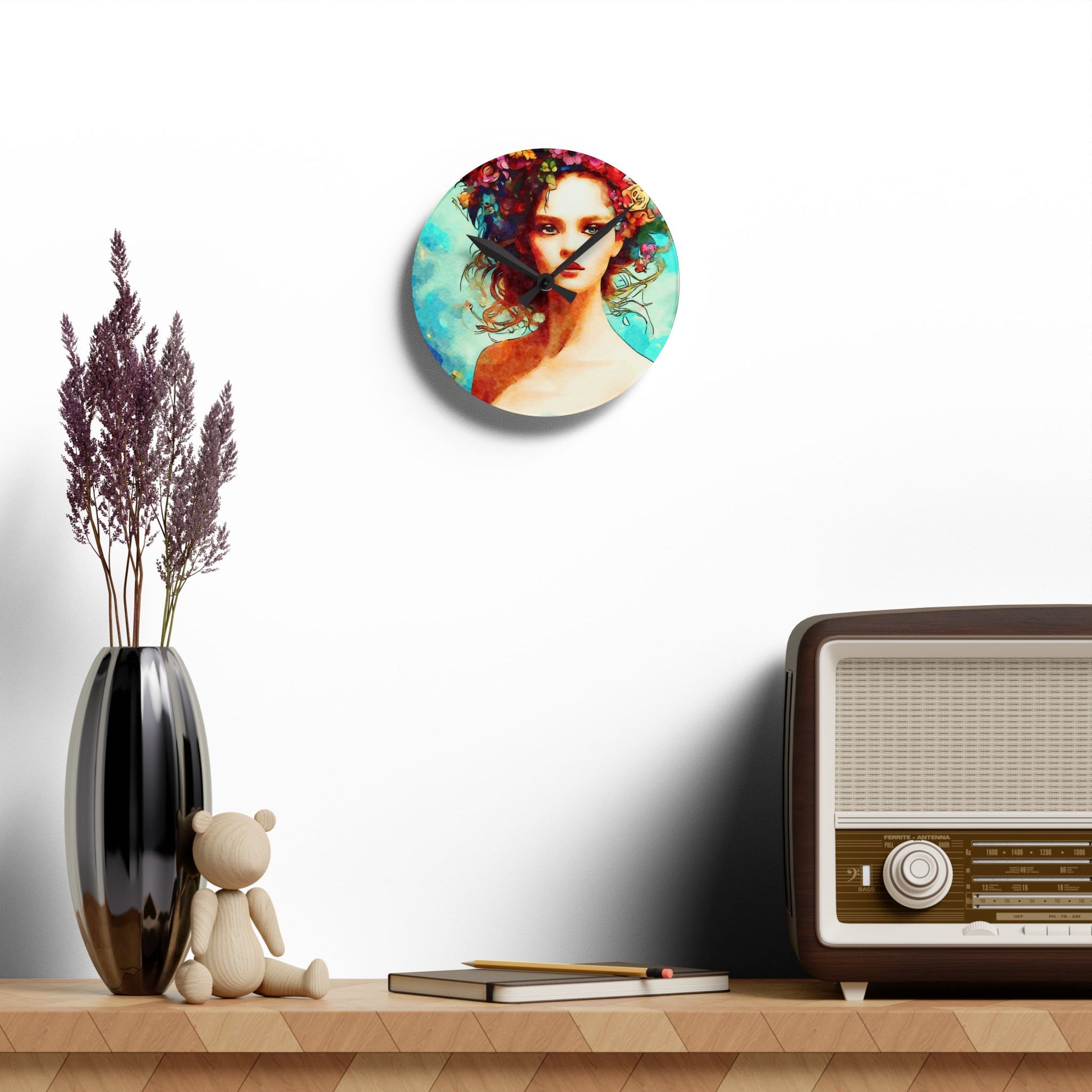 This vibrant Wall Clock featuring Summer Vibes Art is perfect for adding a pop of color to any room in your home. The lovely girl on an aqua summer background gives off a relaxing and cheerful vibe, making it ideal for those who love summer or beach-themed decor. It's relevant for holidays like Memorial Day, Fourth of July, or simply to brighten up your space year-round.