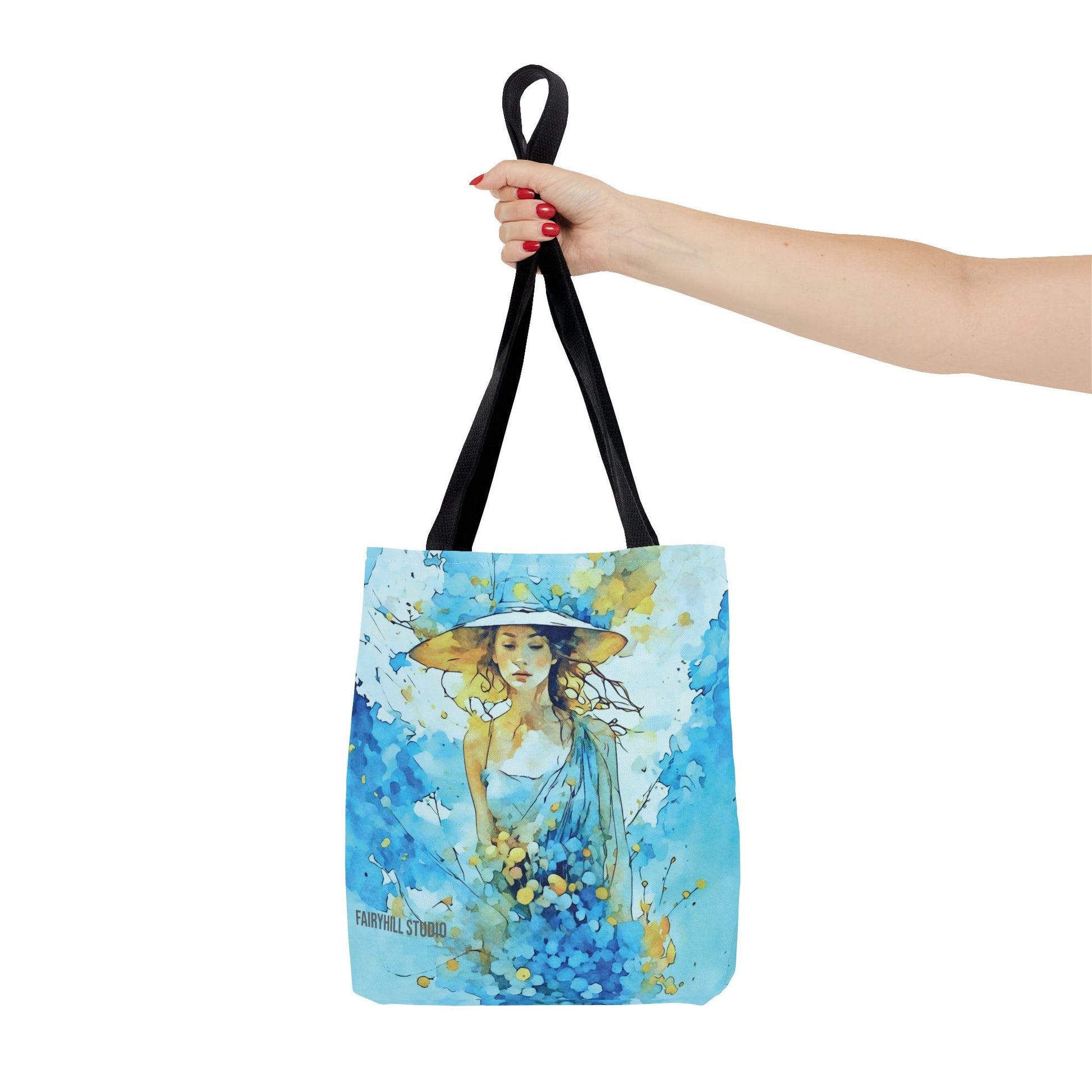 Artistic Tote Bag - The Girl in Blue Summer Art Design