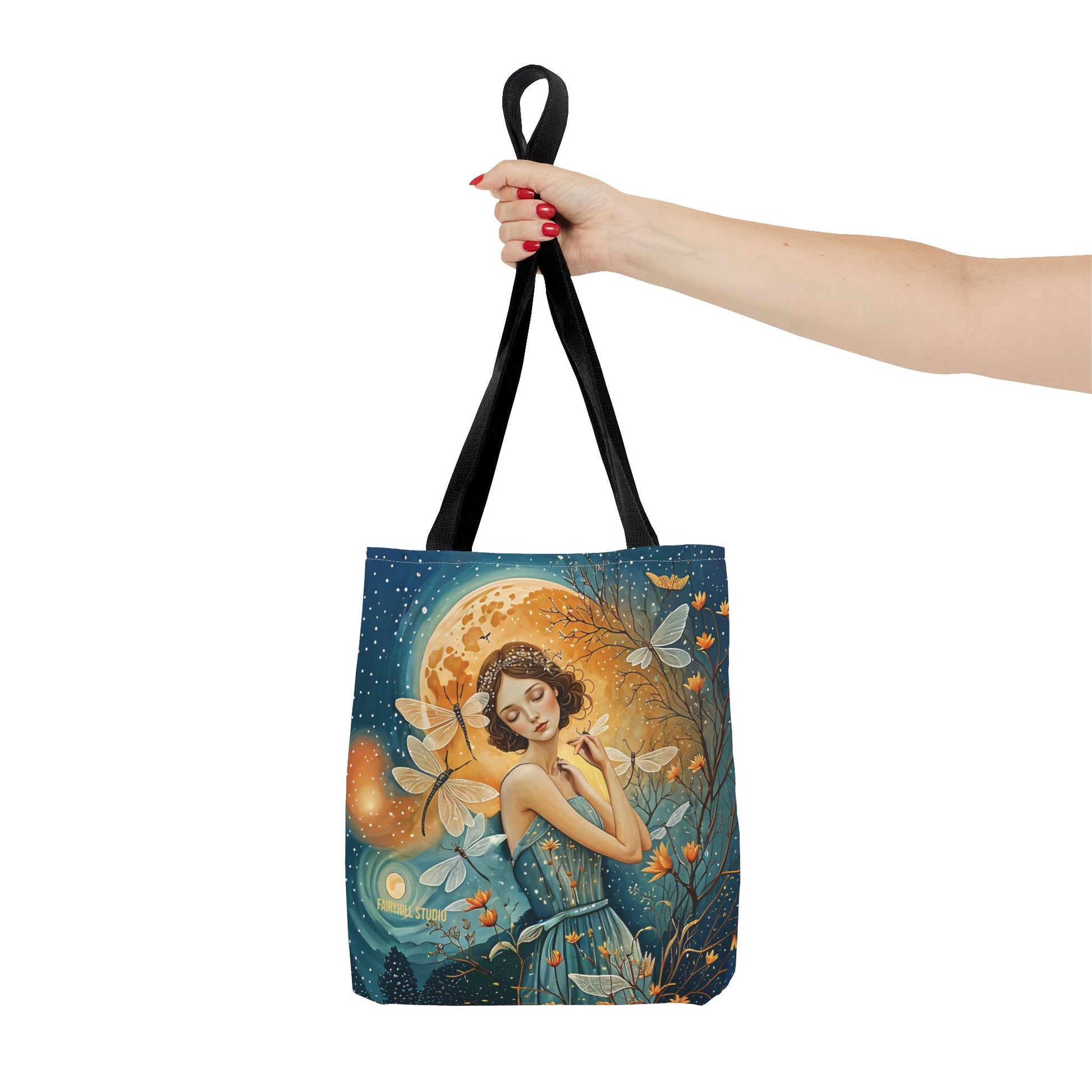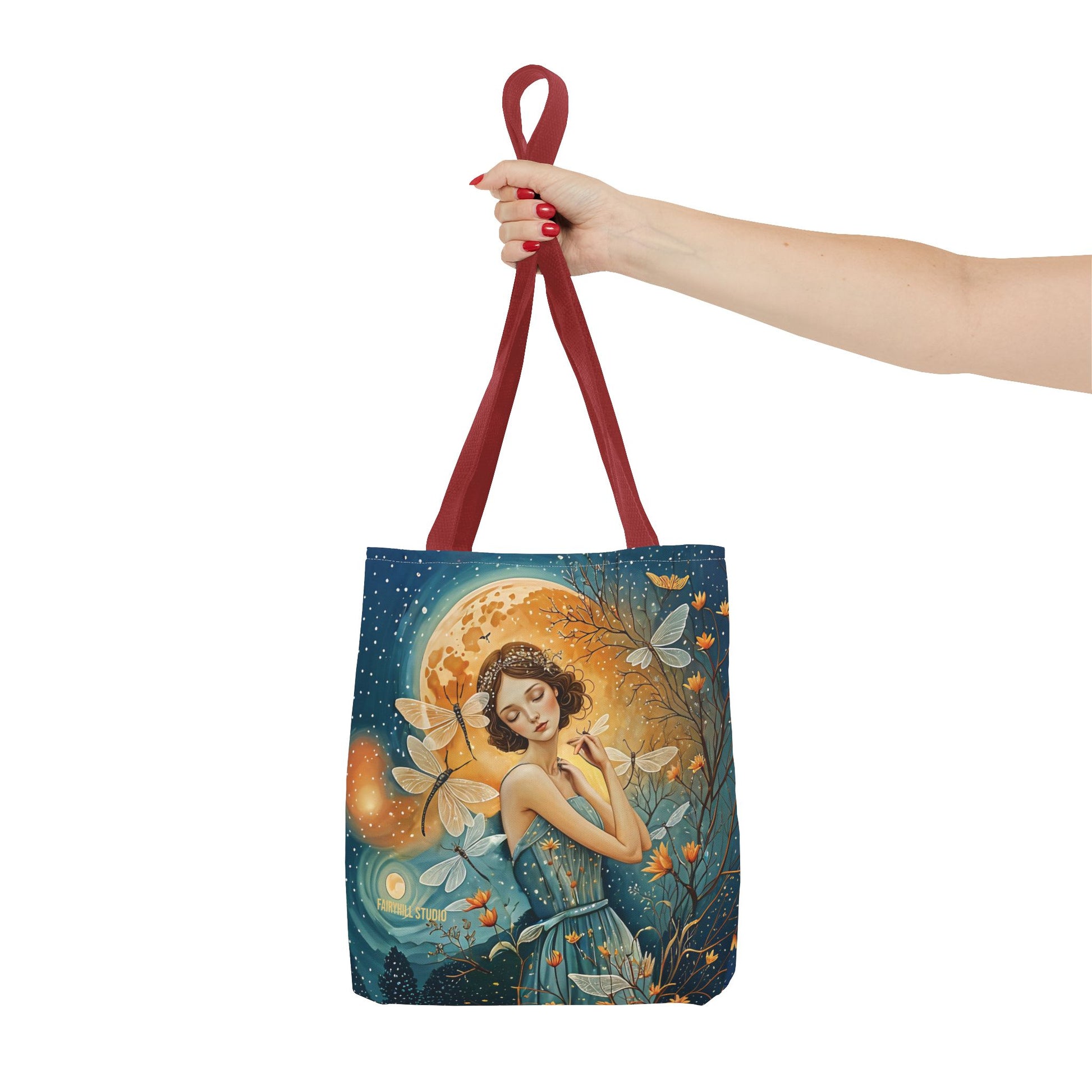 Dragonfly Tote Bag with Girl Art by Fairyhill Studio