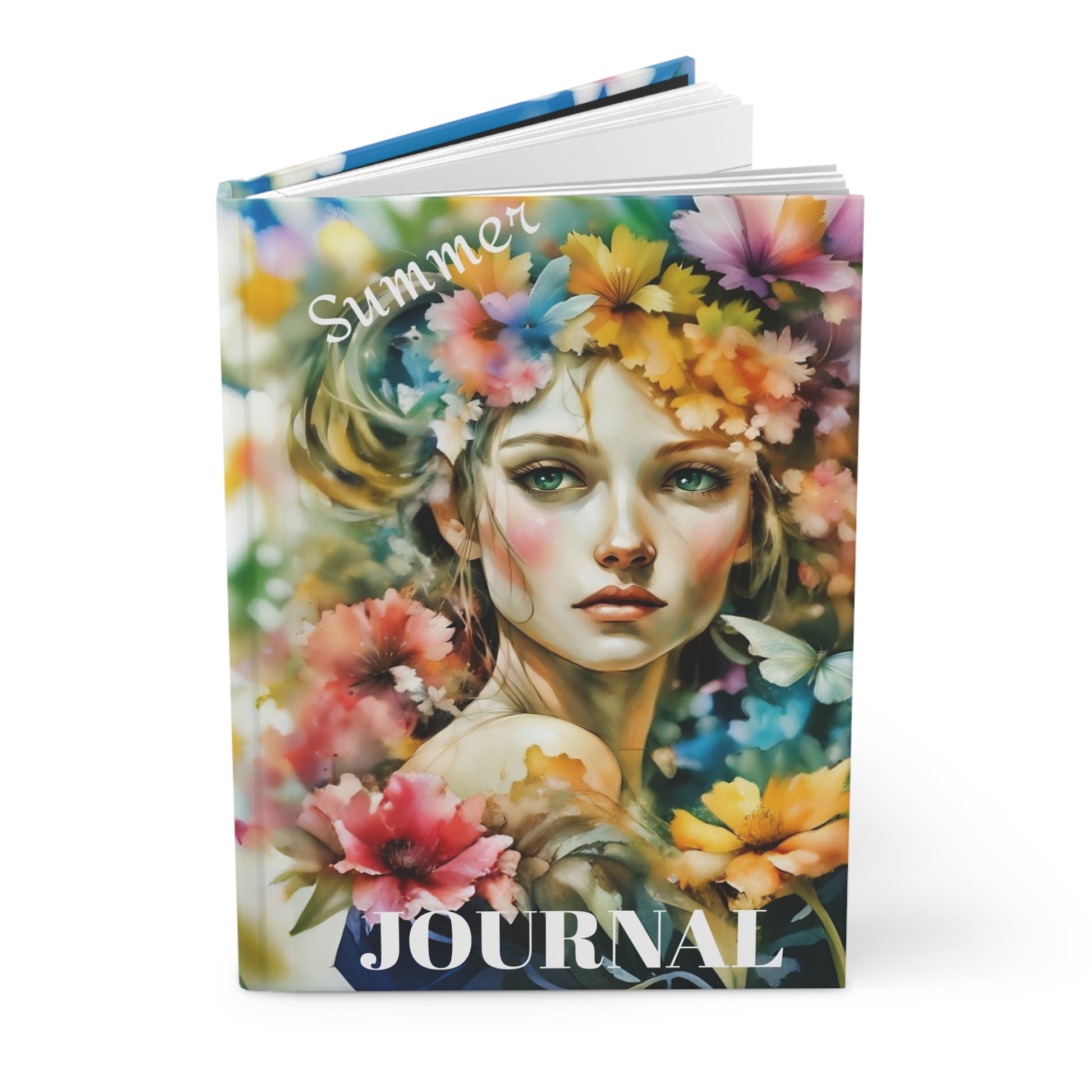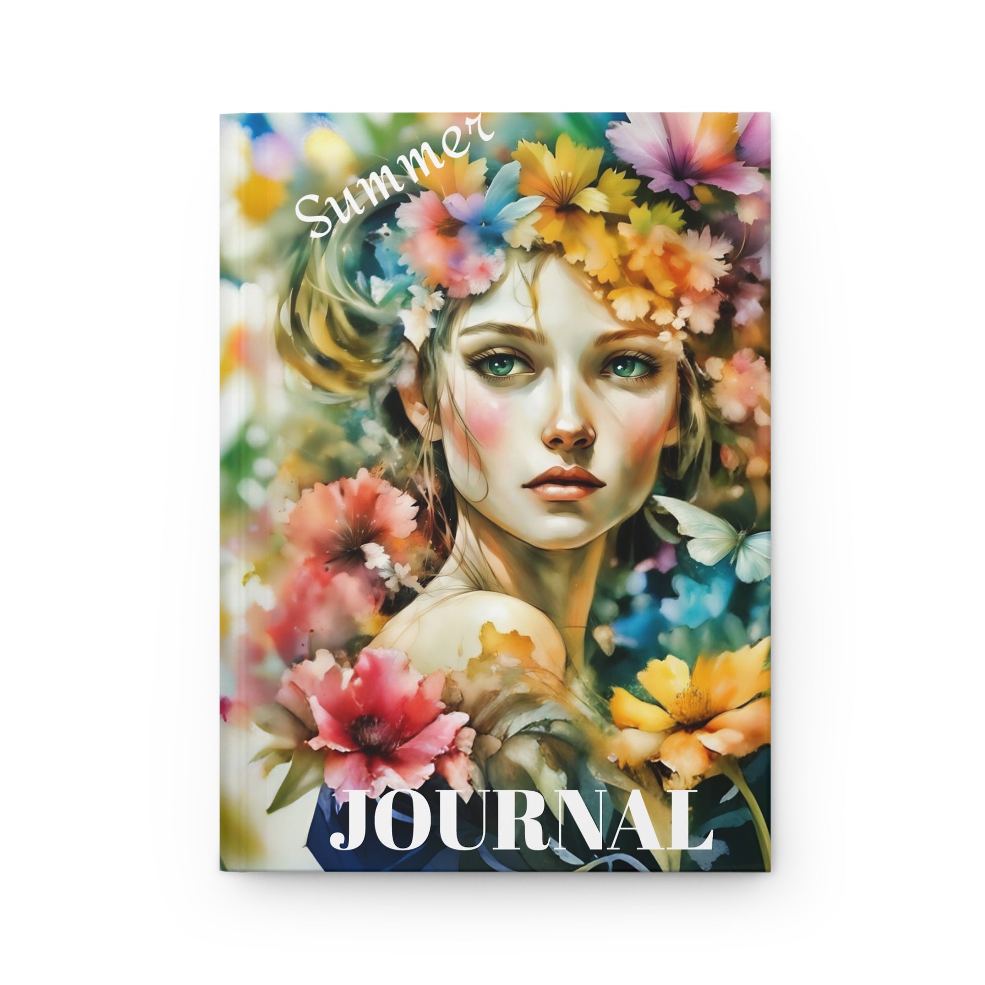 Beautiful woman in a tropical island with tropical flowers Journal featuring vibrant colors and a matte finish. Perfect for summer vibes and tropical lovers. Ideal for journaling, sketching, or taking notes on vacation. Relevant for summer holidays, beach trips, and travel enthusiasts.