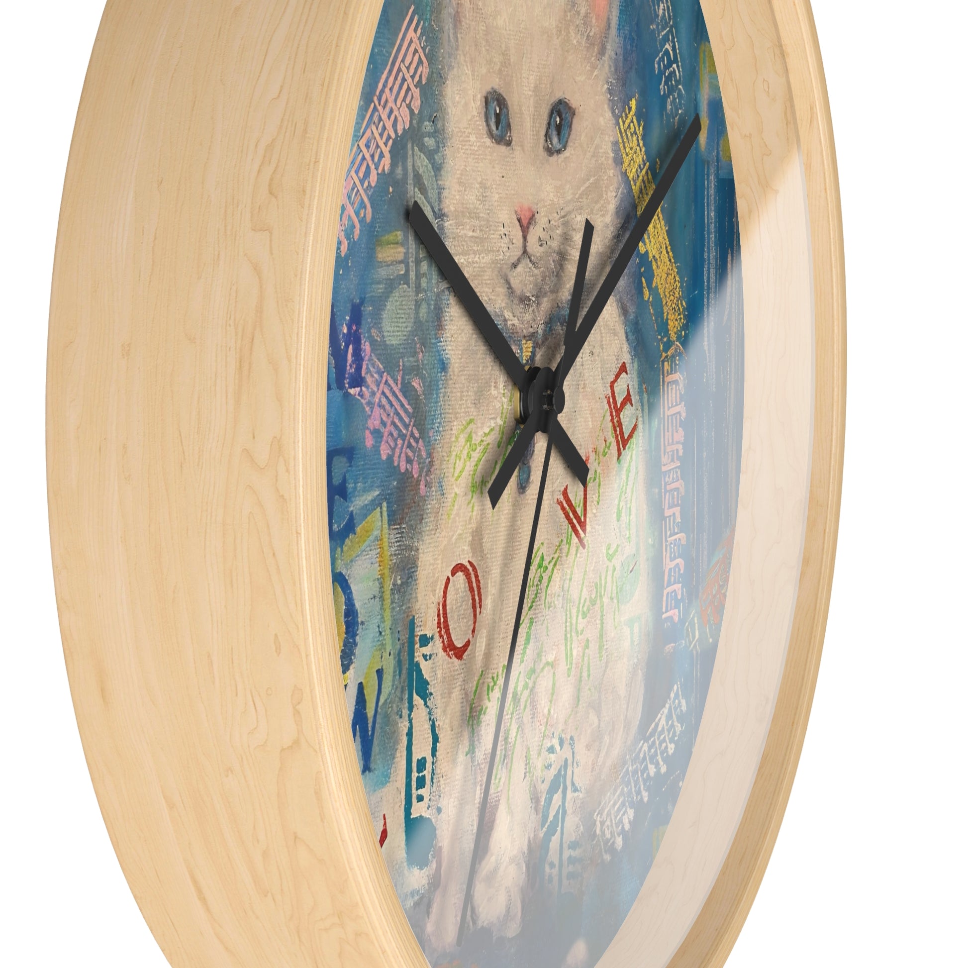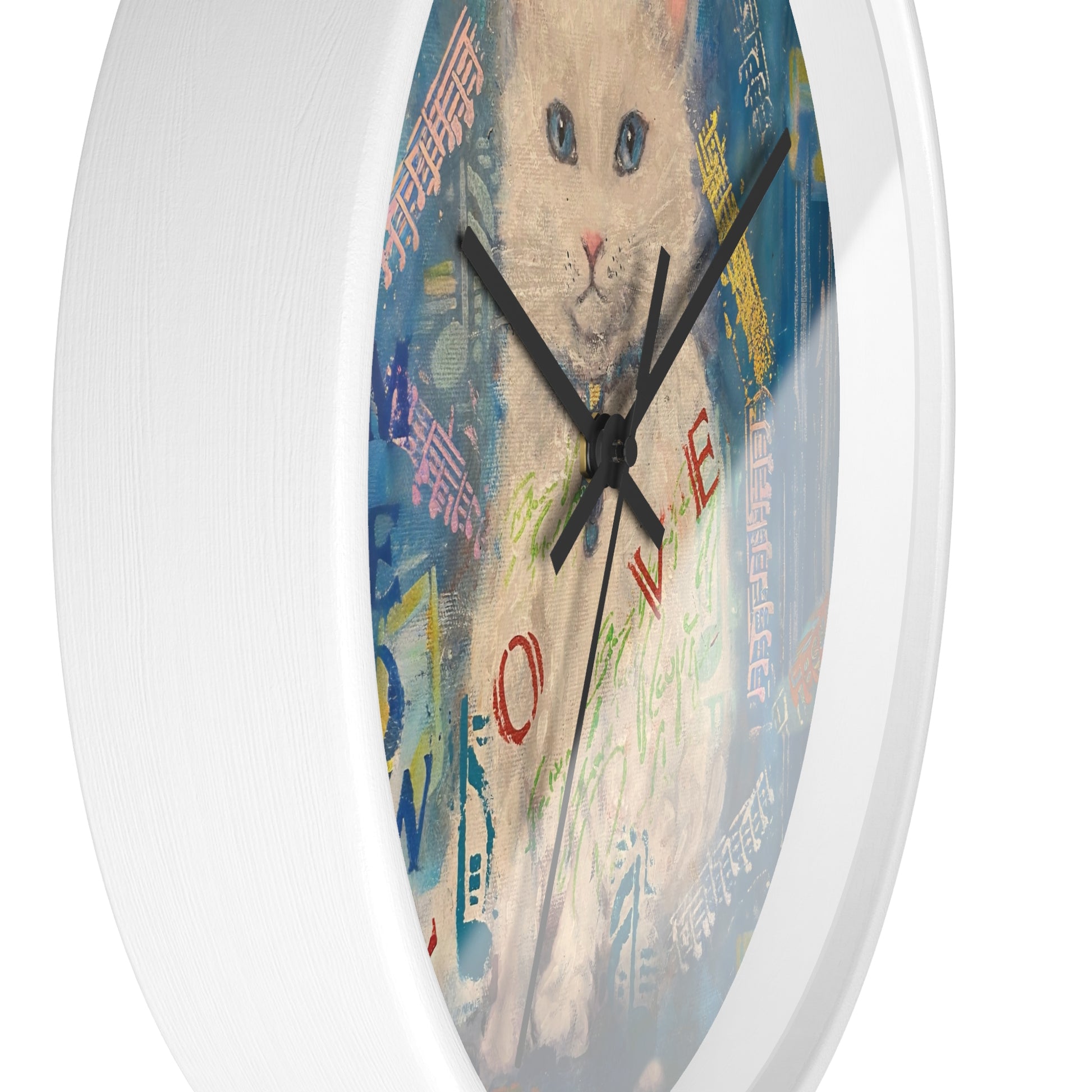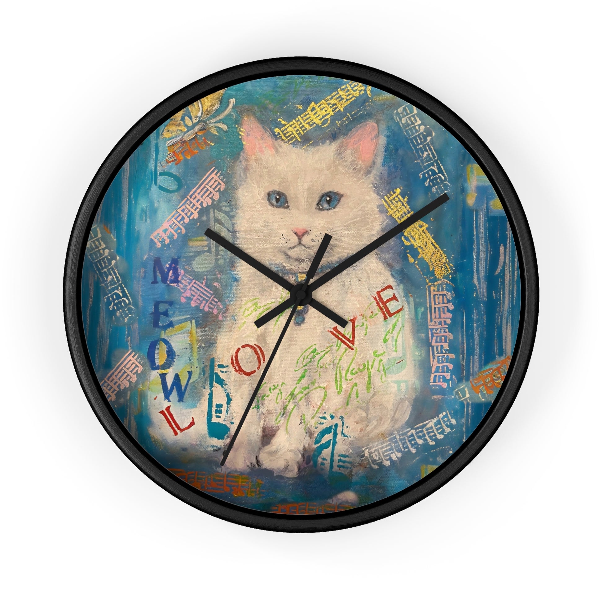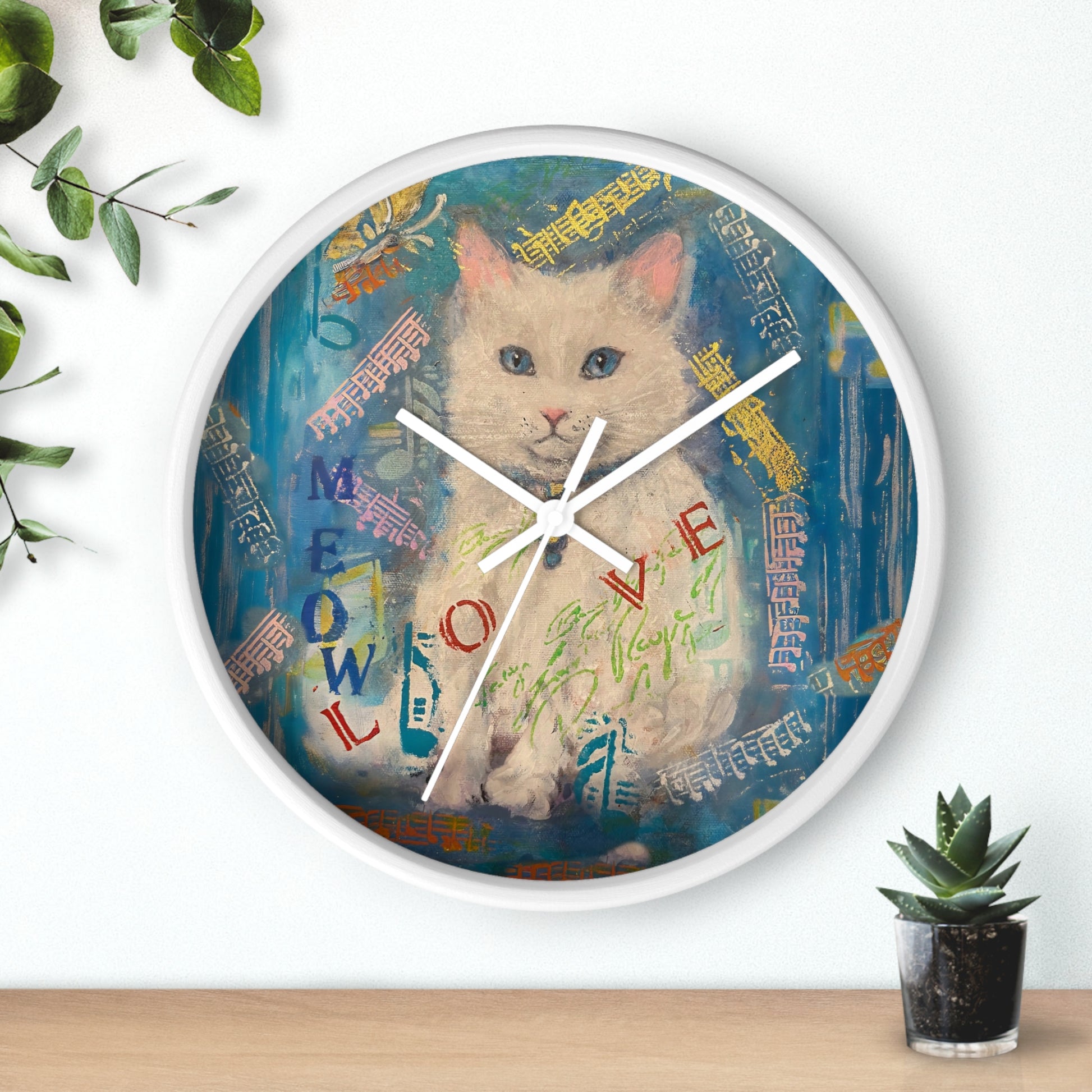 Cat Wall Clock - Lovely White Cat with Blue Eyes Art by Fairyhill Studio