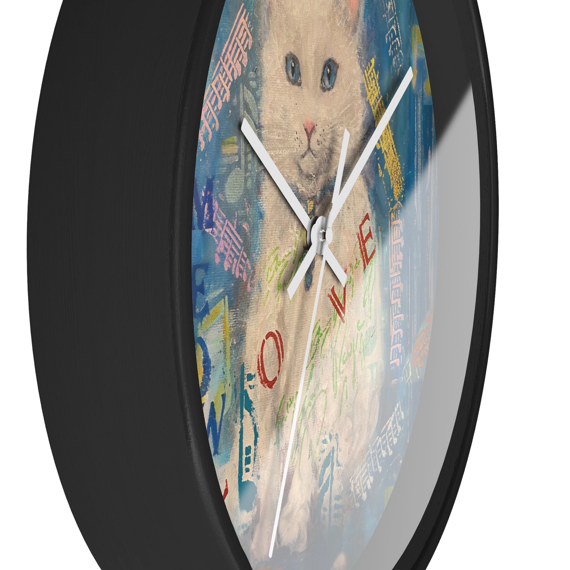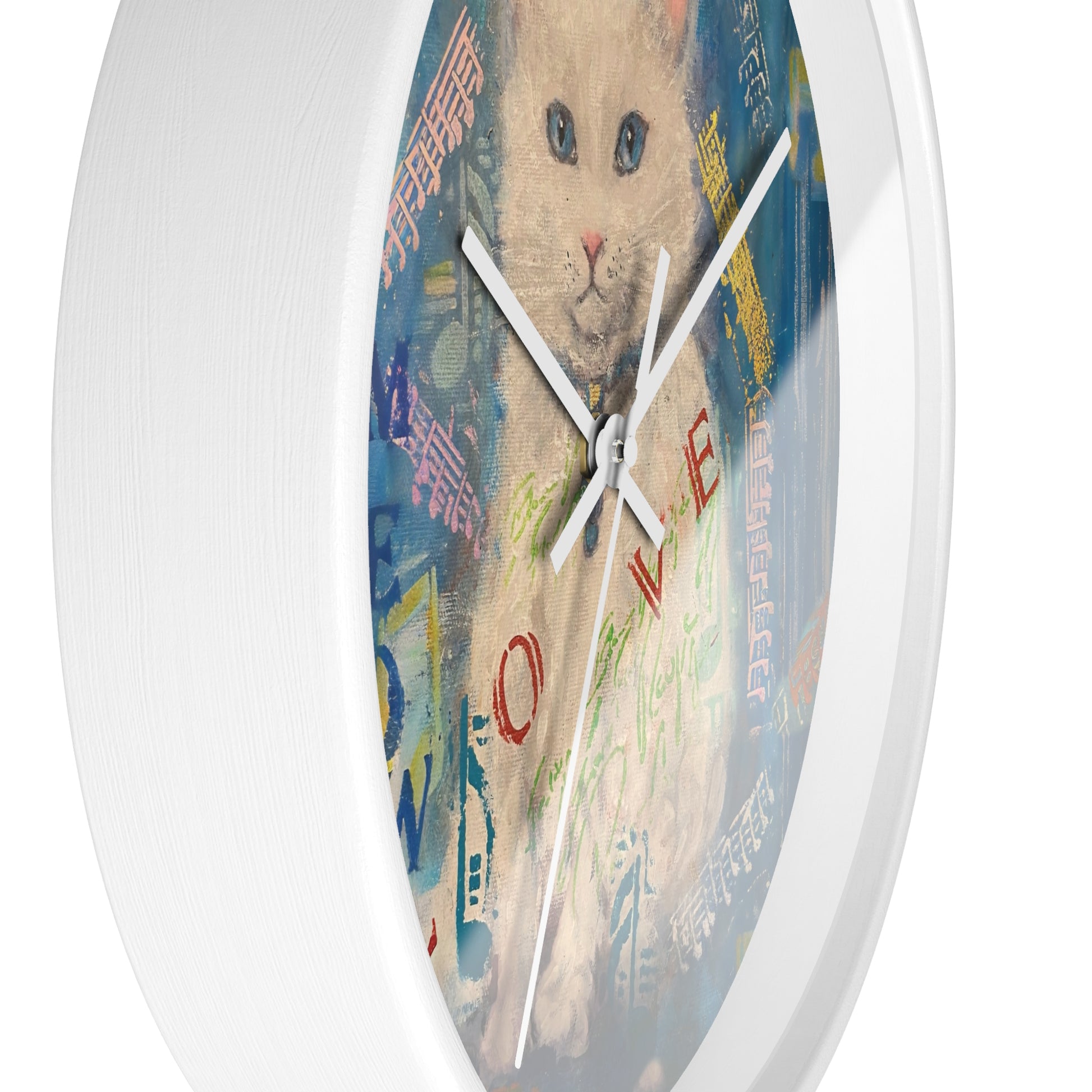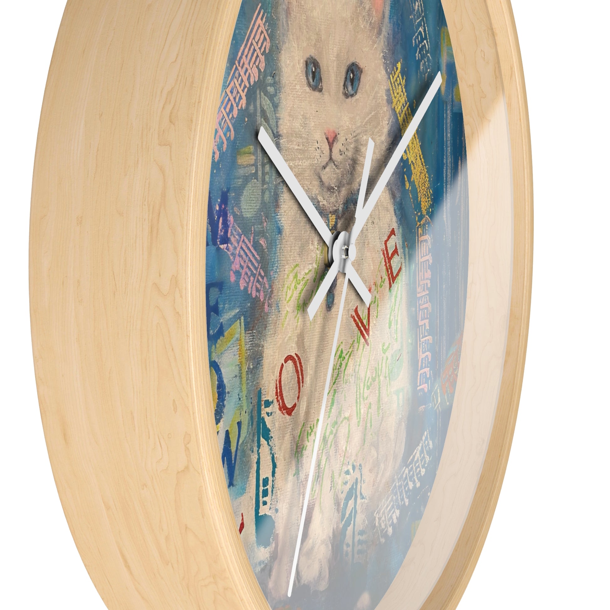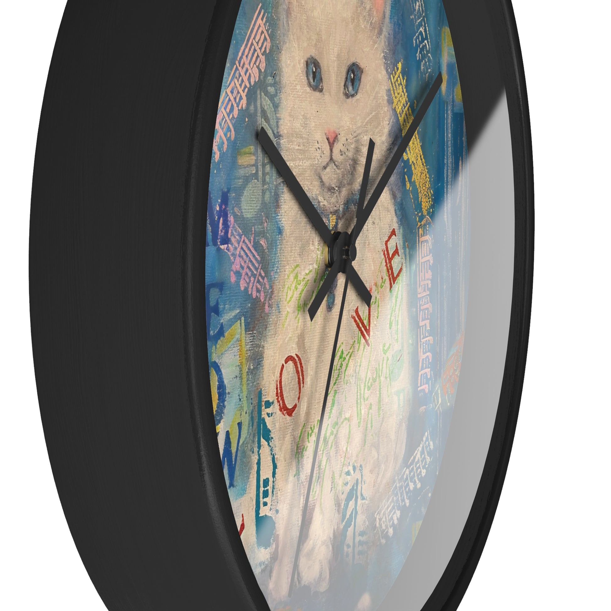 Cat Wall Clock - Lovely White Cat with Blue Eyes Art by Fairyhill Studio