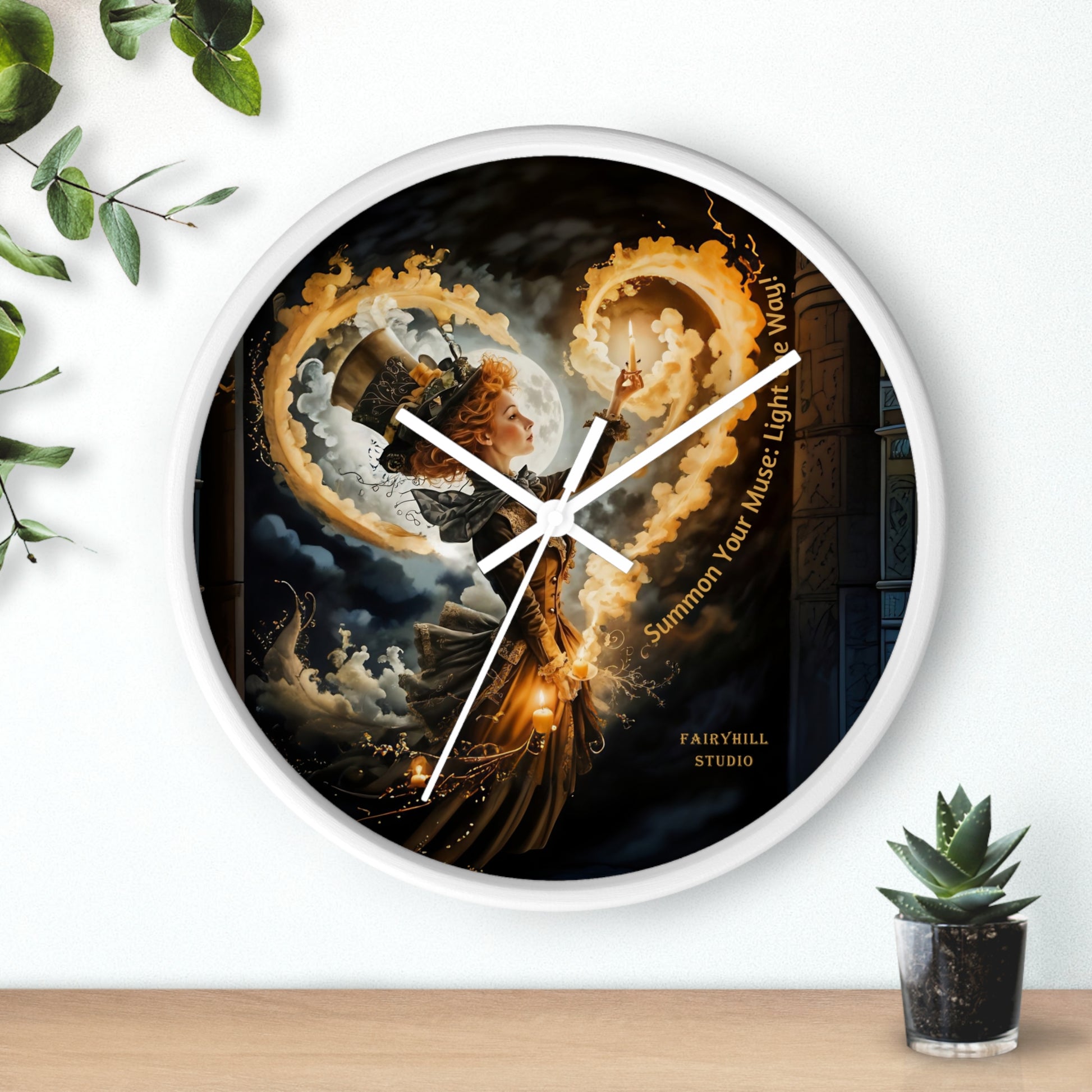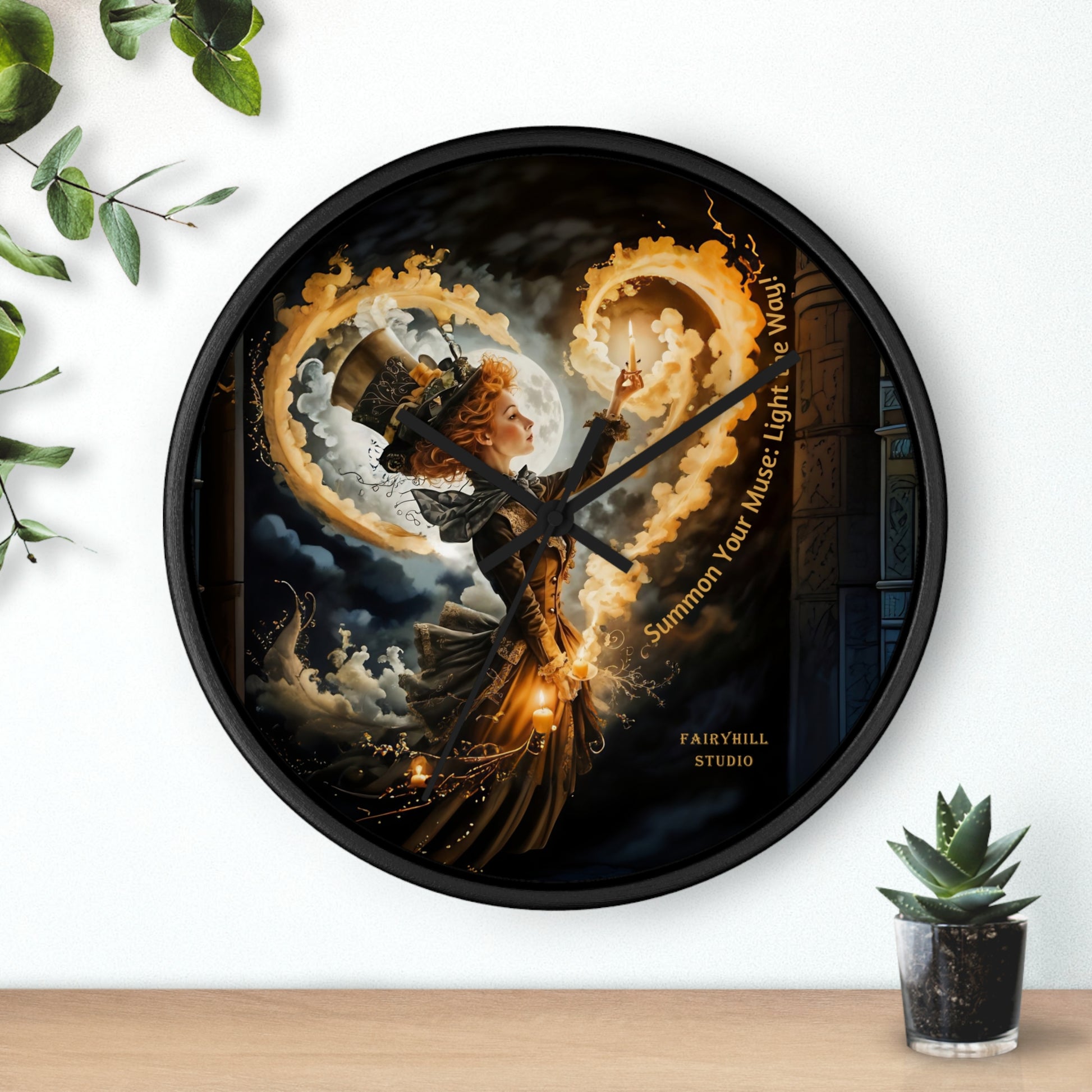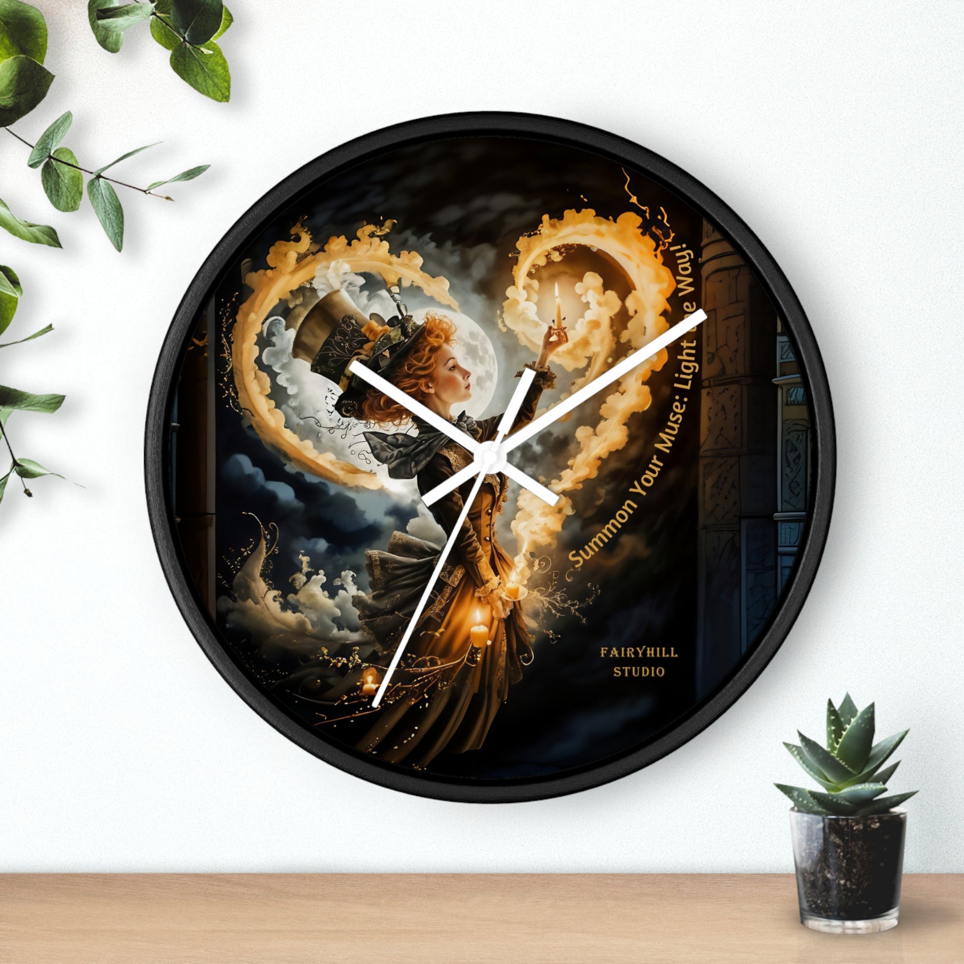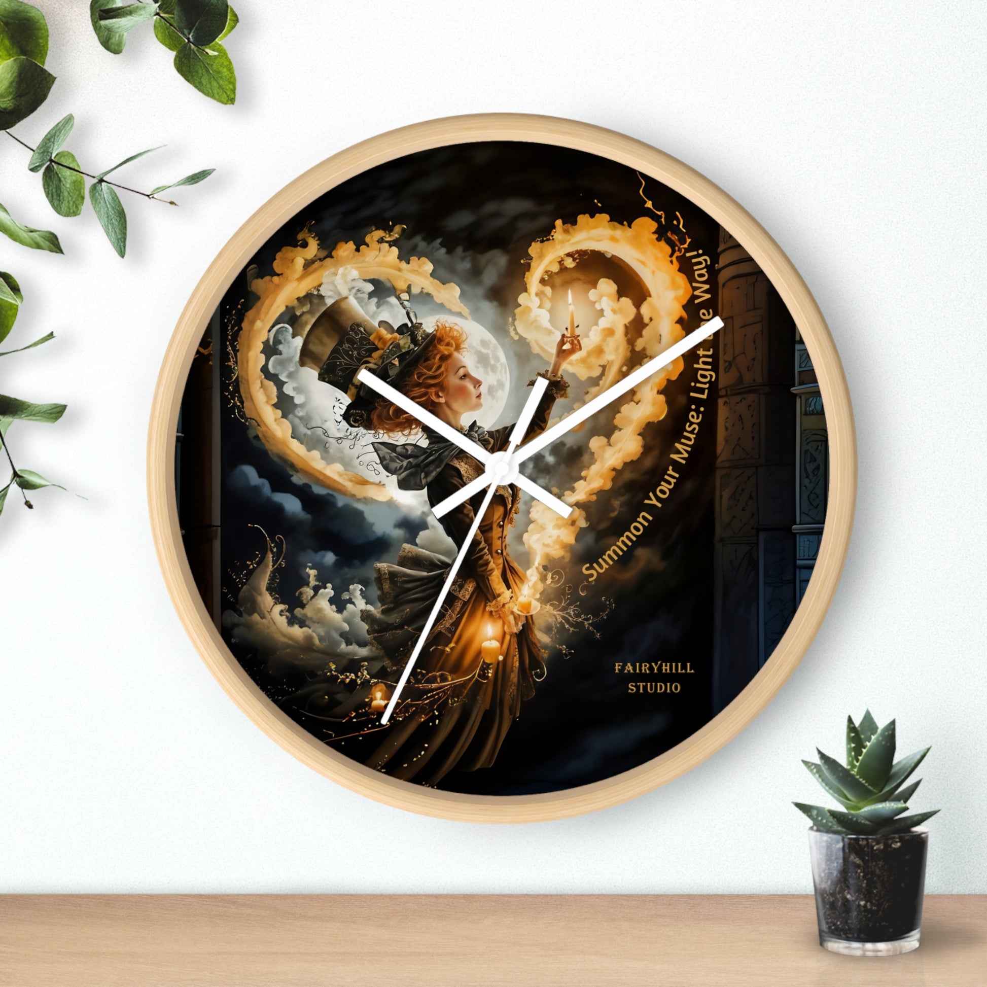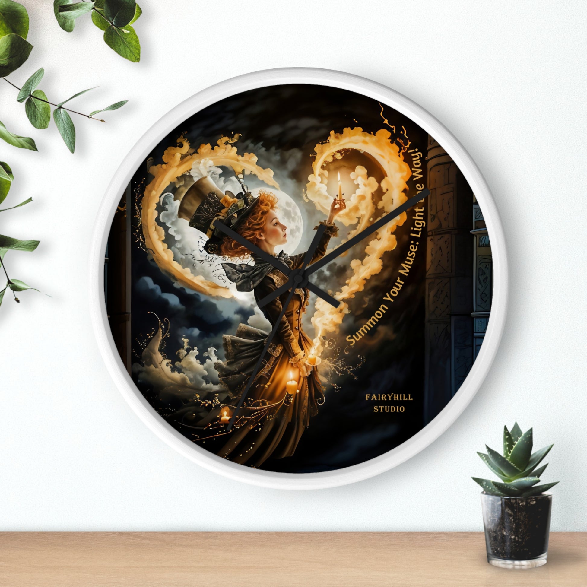 Acrylic Wall Clock - Mad Hatter Fairy Muse with Candle Art by Fairyhill Studio
