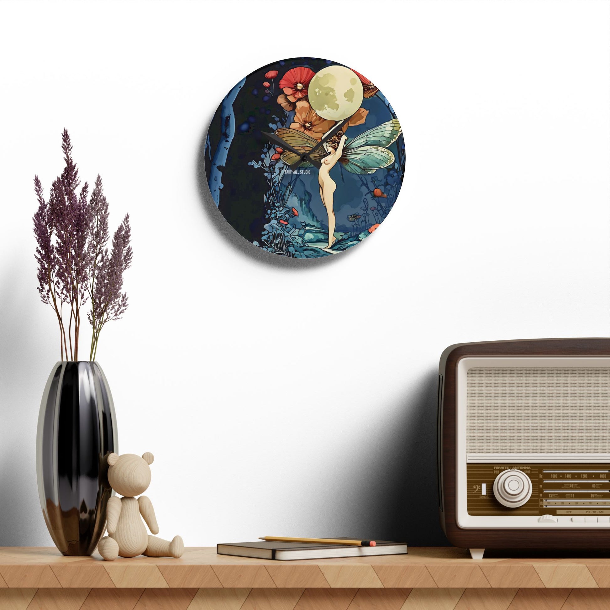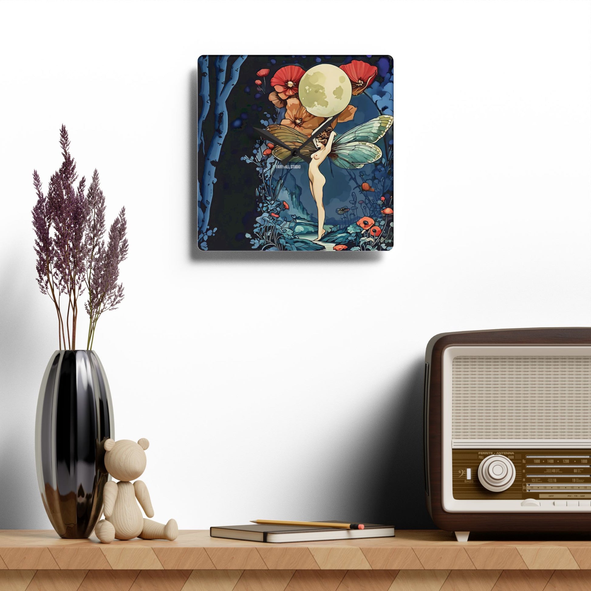 Wall Clock - Moon Fairy Holding Moon amongst Red Poppy Flowers Scene