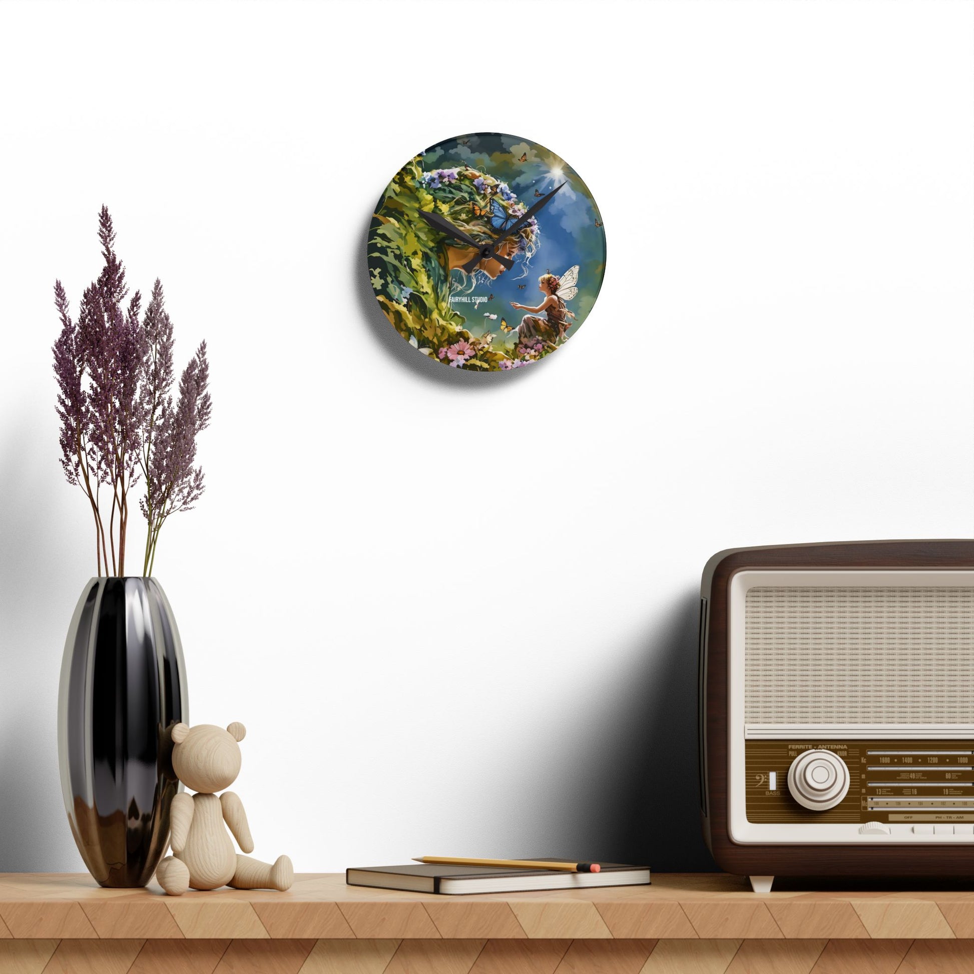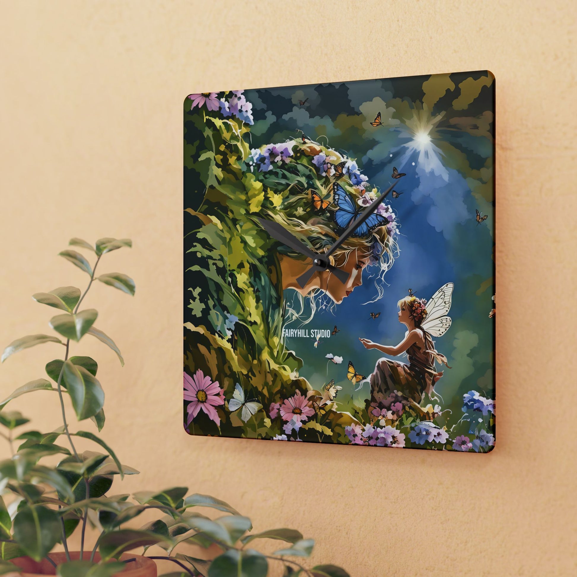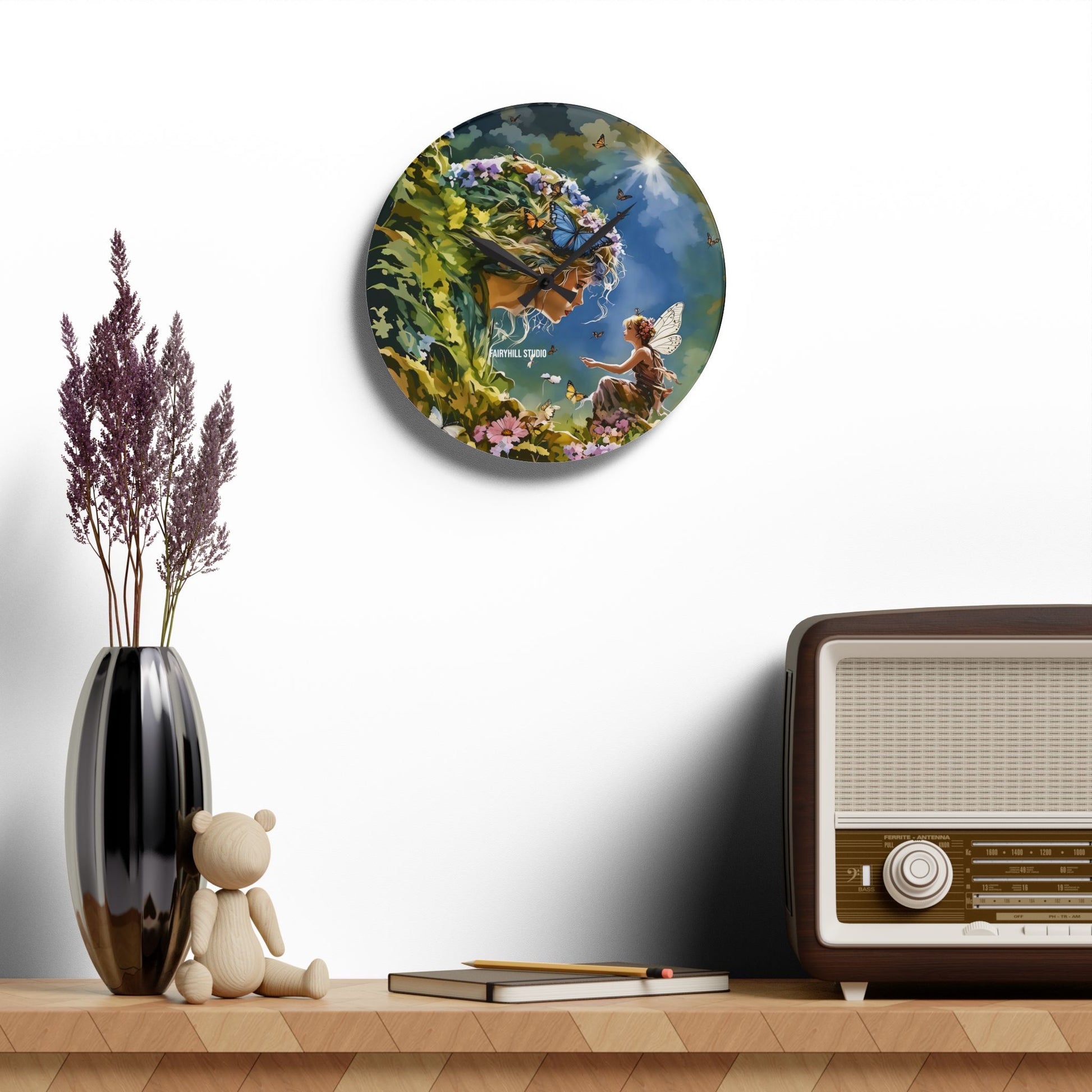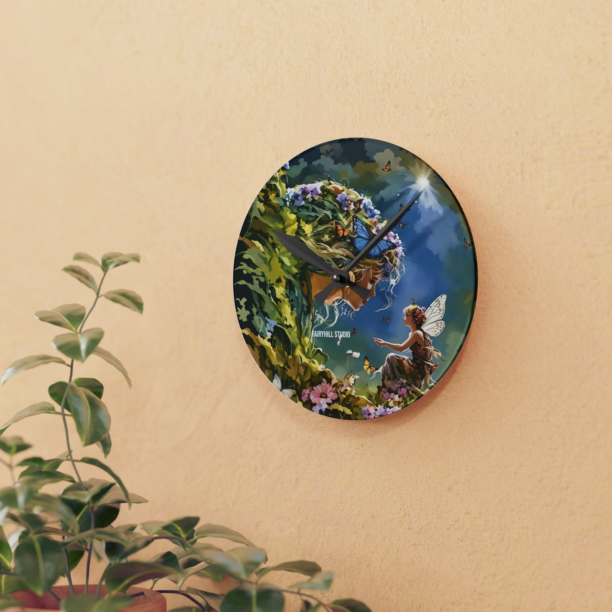 Wall Clock - Nature Fairy Offering Gifts to the Goddess of Nature - Meaningful Art