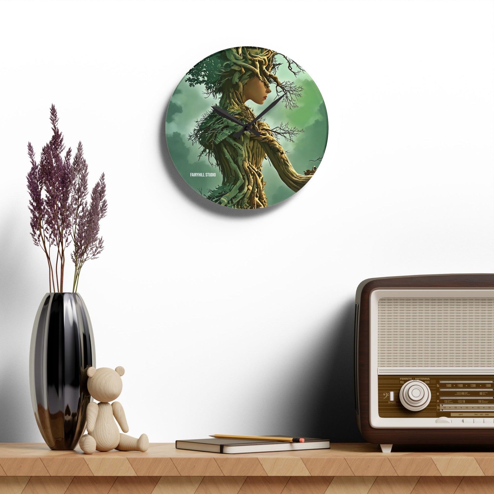 Wall Clock - Tree Dryad Art Featuring a Woman Tree Spirit